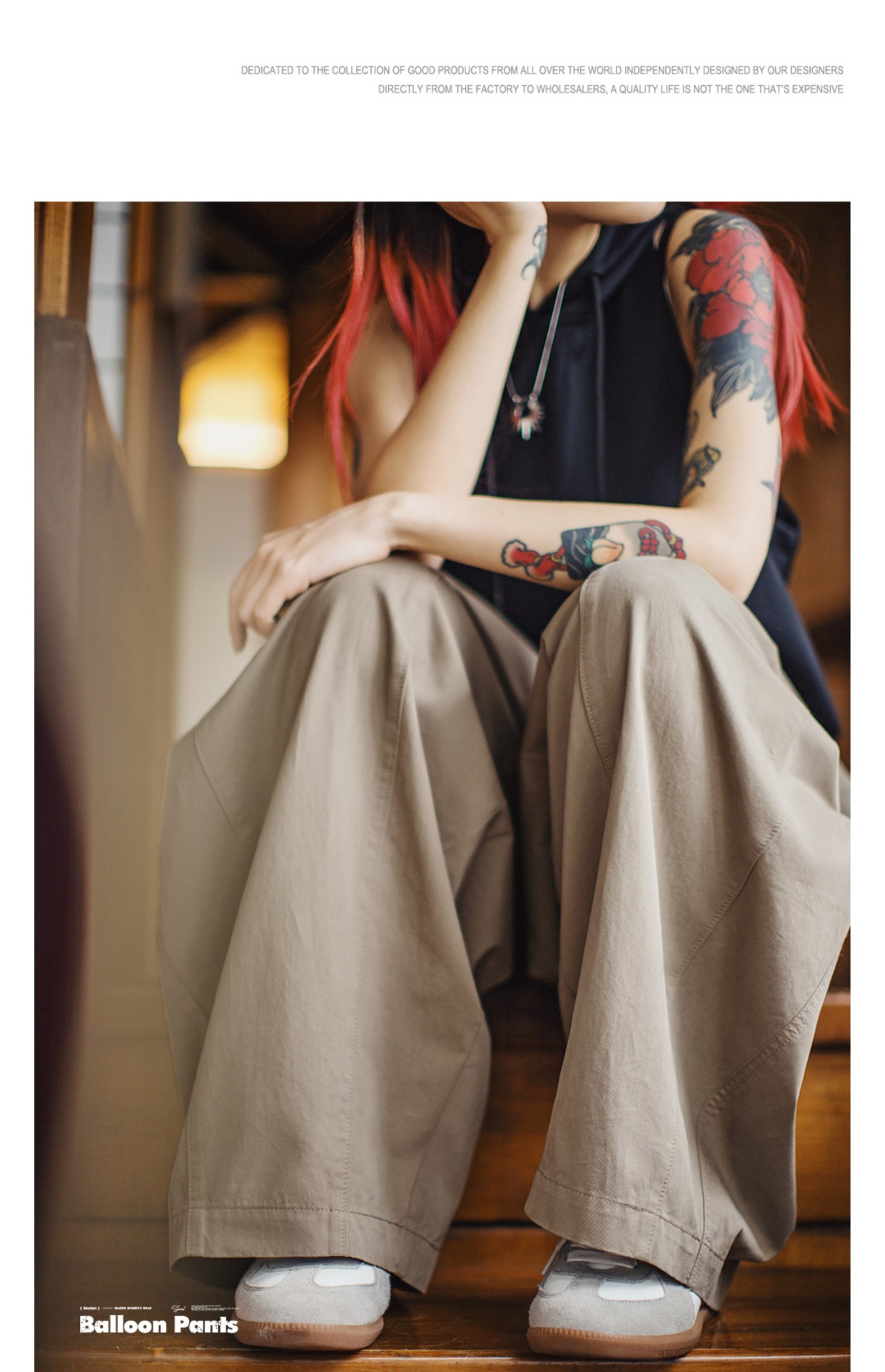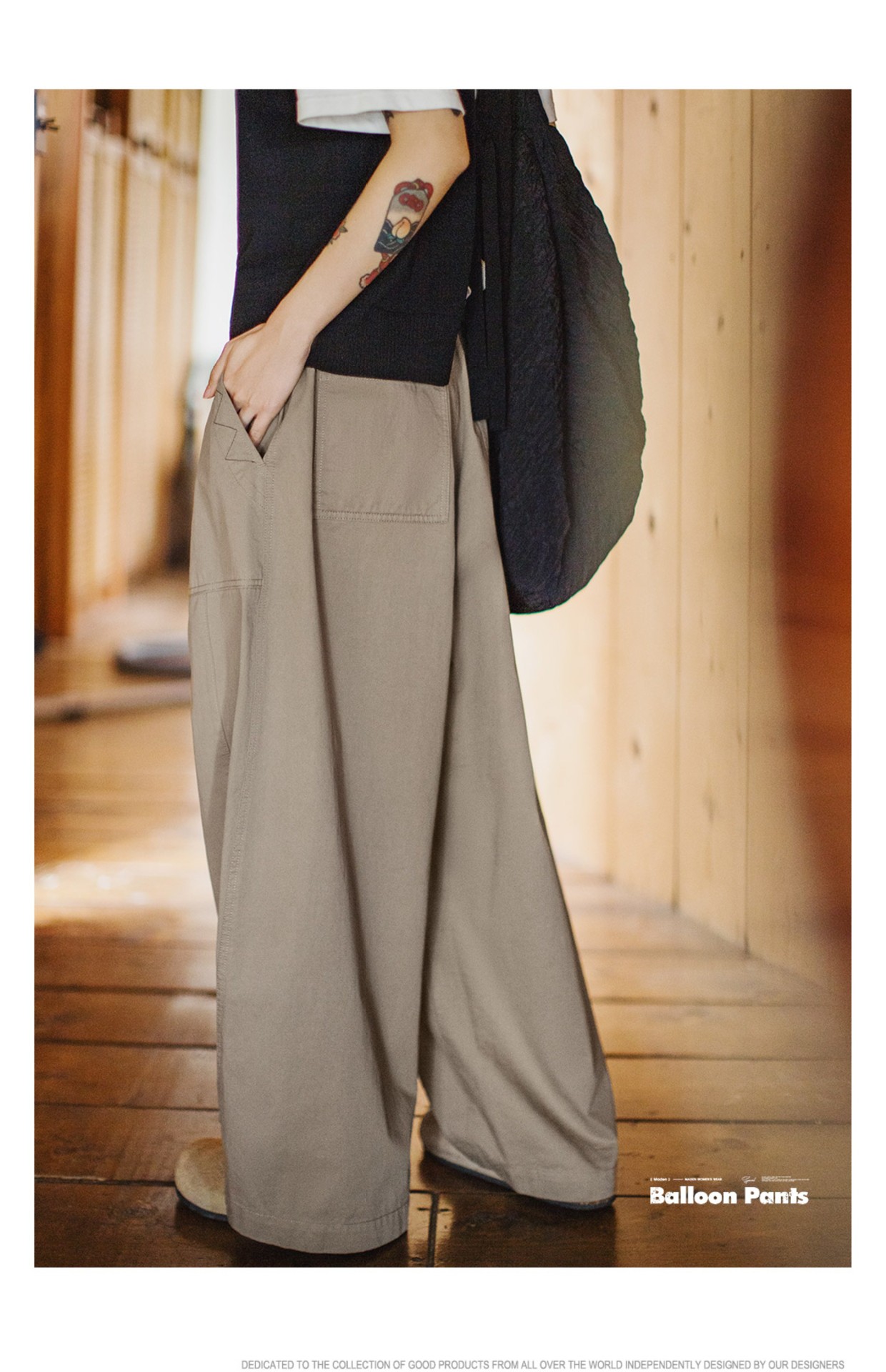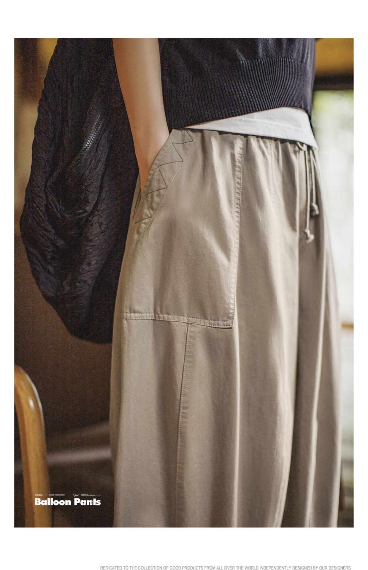 Summer-inspired relaxed khaki vintage style wide-leg balloon pants, retro cargo style, pear-shaped slimming Yamamoto pants for women