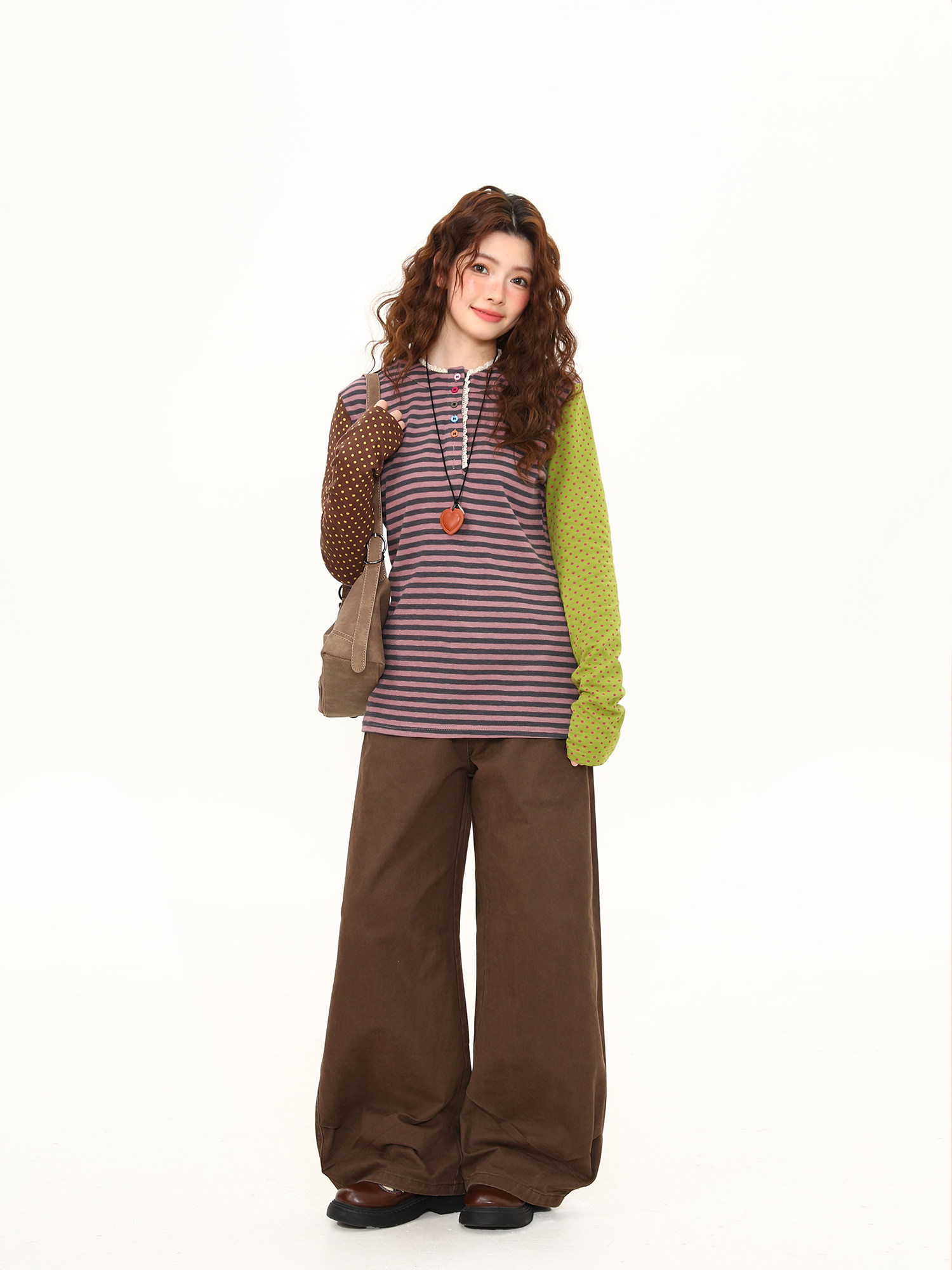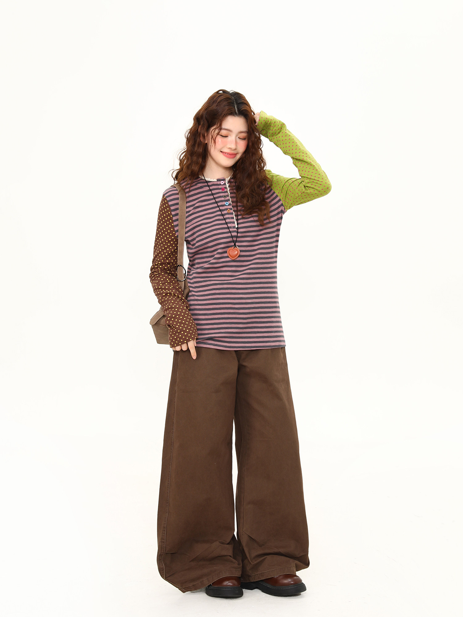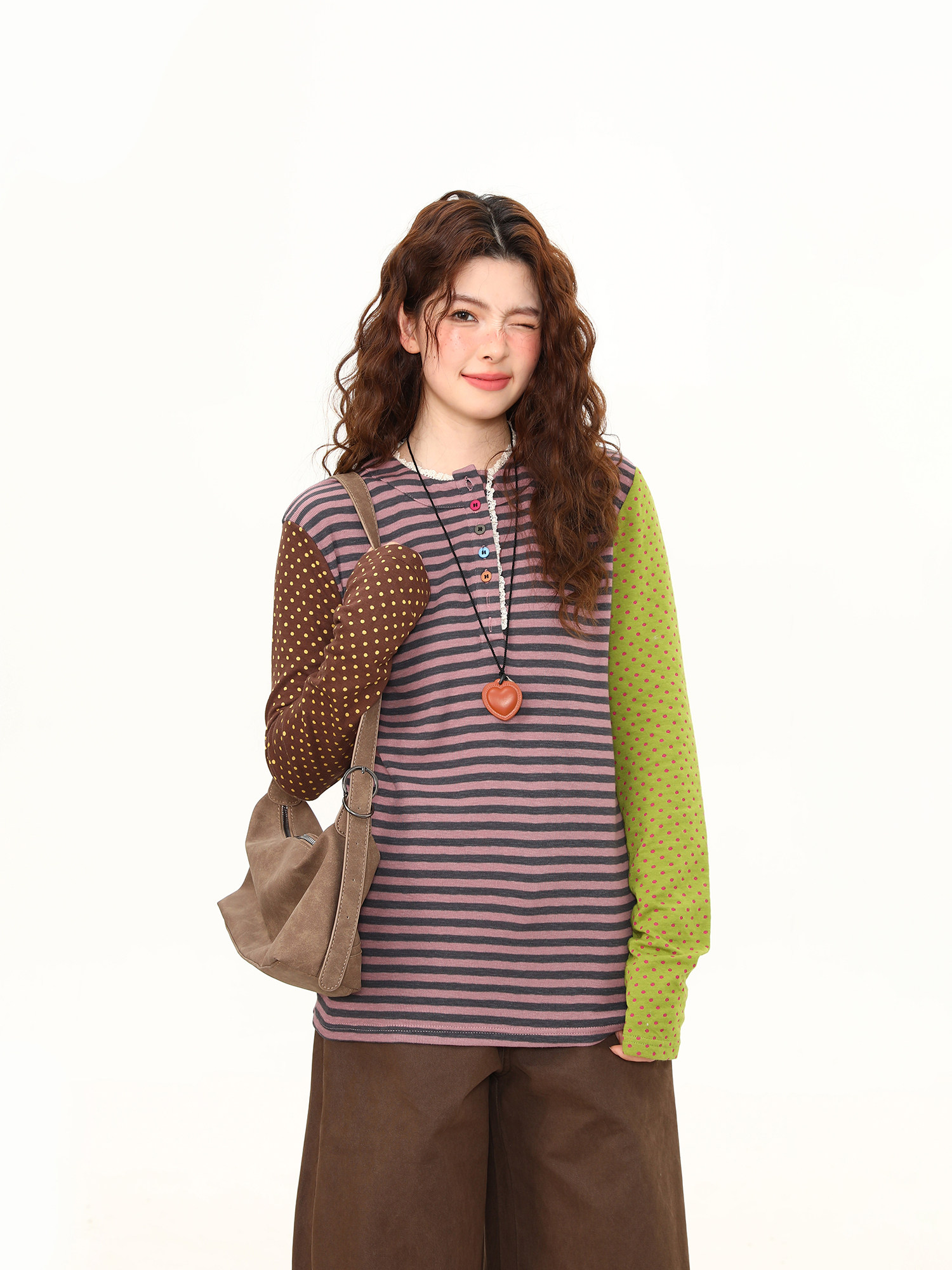 Spring New Arrival Polka Dot Lace Trim Long-Sleeve T-Shirt for Women, Short Loose Fit, Versatile