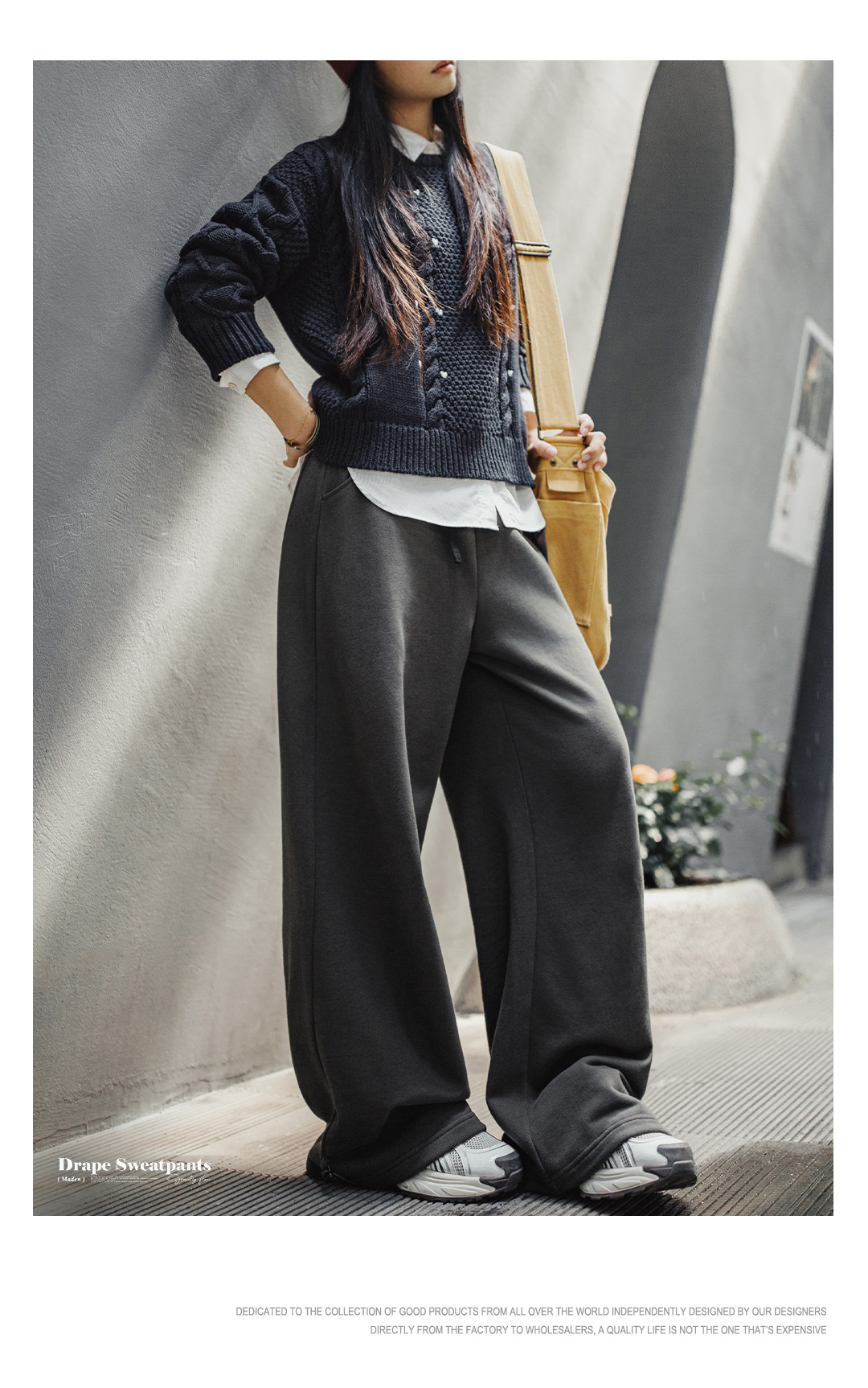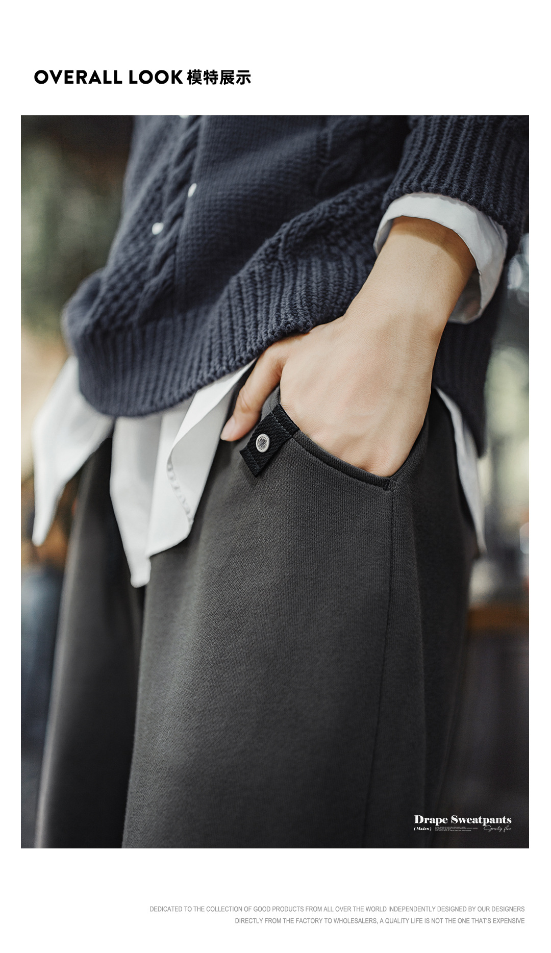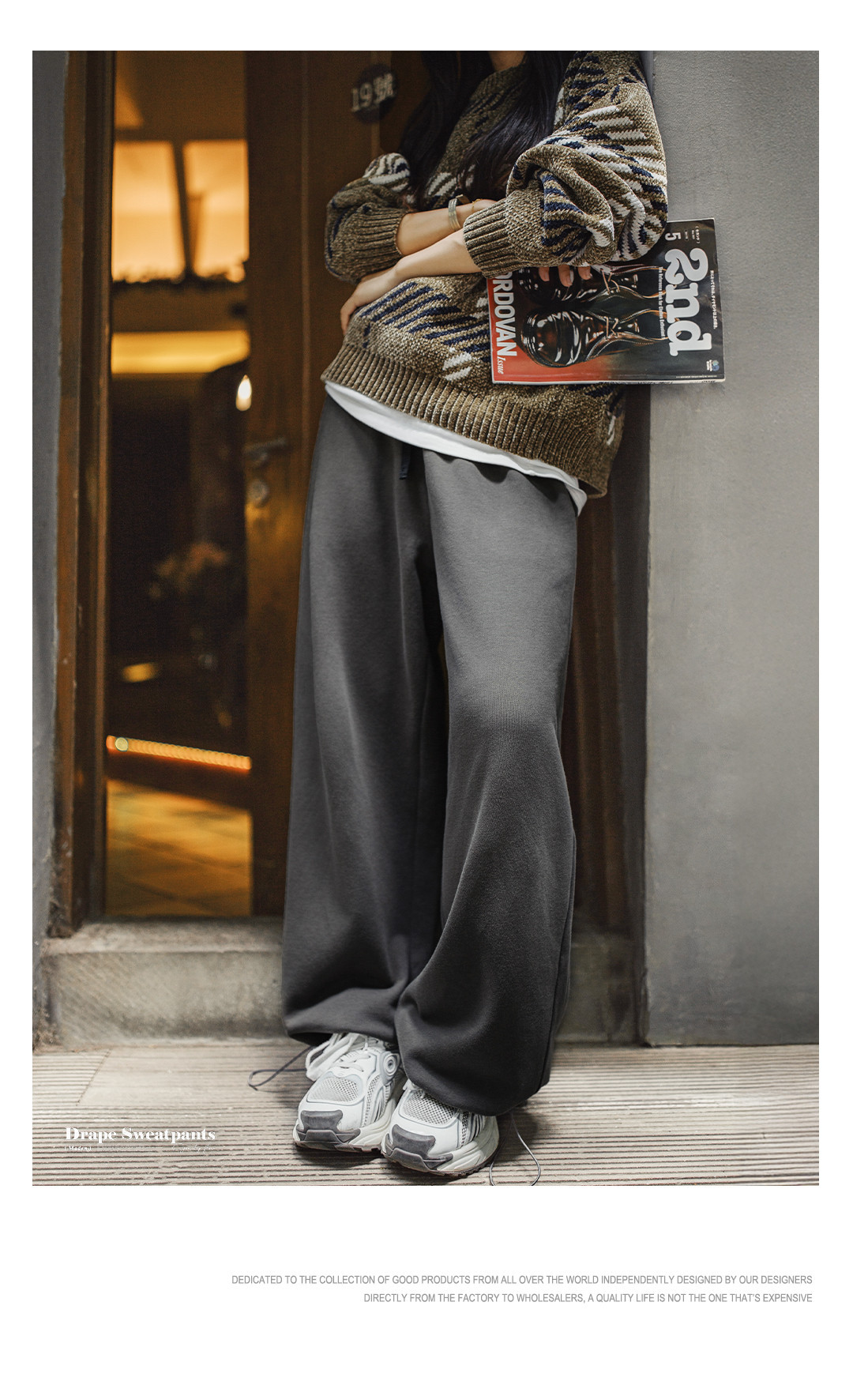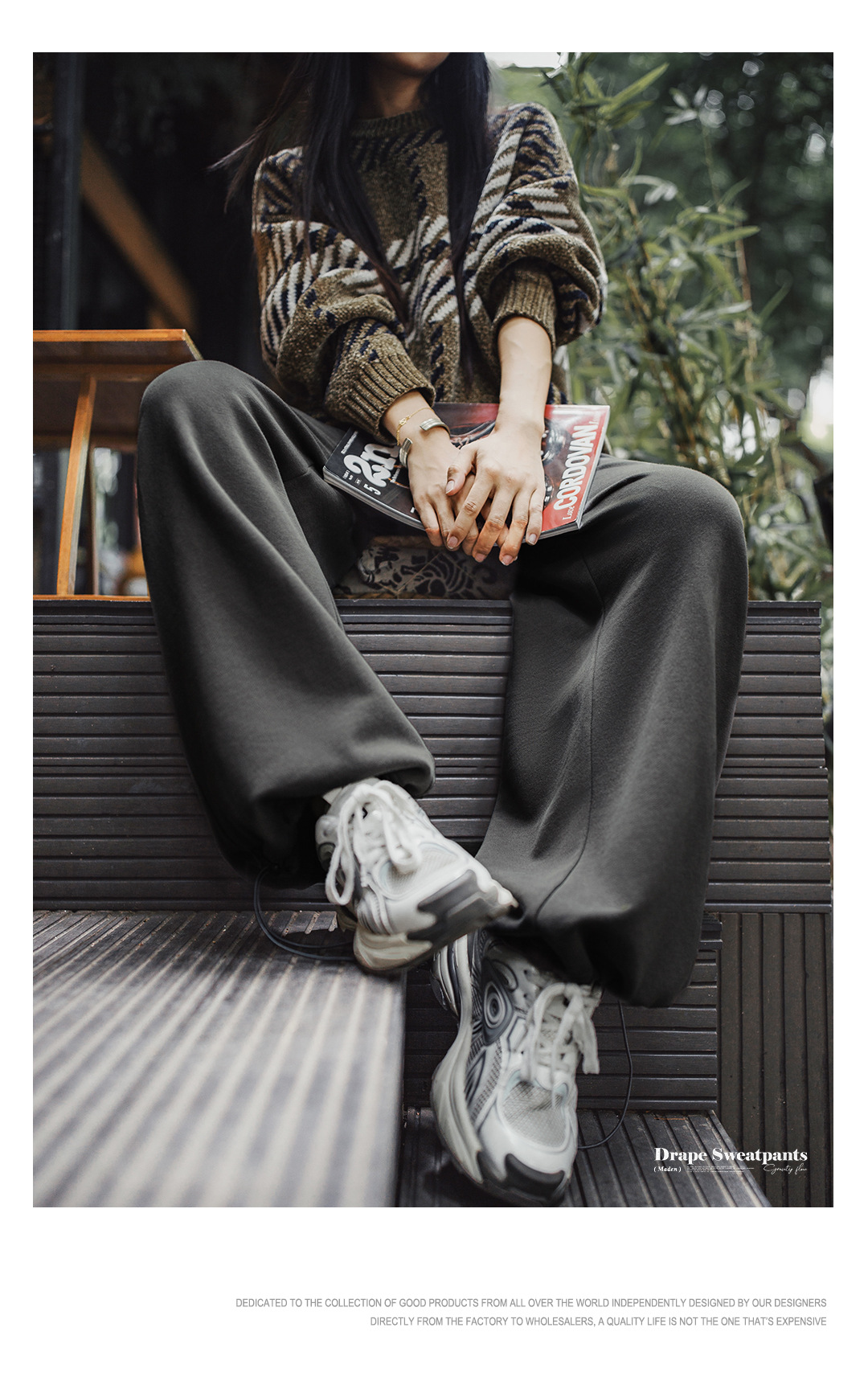 灰色長褲垂感寬鬆純棉鬆緊腰抽繩休閒直筒闊腿衛褲子女士秋冬