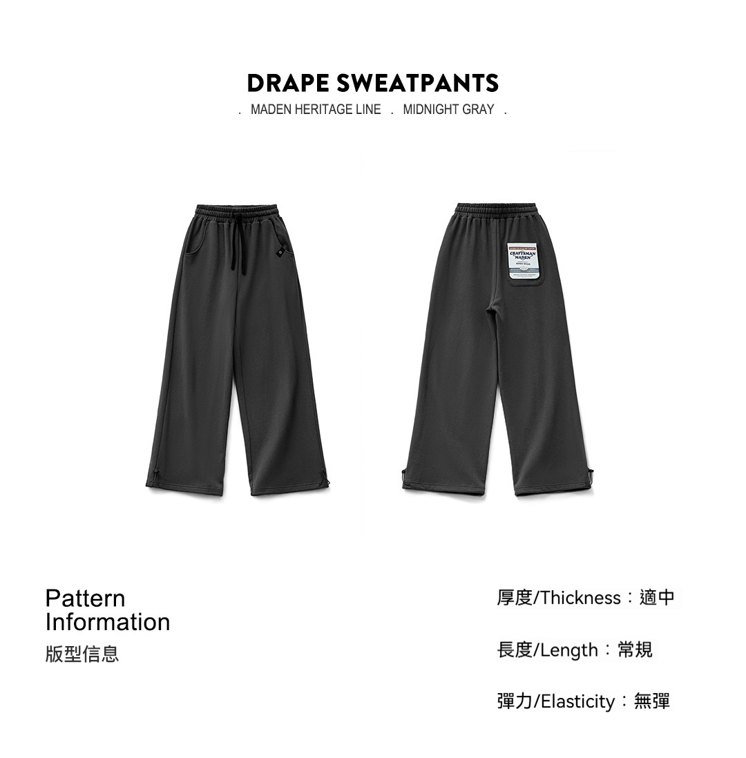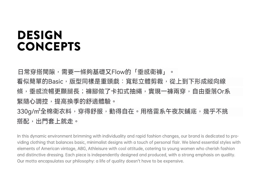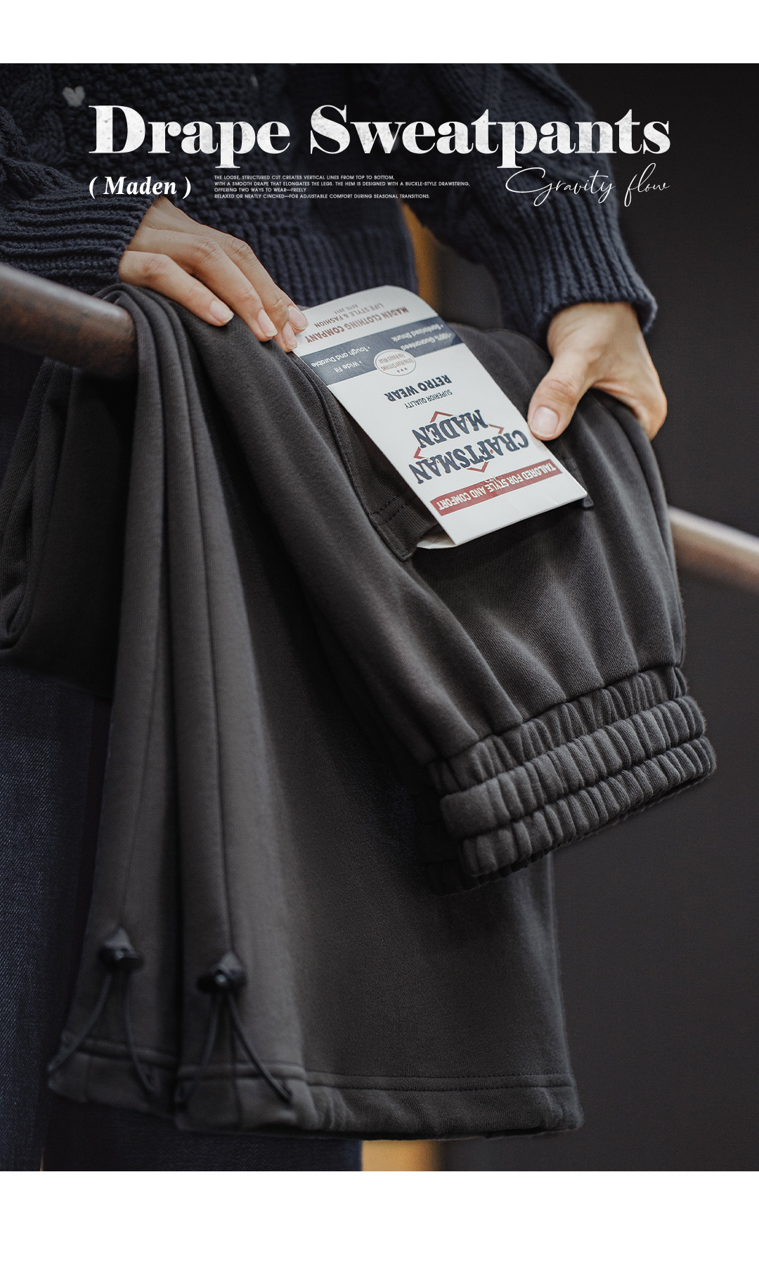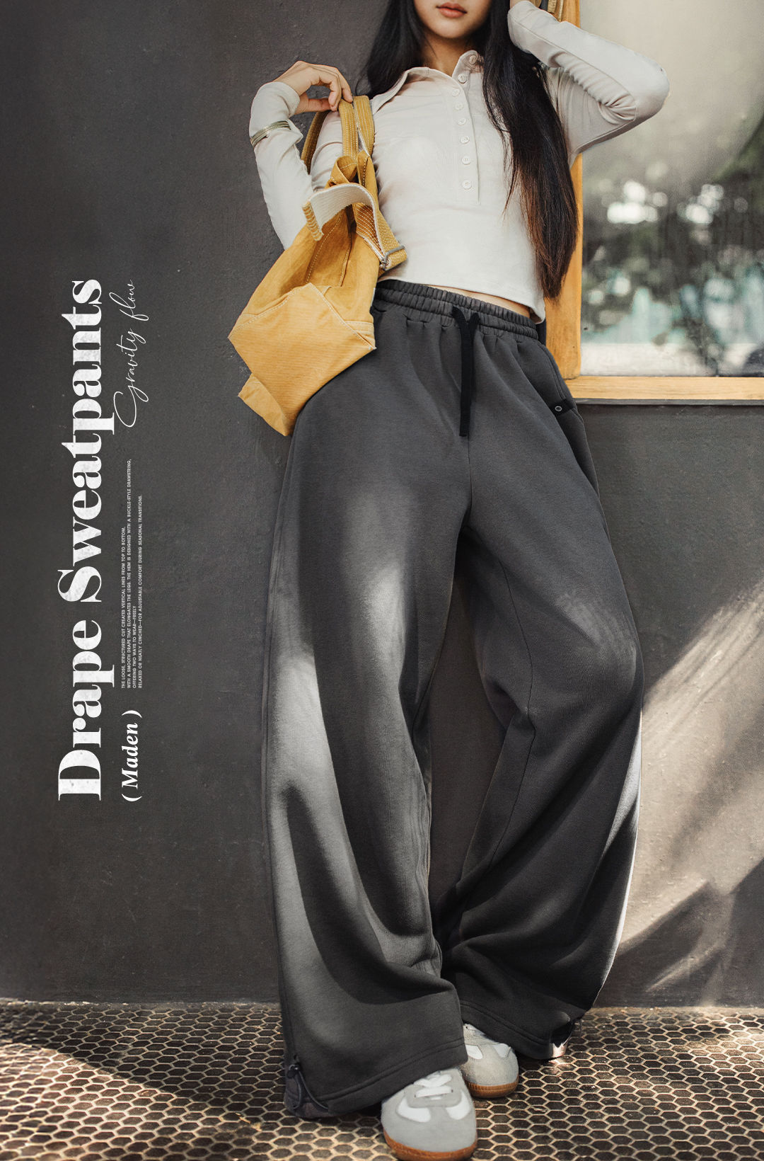 灰色長褲垂感寬鬆純棉鬆緊腰抽繩休閒直筒闊腿衛褲子女士秋冬