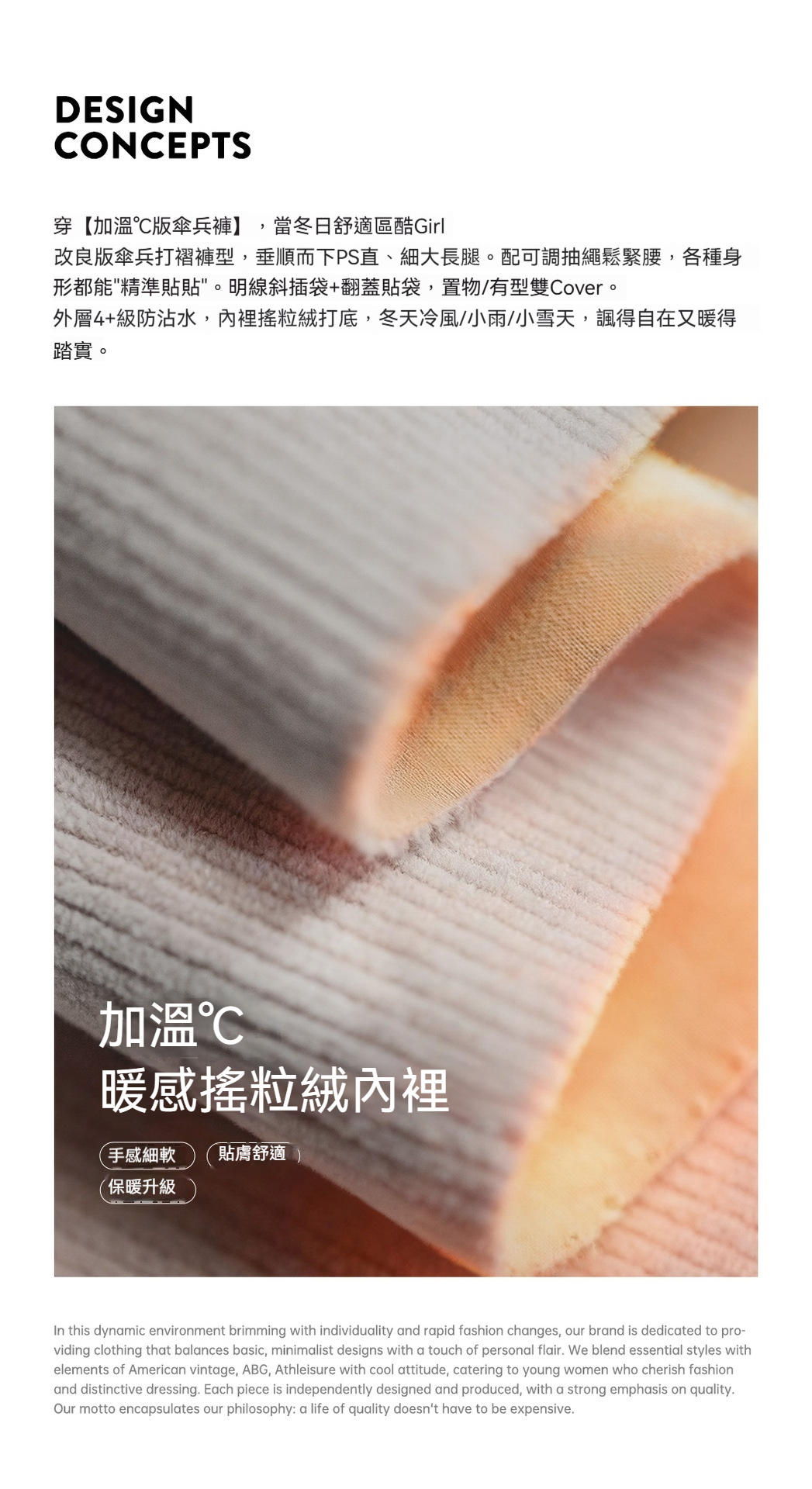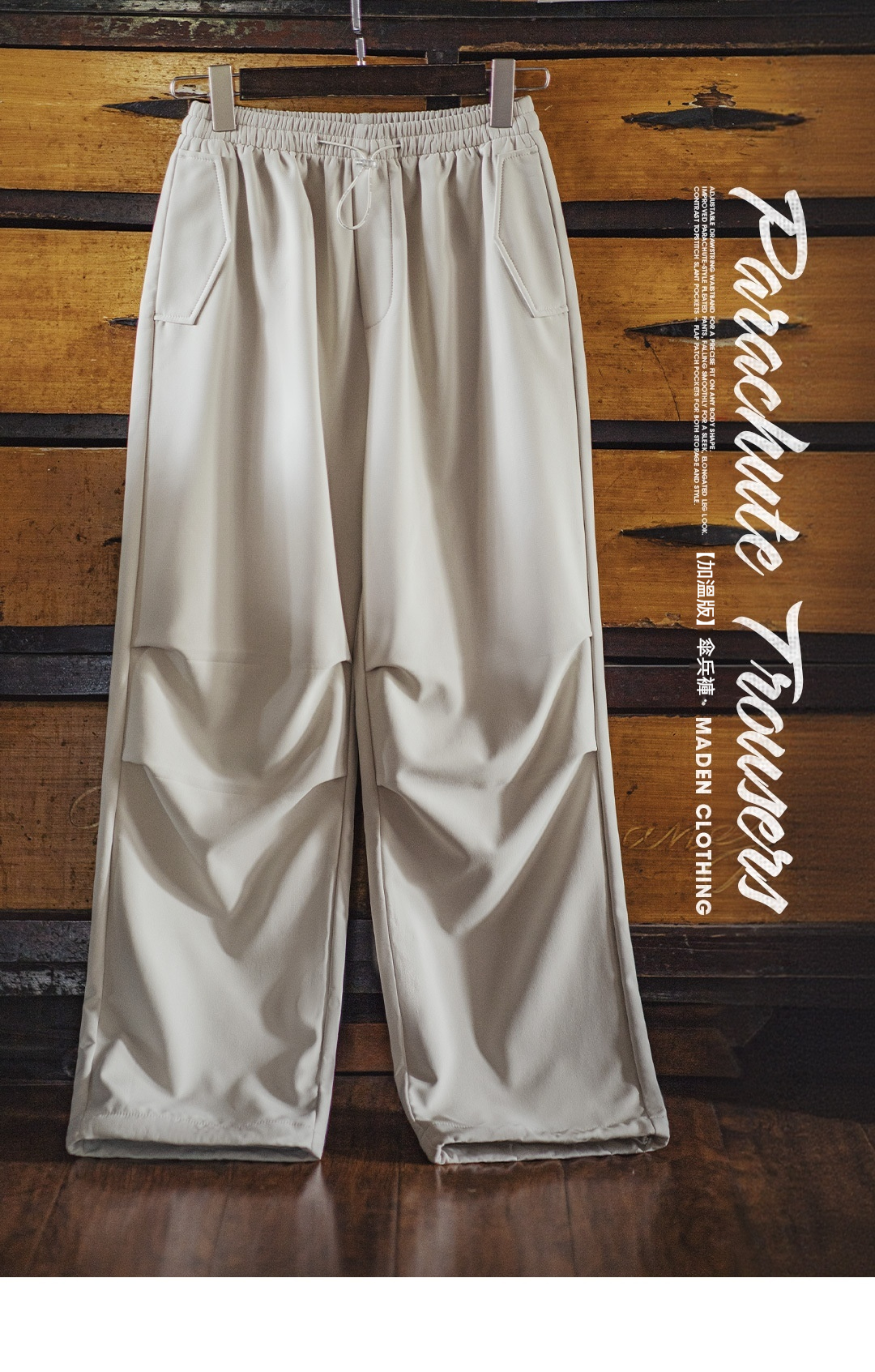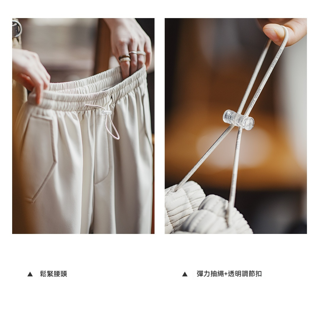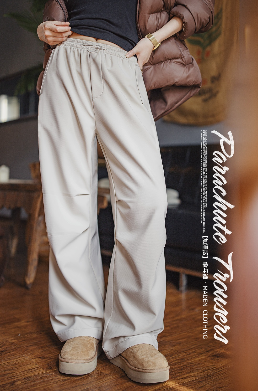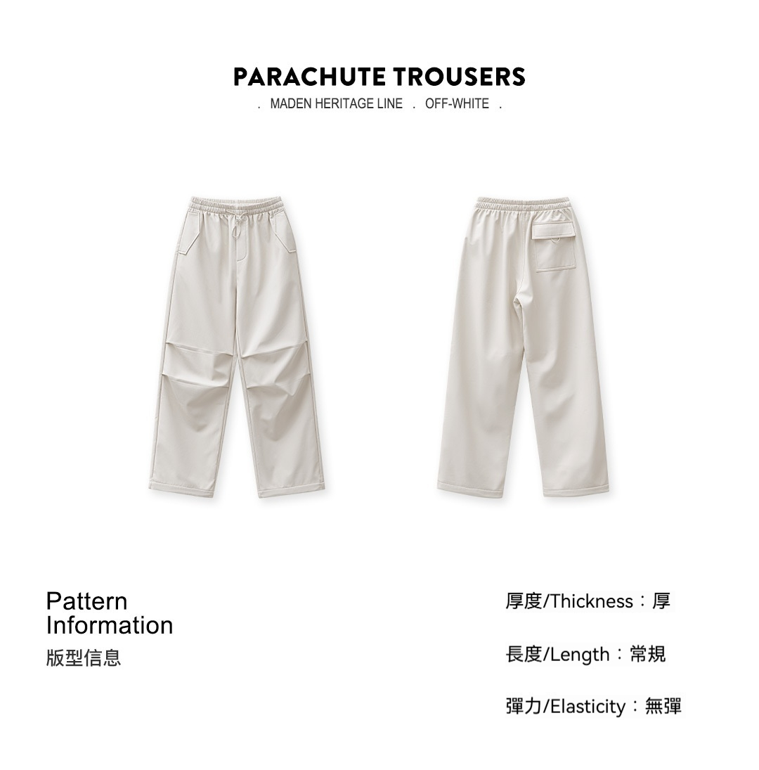 米白色加絨厚實保暖休閒褶皺工裝傘兵直筒闊腿長褲子女士秋冬