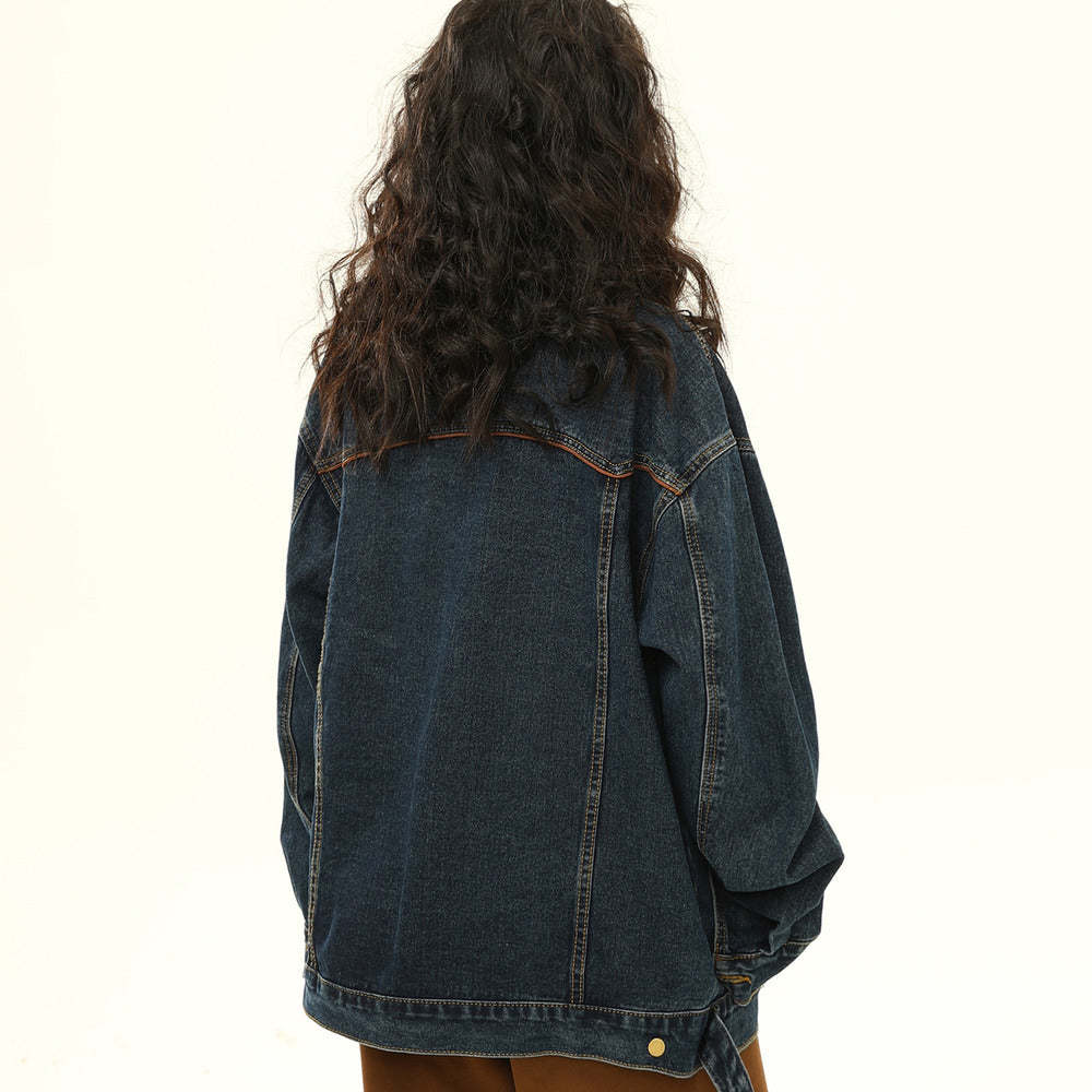 American denim jacket, biker style, trendy collared jacket, loose top