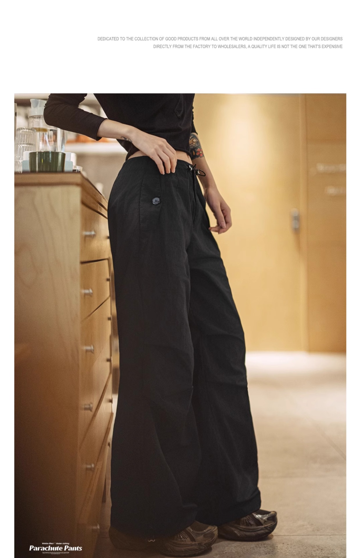 American-style pleated high-street workwear Vibe-style umbrella pants wide-leg drawstring jogger trousers for spring and summer women