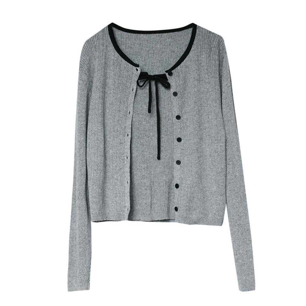針織設計感開衫外套灰色兩件套小衫秋季新款小眾復古上衣