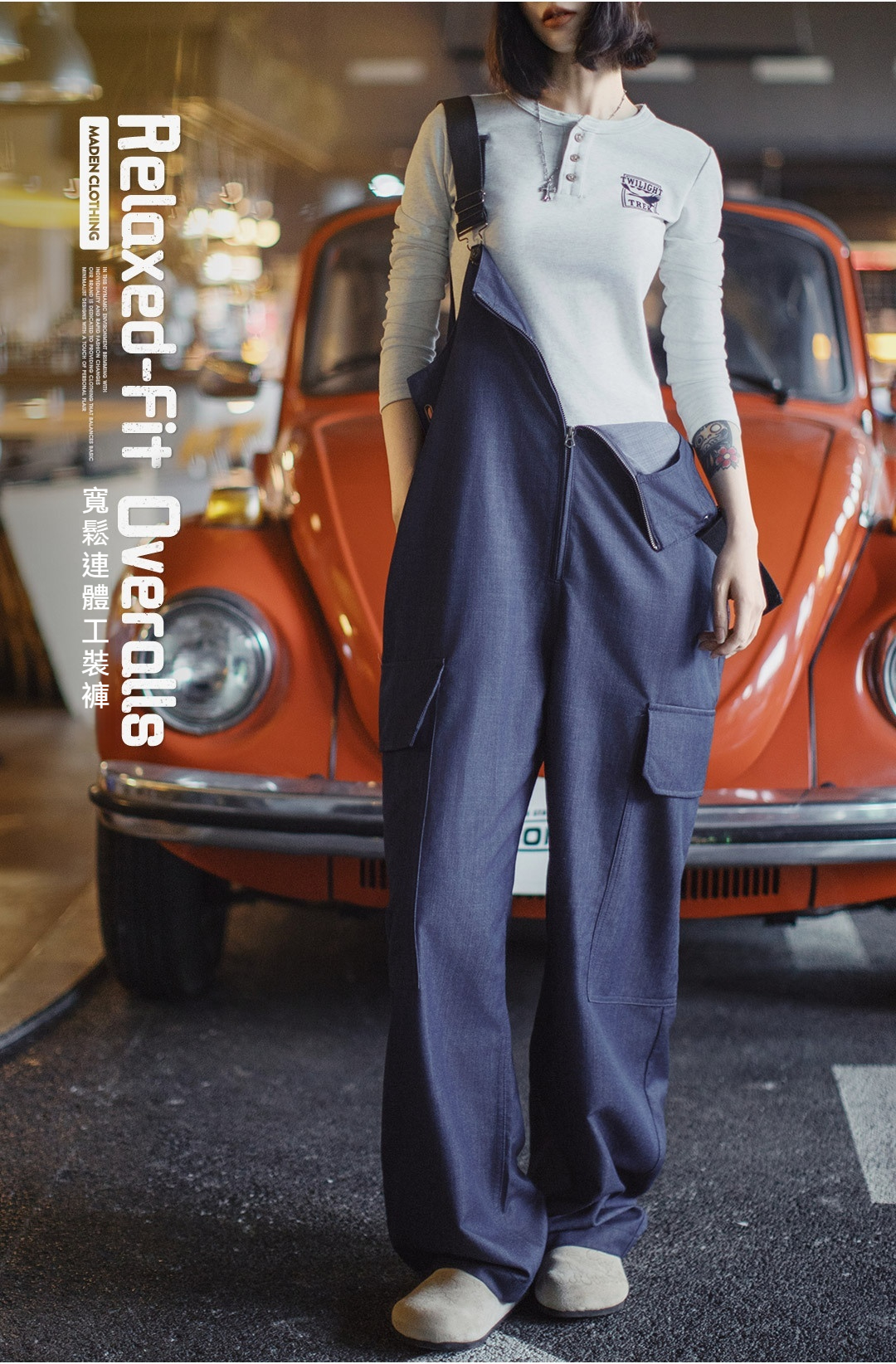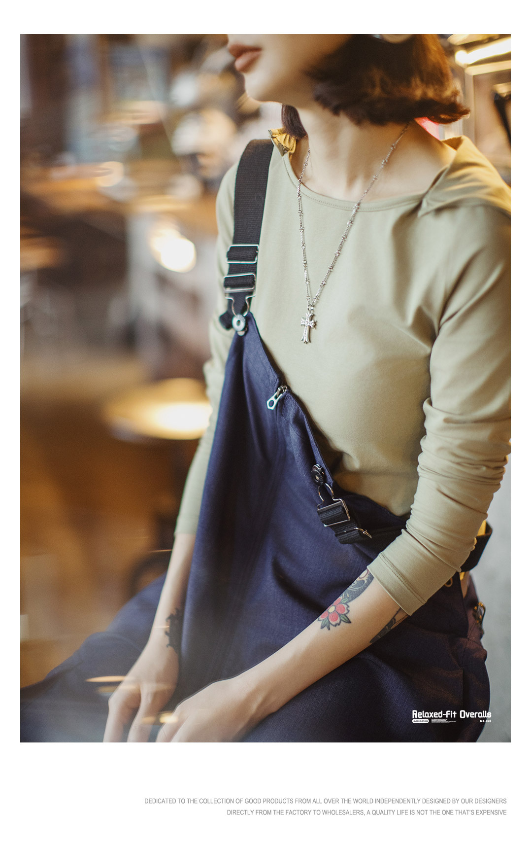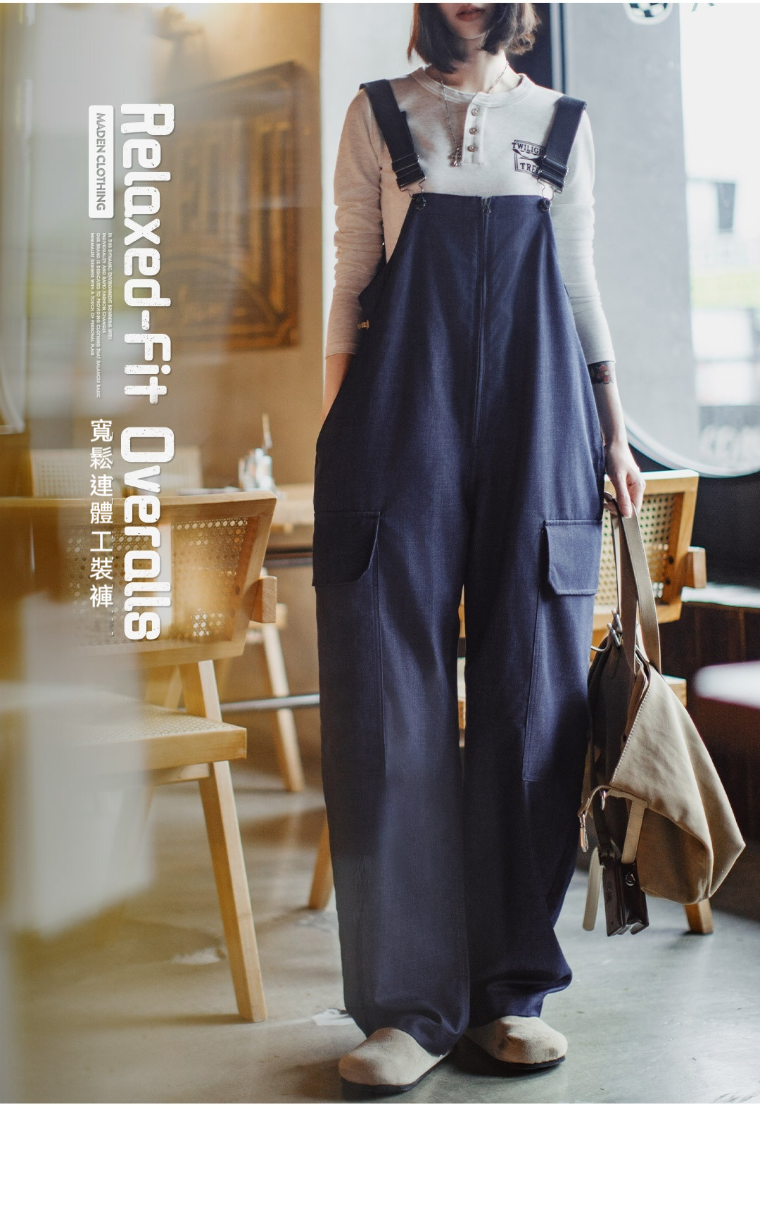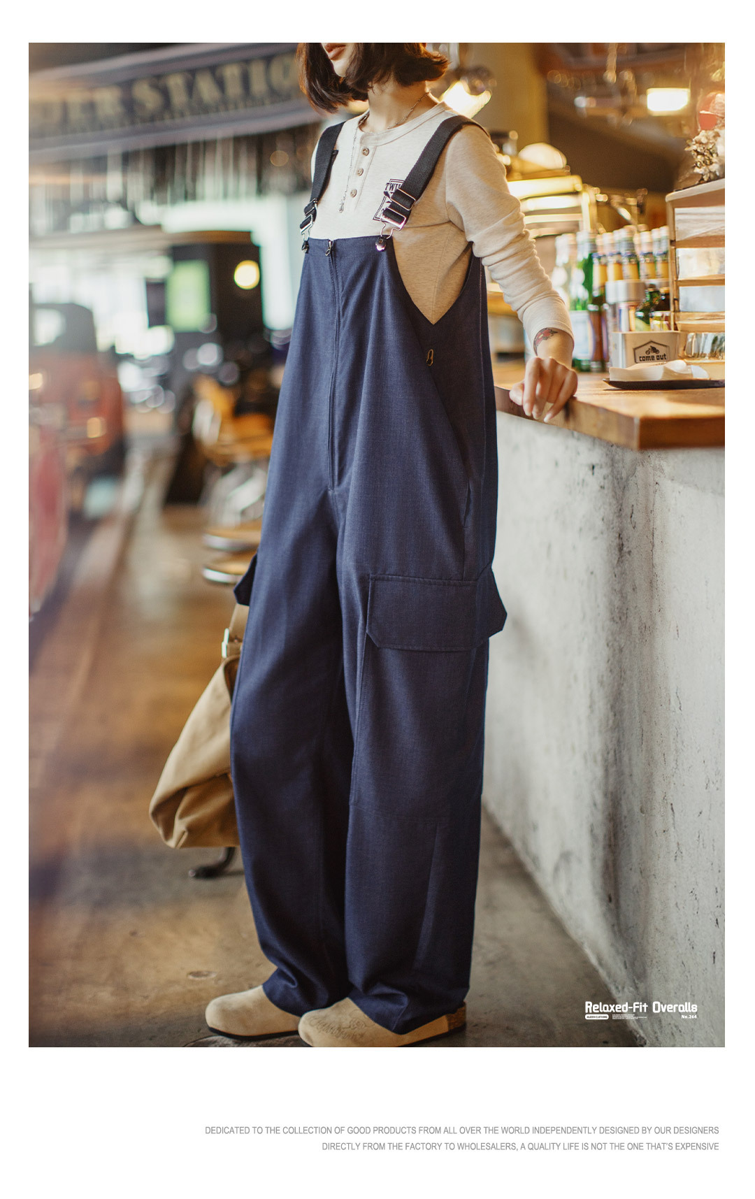 High-waisted denim straight leg wide-leg loose cargo overalls sleeveless suspender long jumpsuit women's autumn