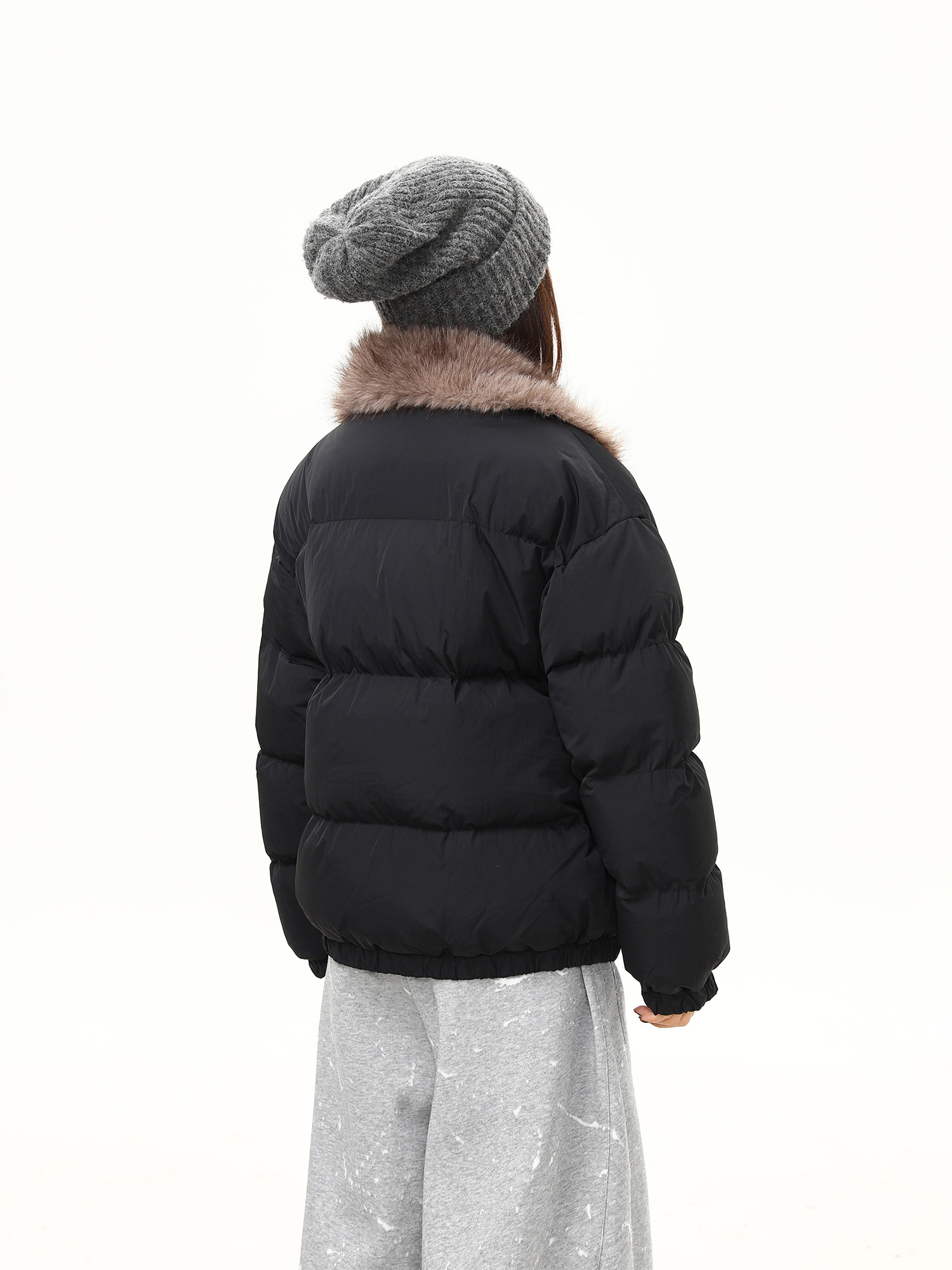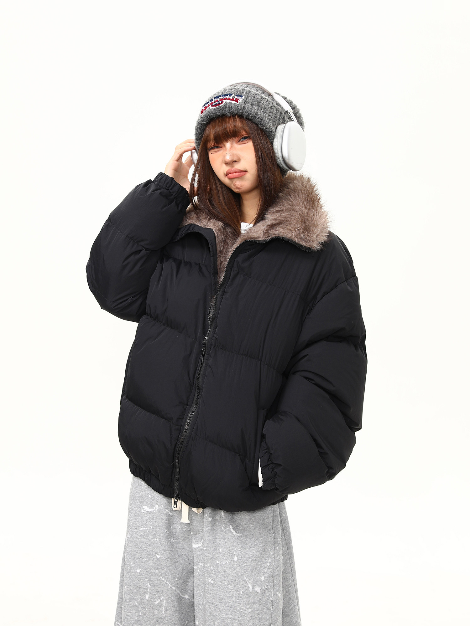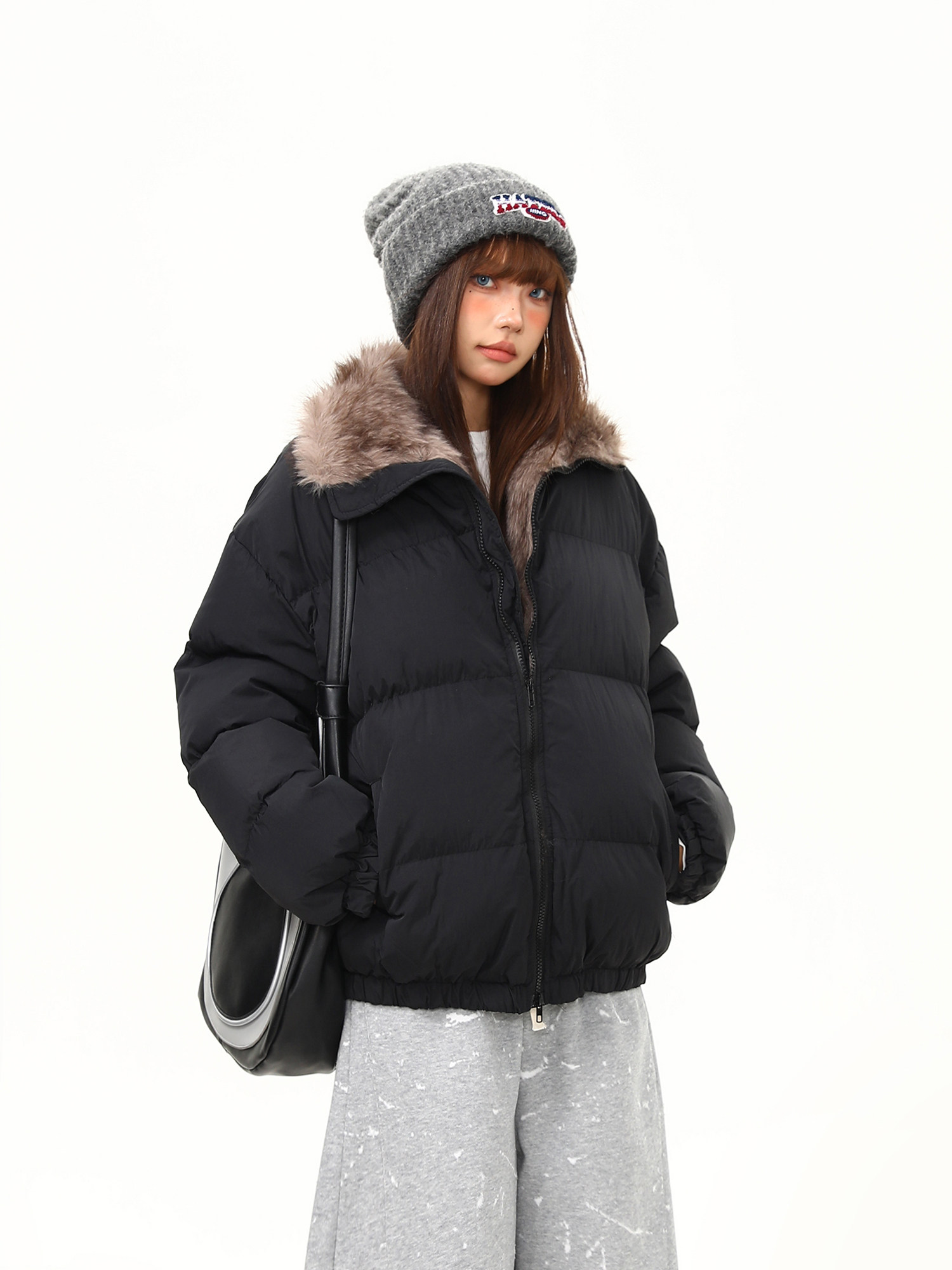 冬季加厚毛領保暖麵包棉服女立領高級感美式復古棉衣棉襖
