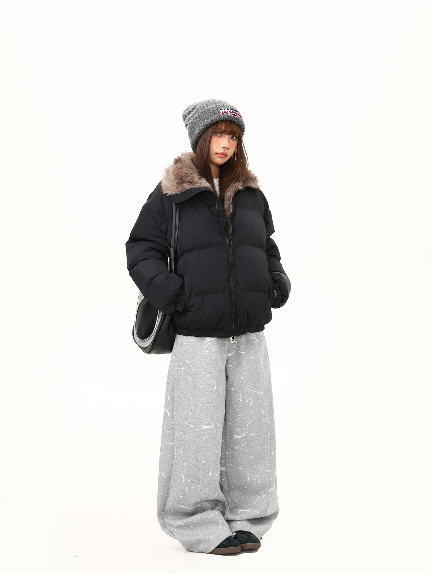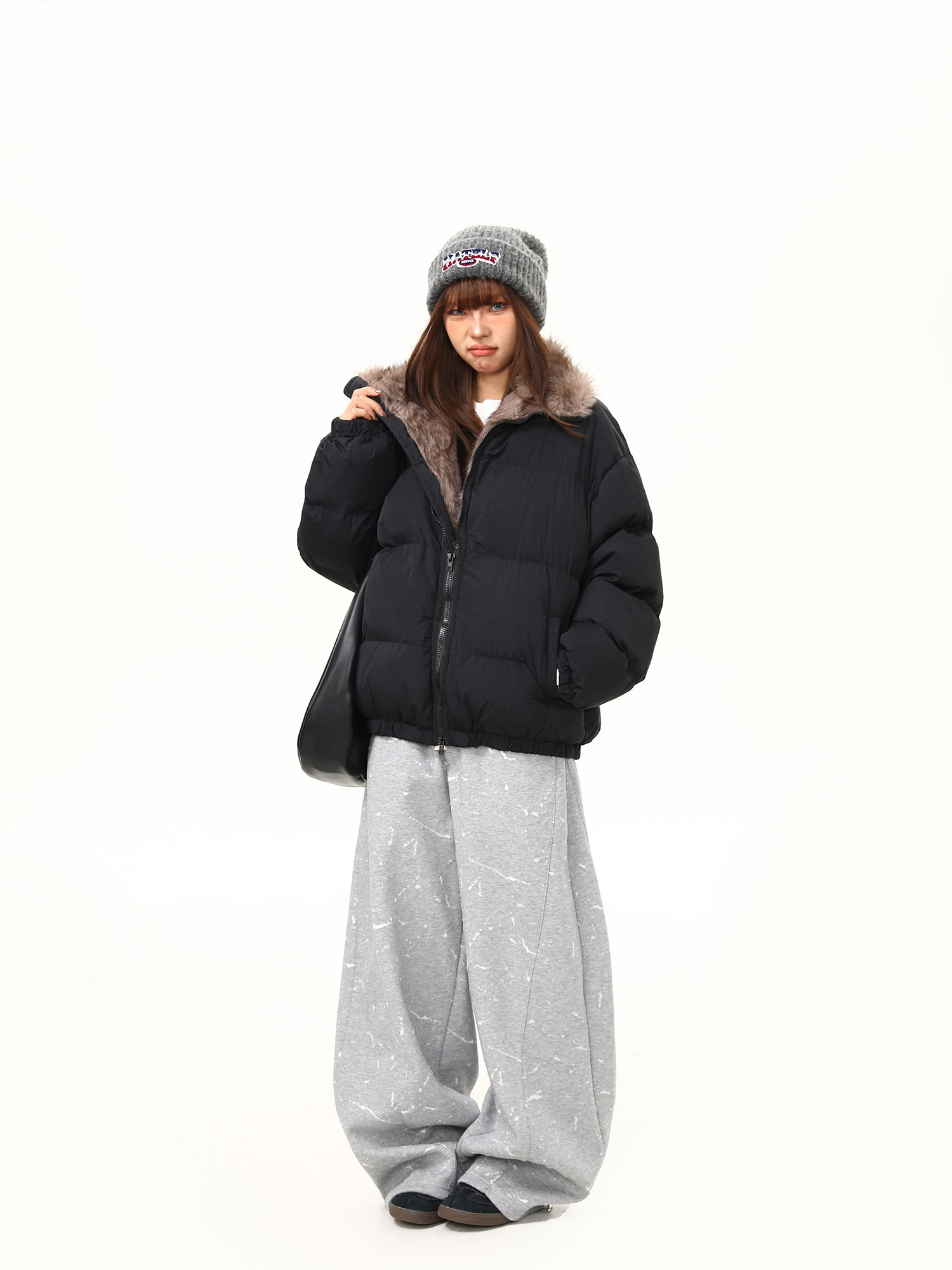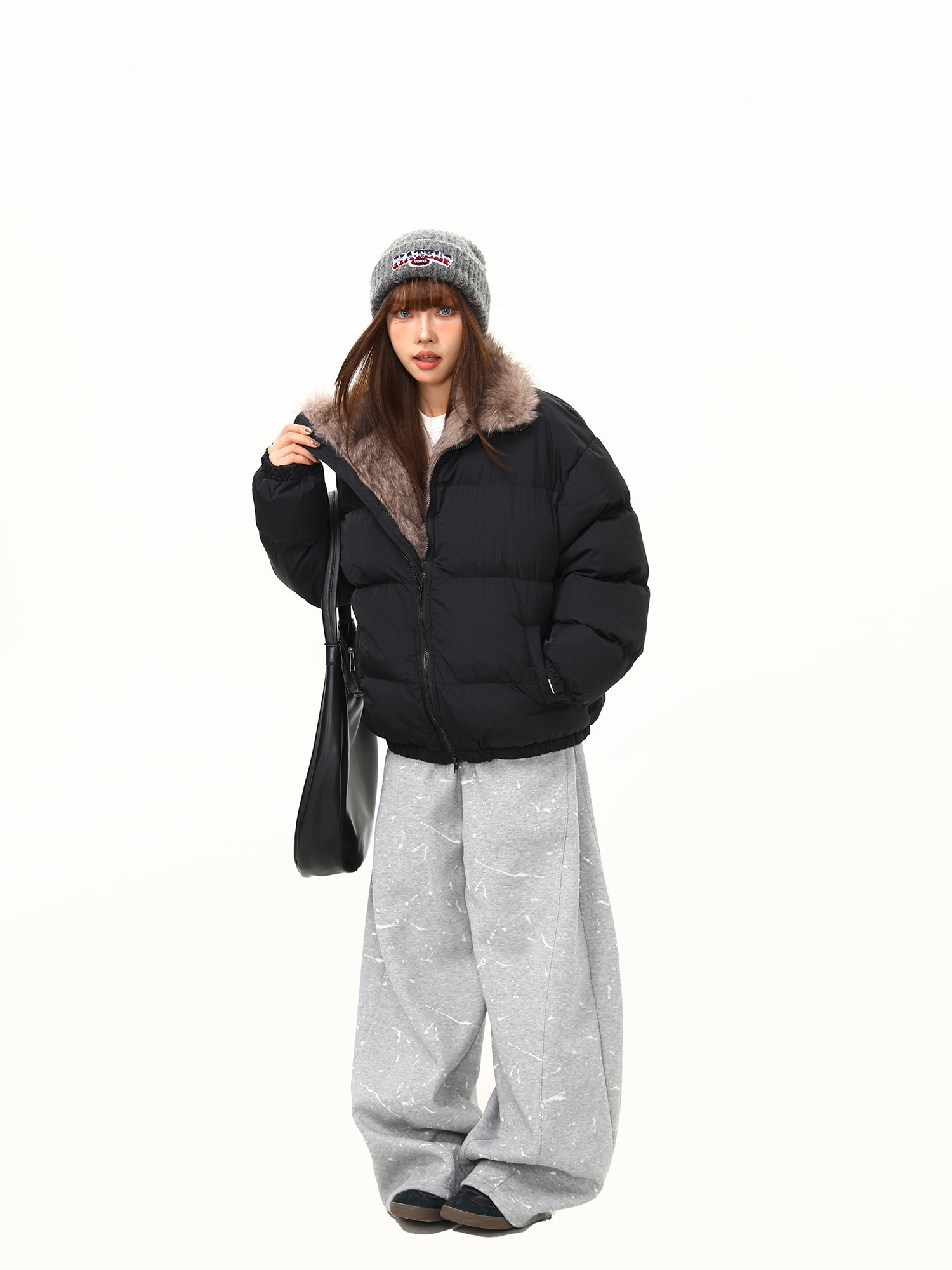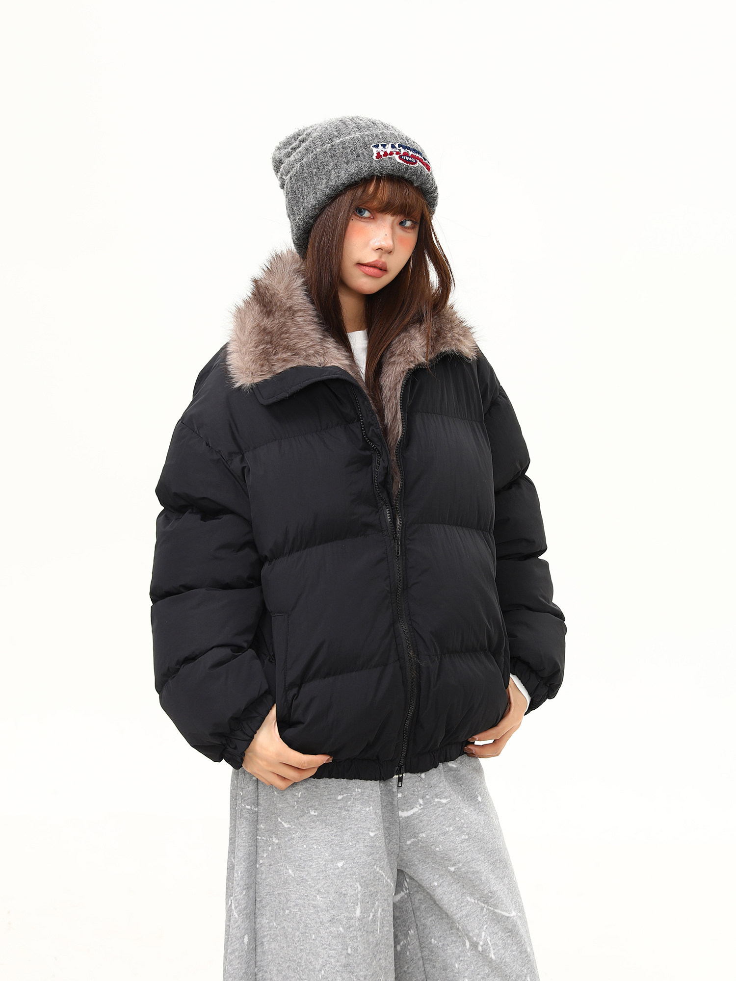 冬季加厚毛領保暖麵包棉服女立領高級感美式復古棉衣棉襖
