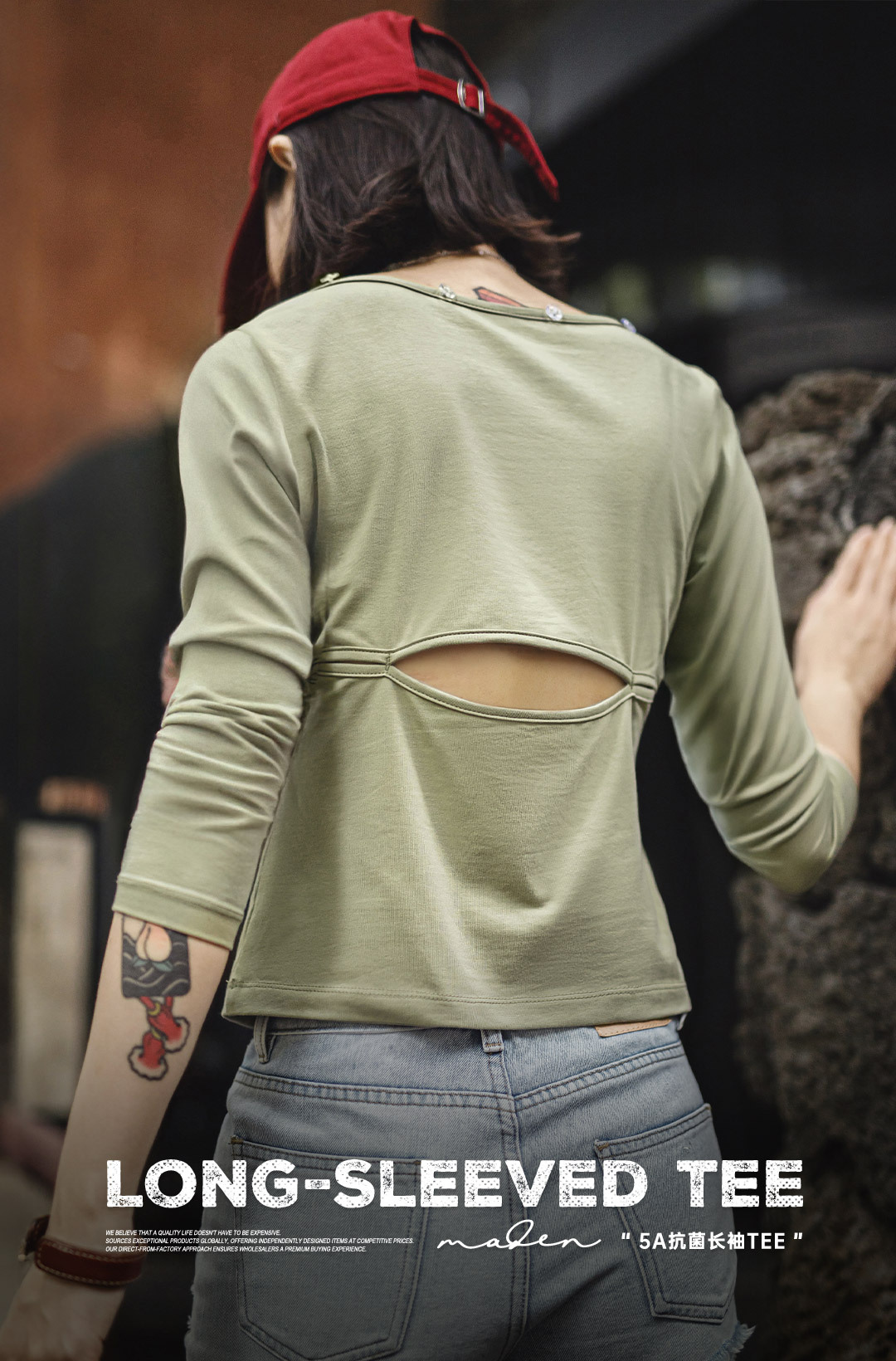 凉快輕薄款冰瓷棉凉感針織修身長袖連帽T恤罩衫上衣女士夏日