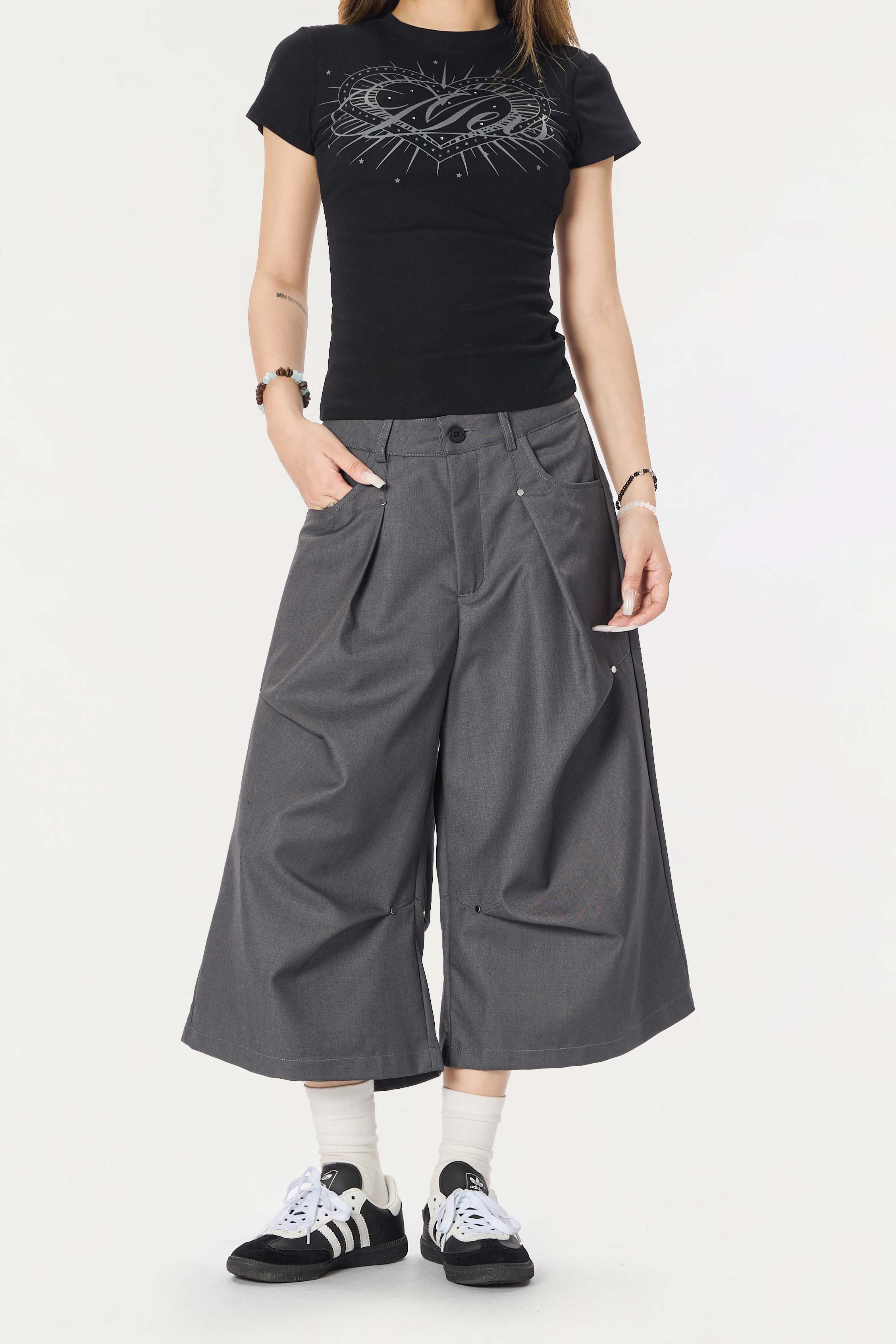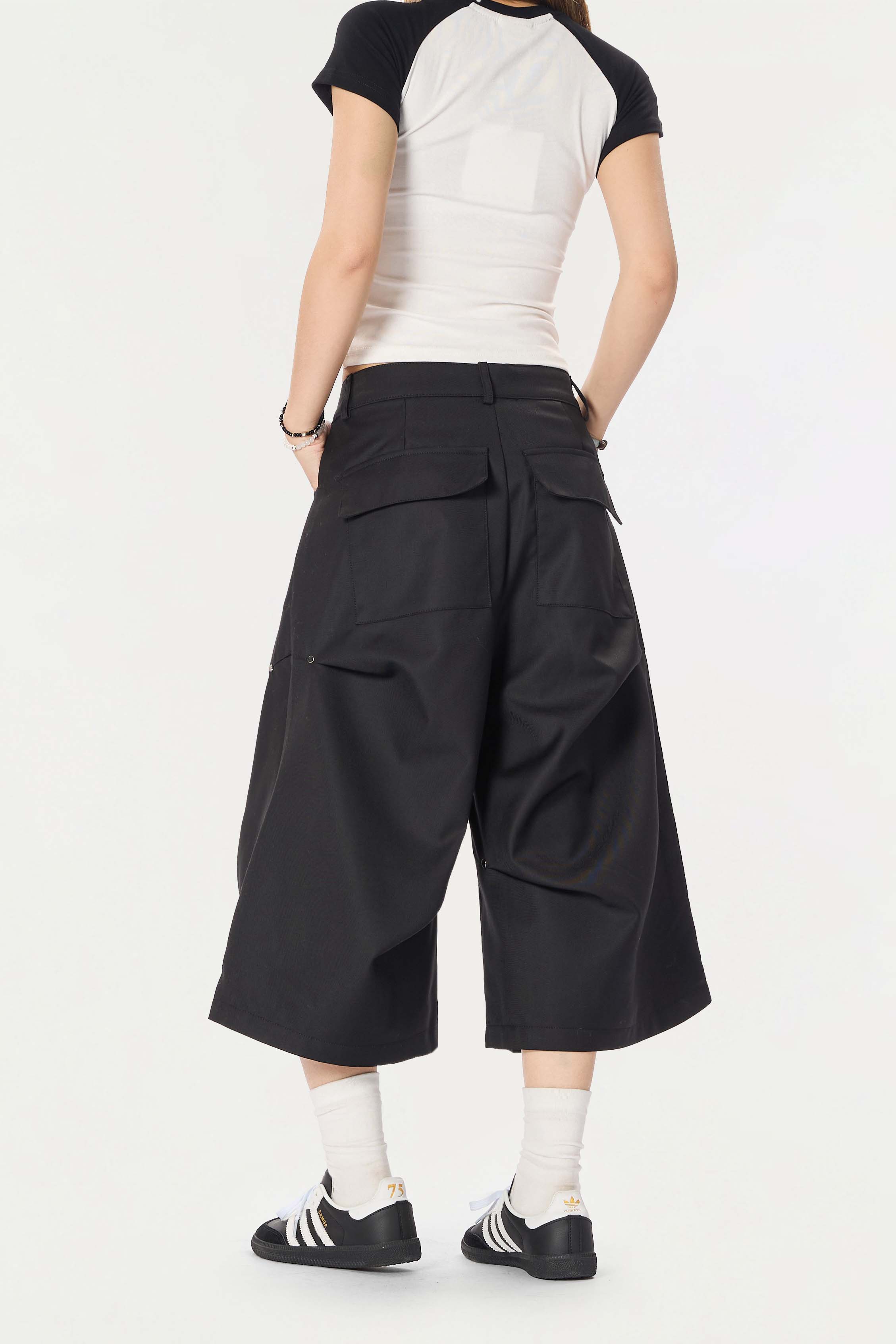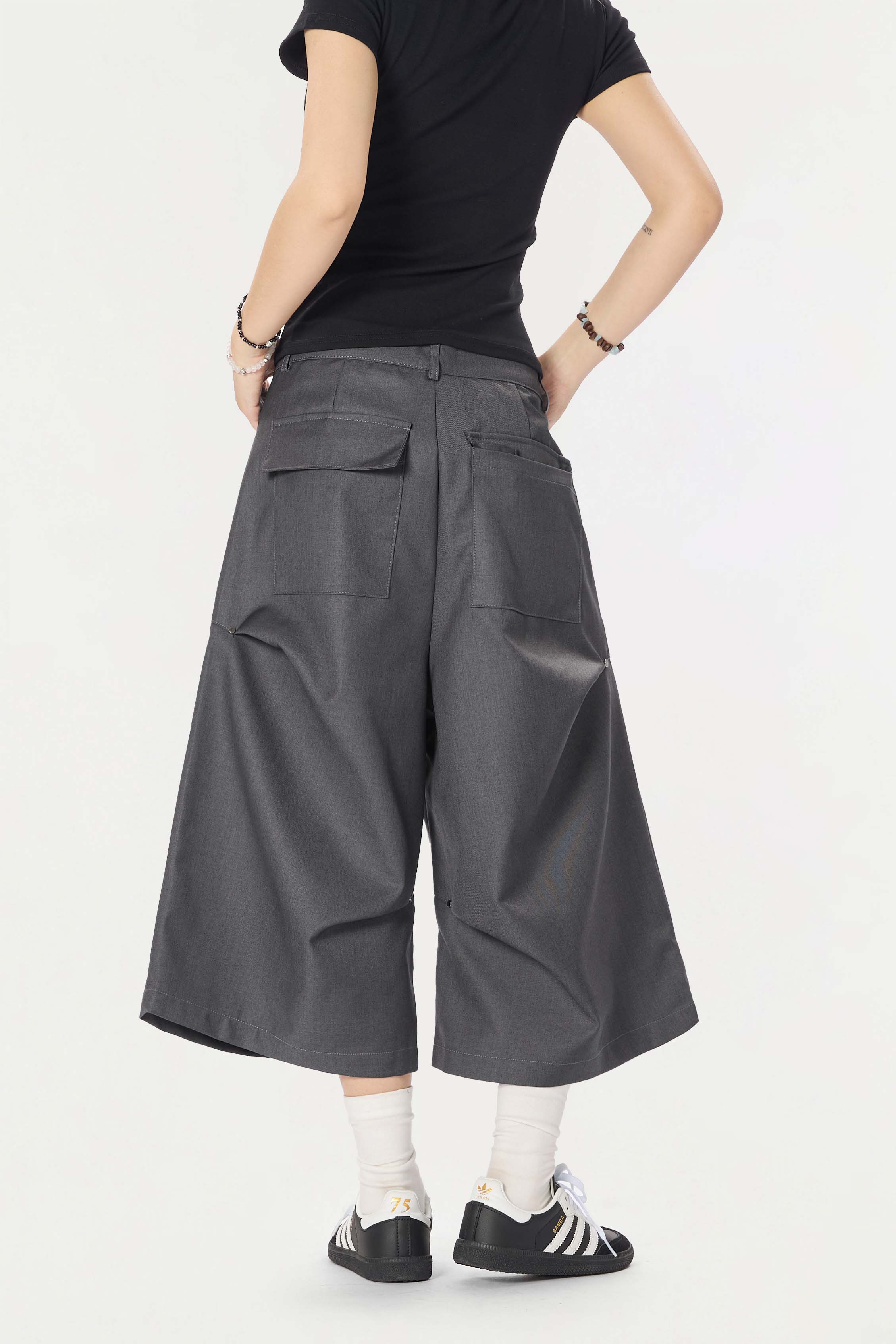 夏季潮牌設計感撞釘休閒短褲女cleanfi闊腿七分褲