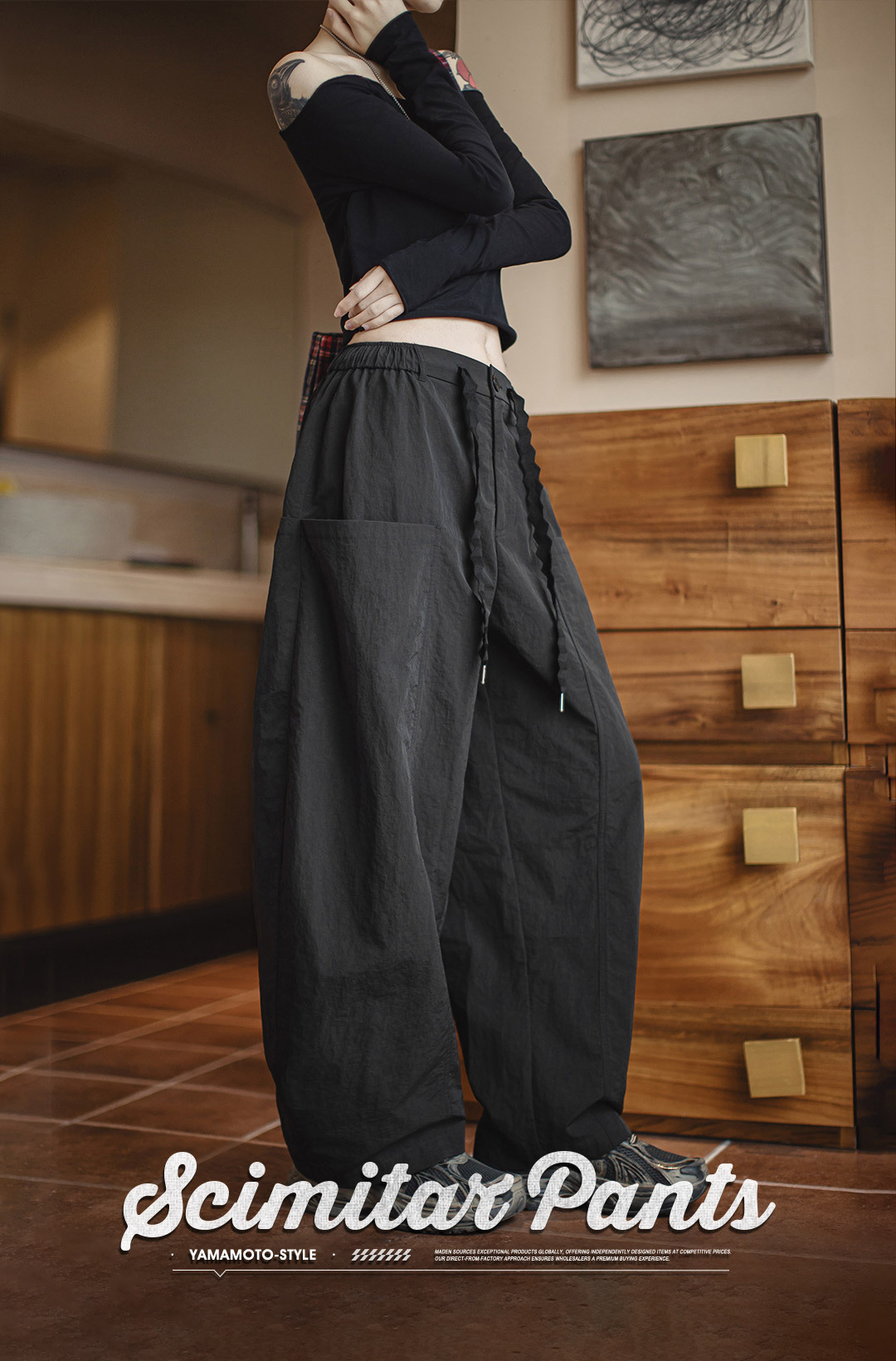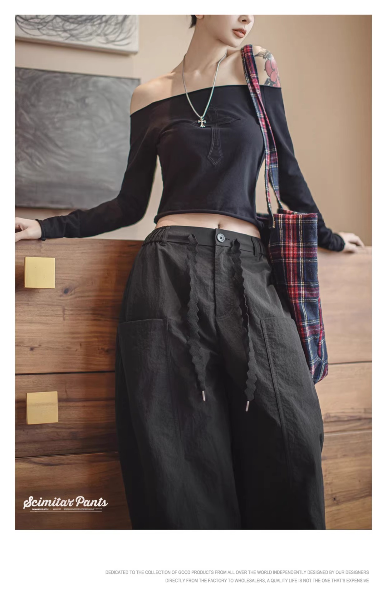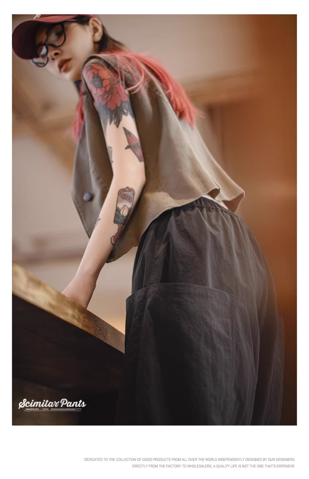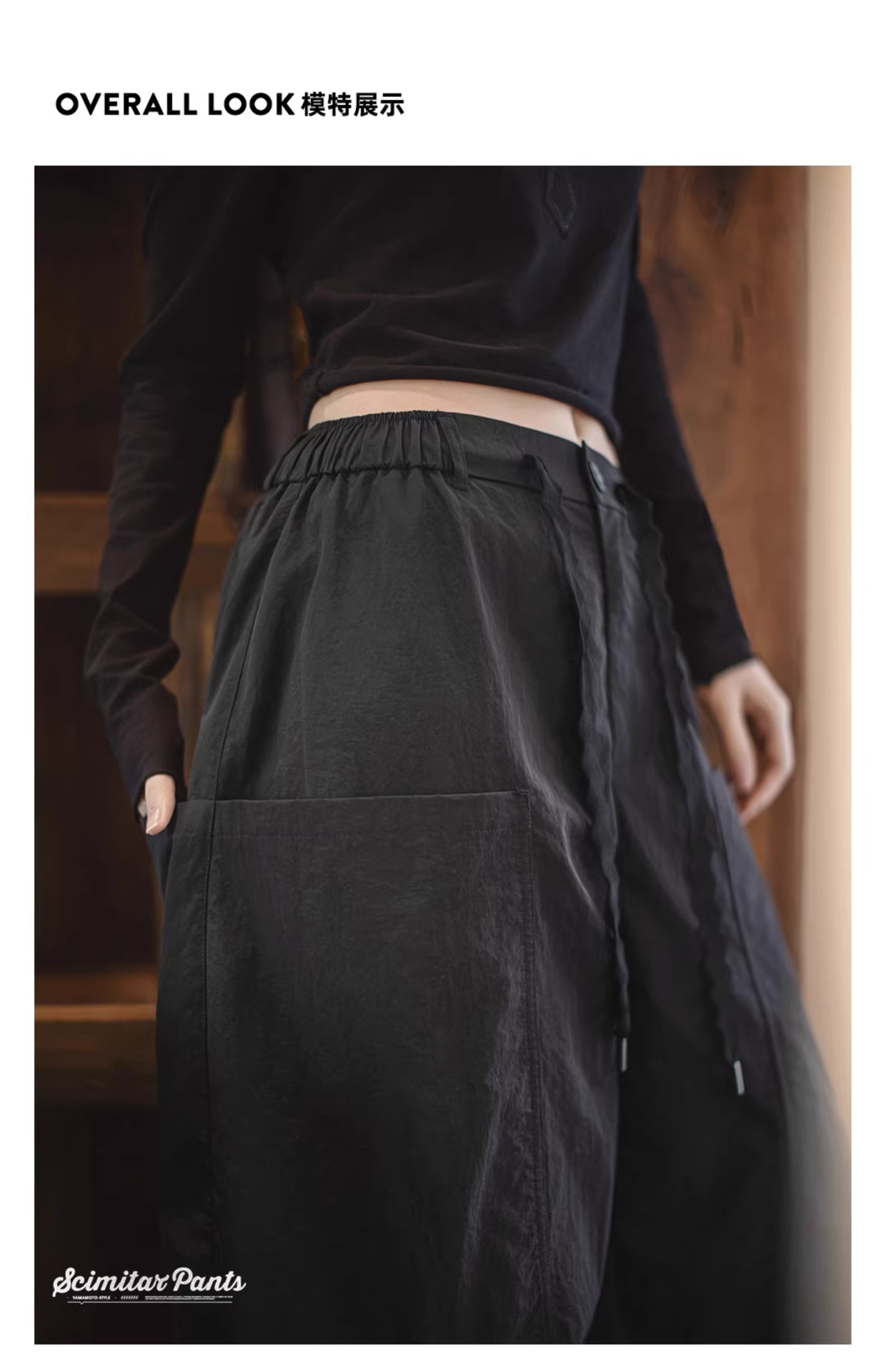 夏日系鬆弛感工裝山本彎刀褲顯腿長寬鬆慵懶小個子闊腿褲潮女