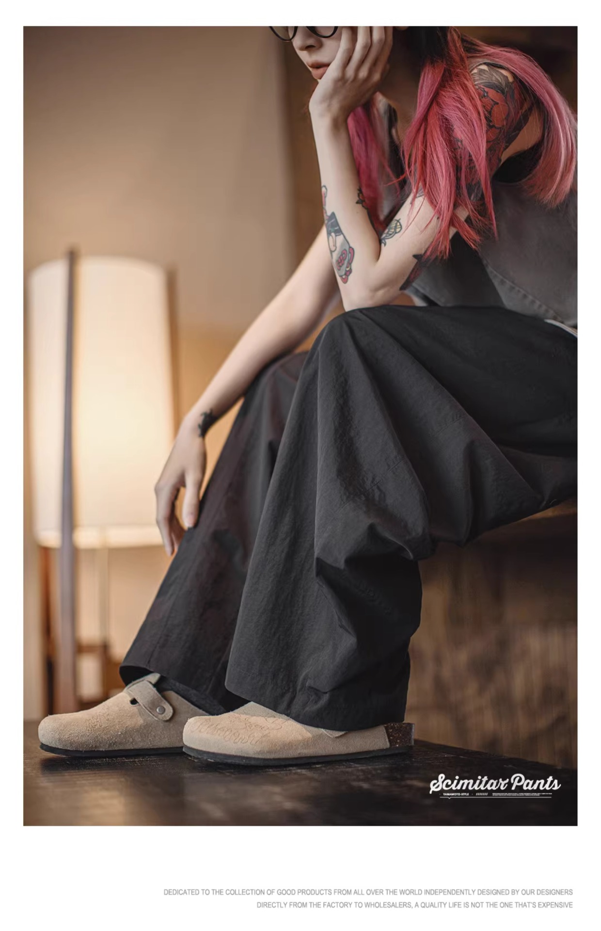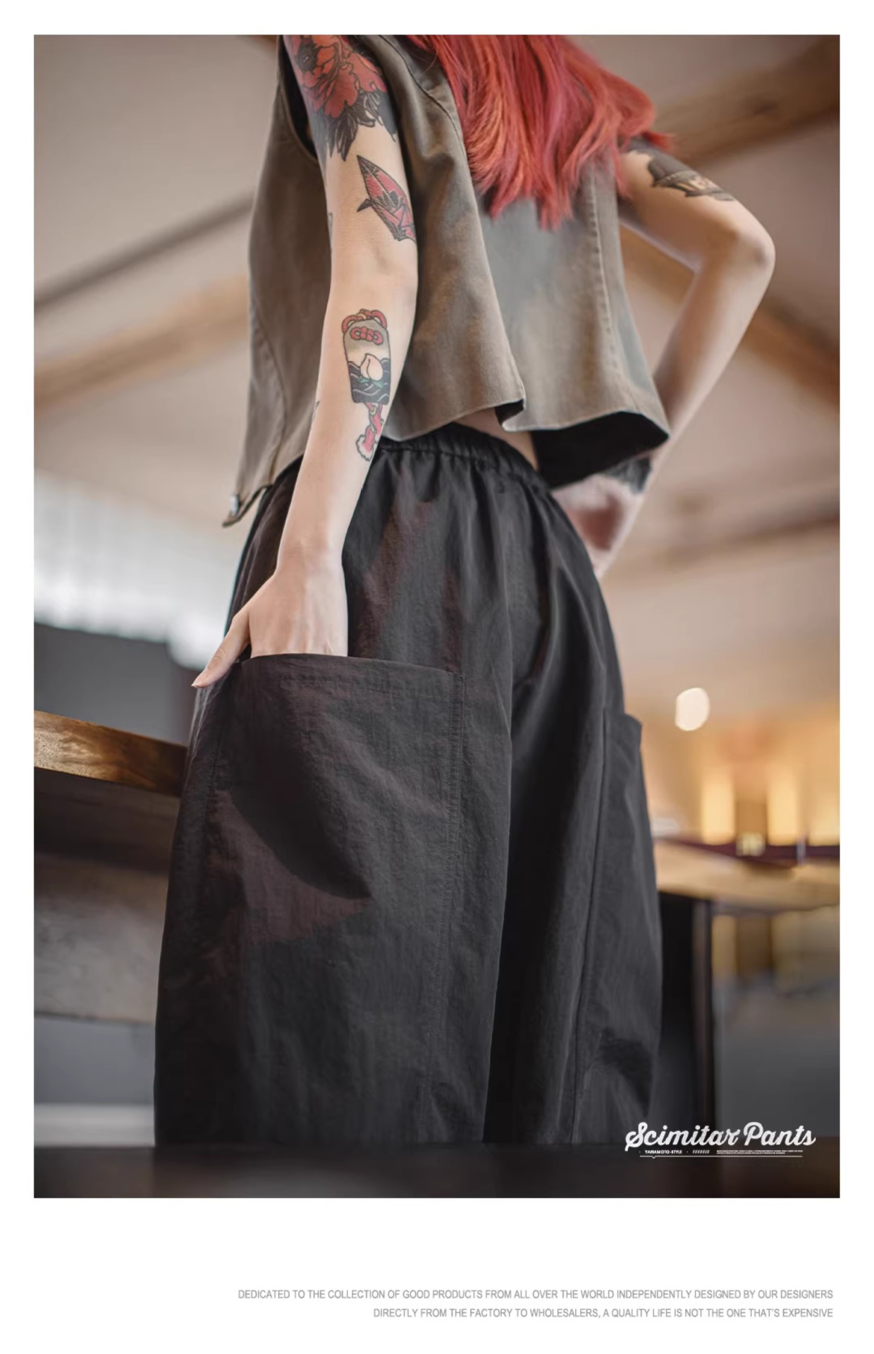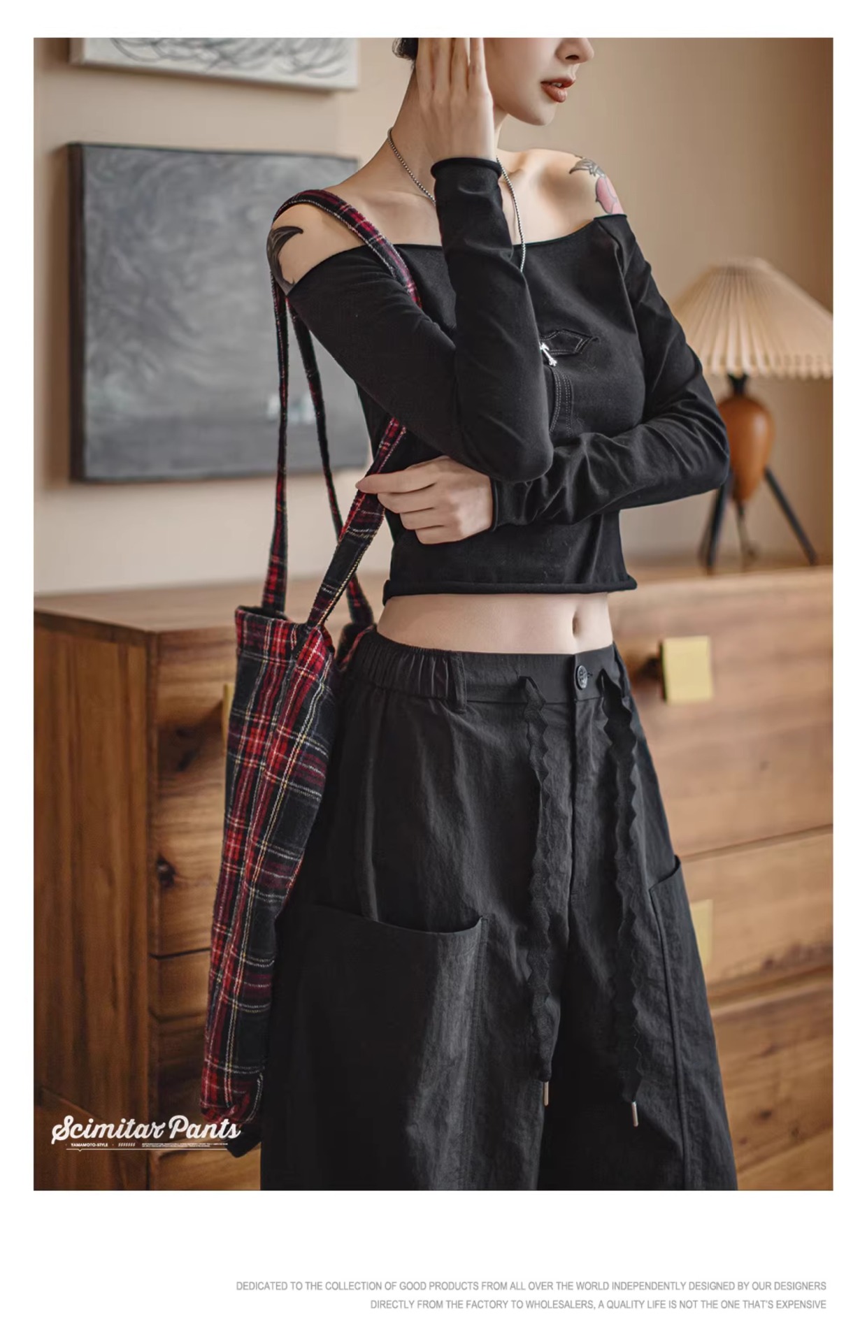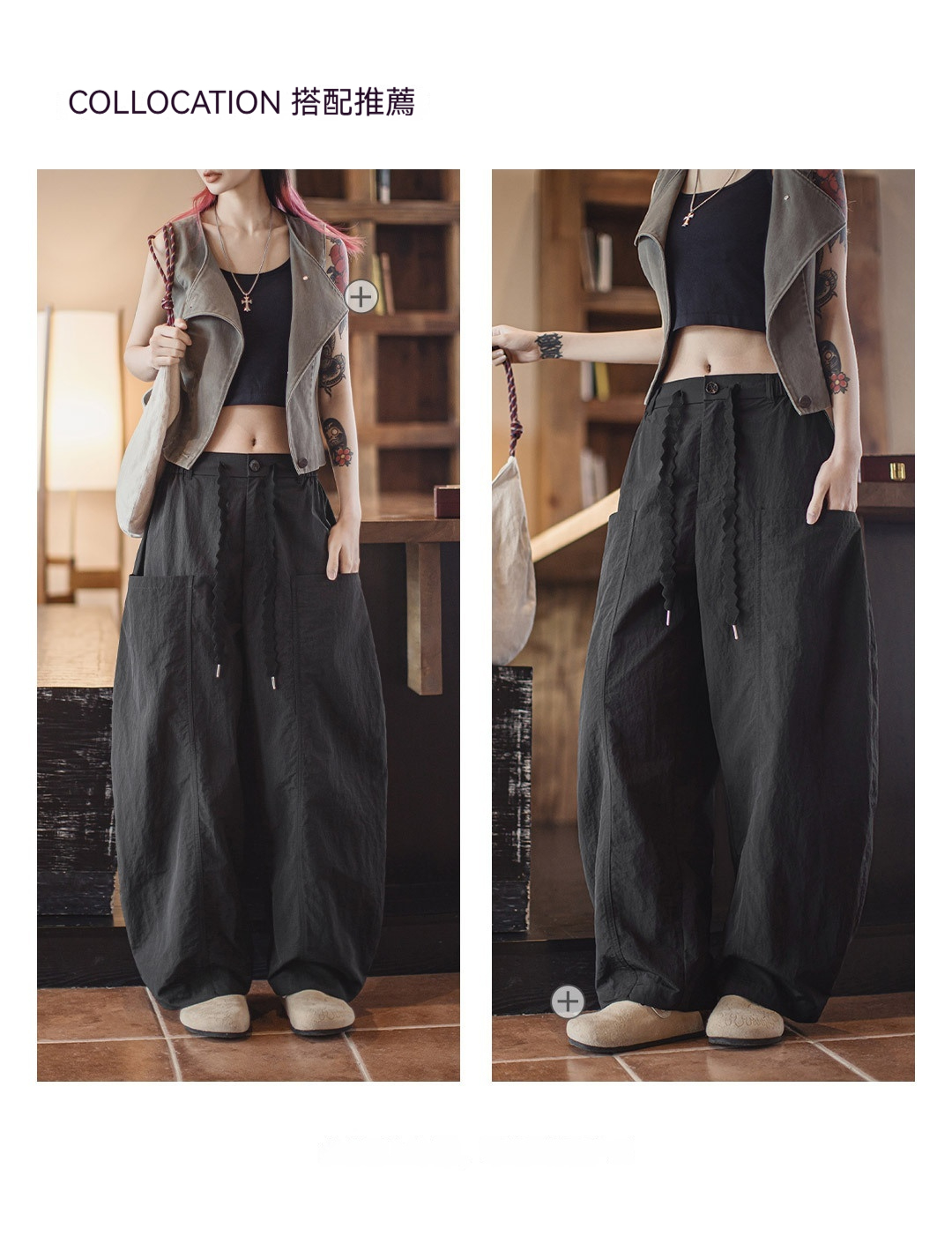 夏日系鬆弛感工裝山本彎刀褲顯腿長寬鬆慵懶小個子闊腿褲潮女