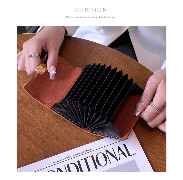 復古大容量風琴卡包皮質新款銀行卡夾女士油蠟皮多卡位精緻零錢包