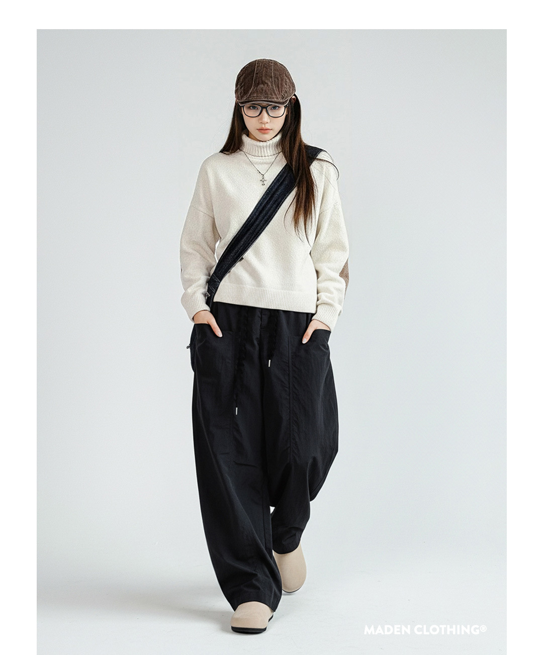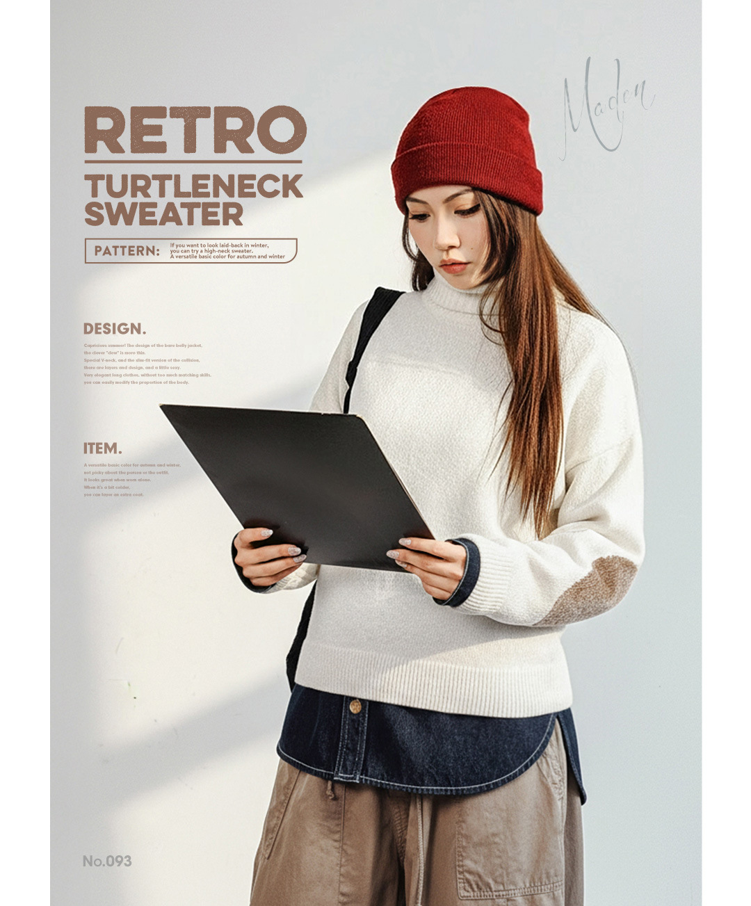 復古米白色雪尼爾寬鬆高領加厚保暖針織毛衣內搭上衣秋冬女