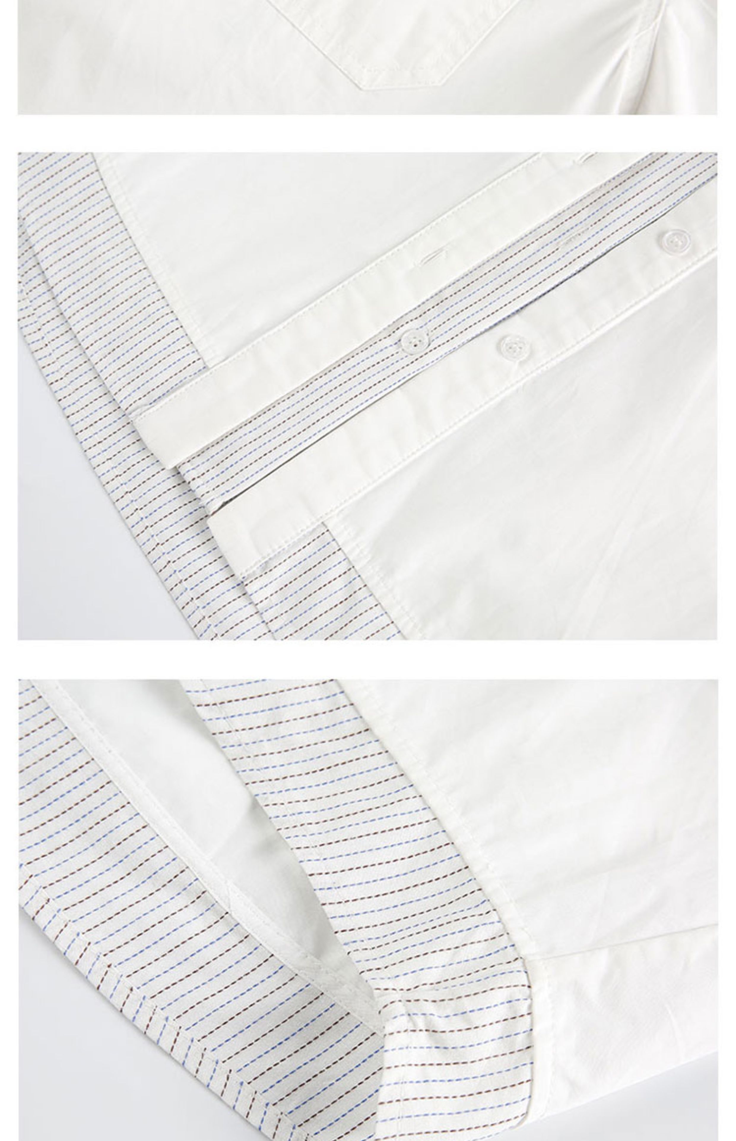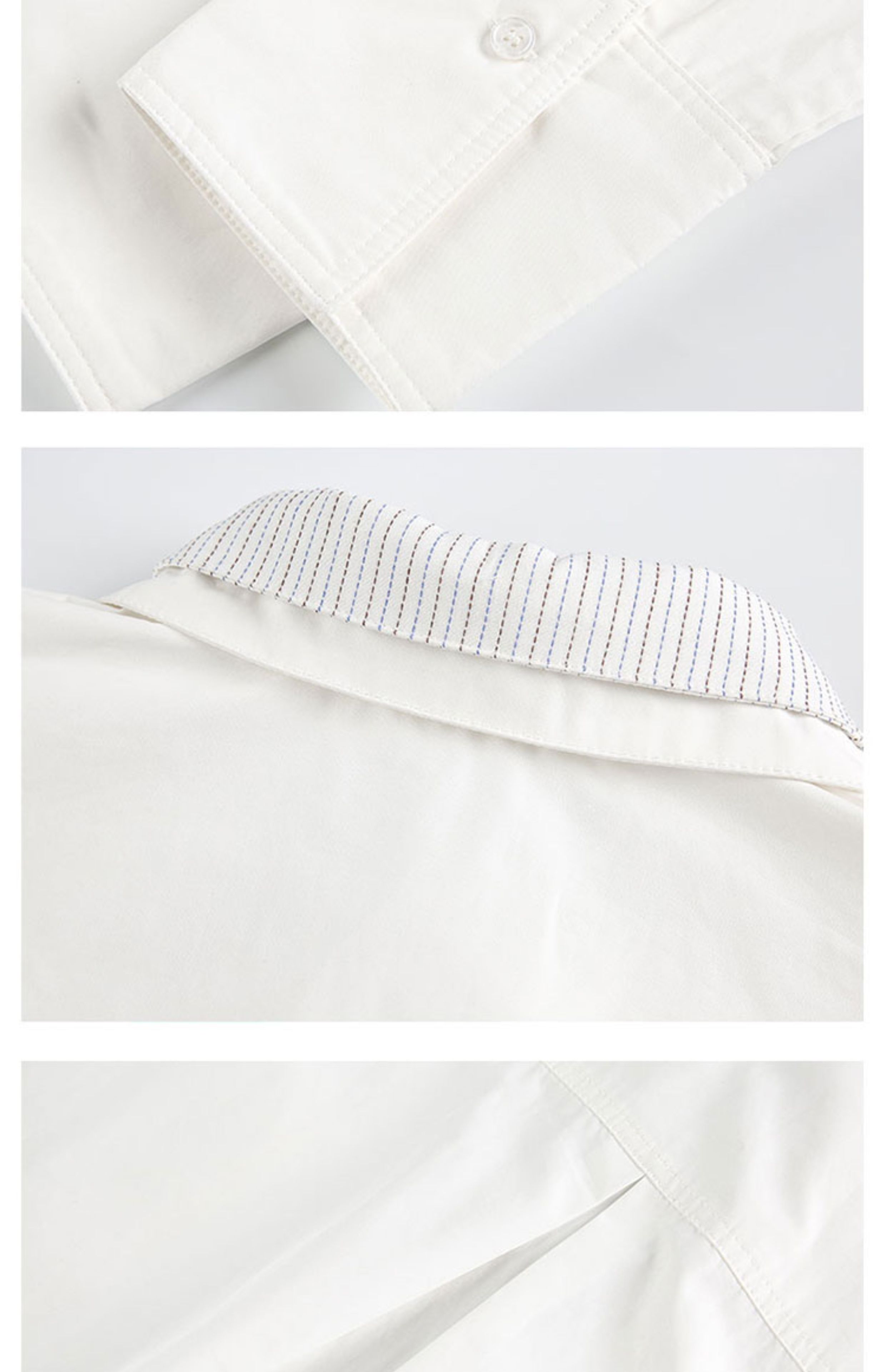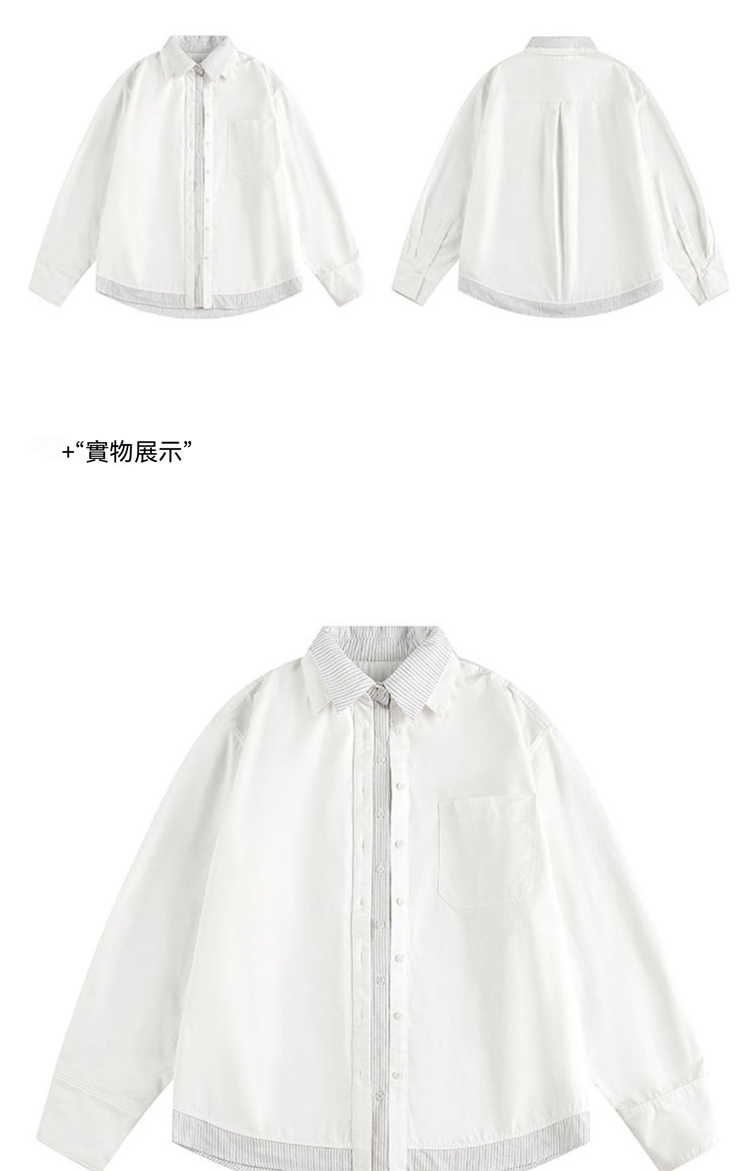 日系復古撞色條紋拼接假兩件襯衫女秋季休閒百搭襯衣外套