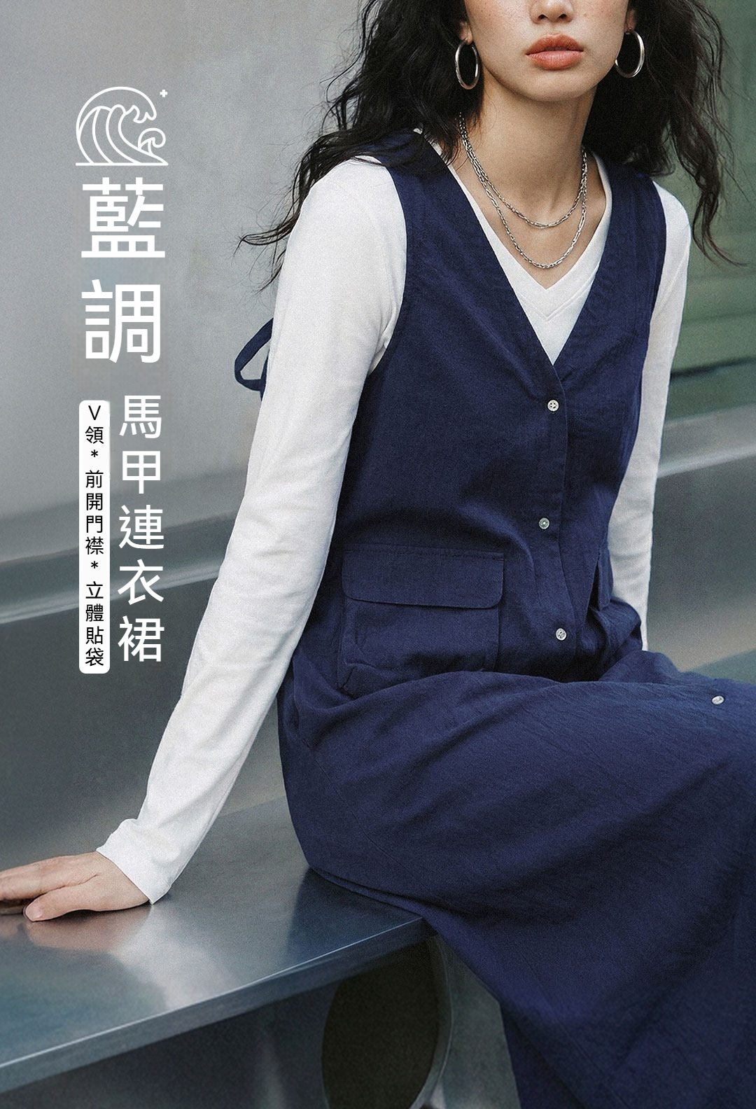 深V領外搭疊穿無袖馬夾甲背心工裝連衣裙子開叉衫外套女士春