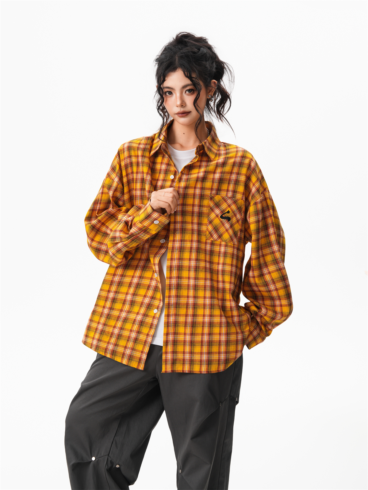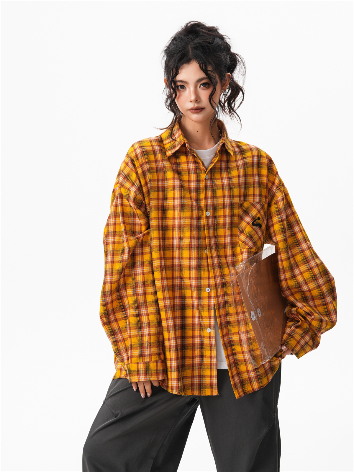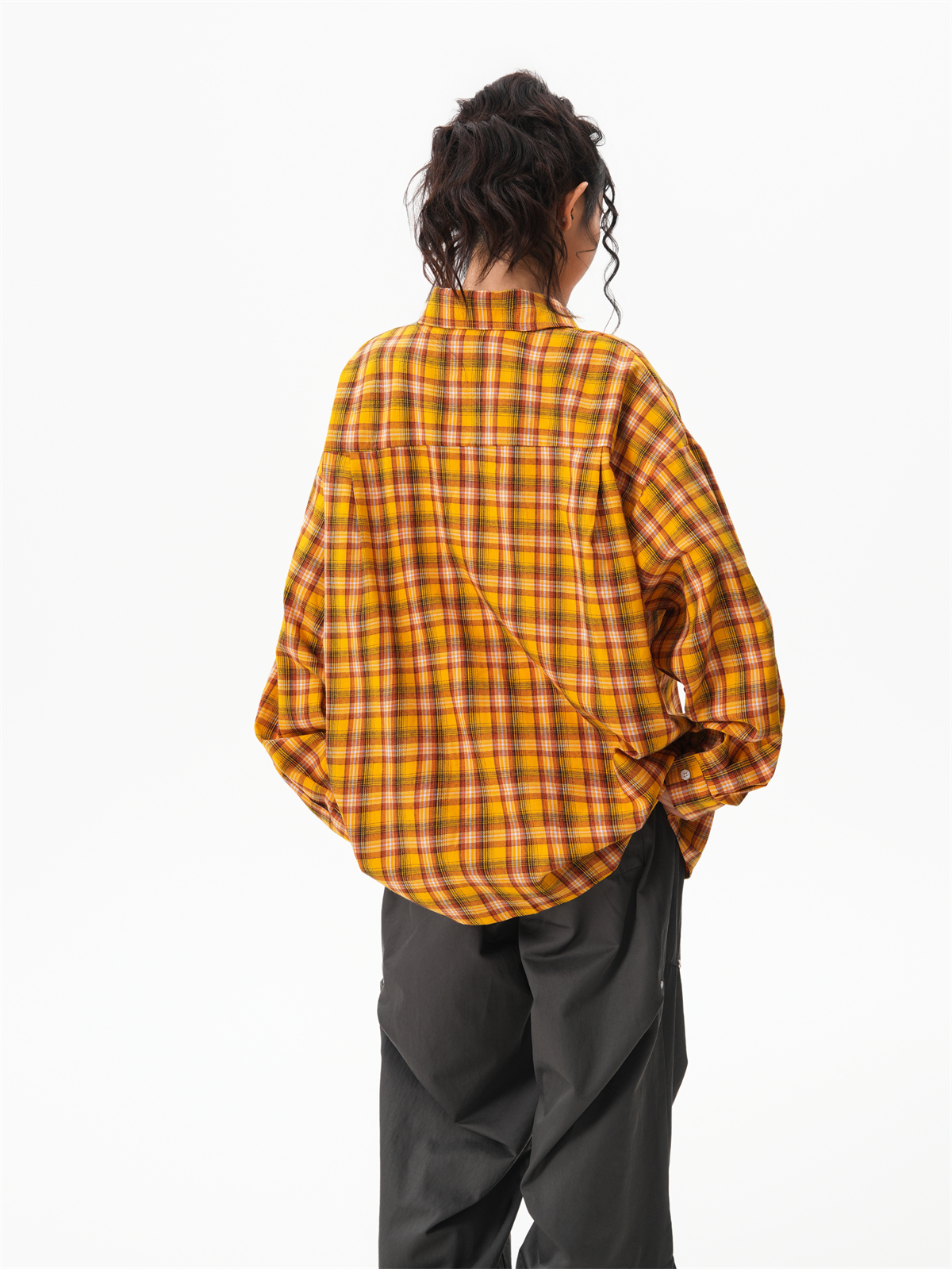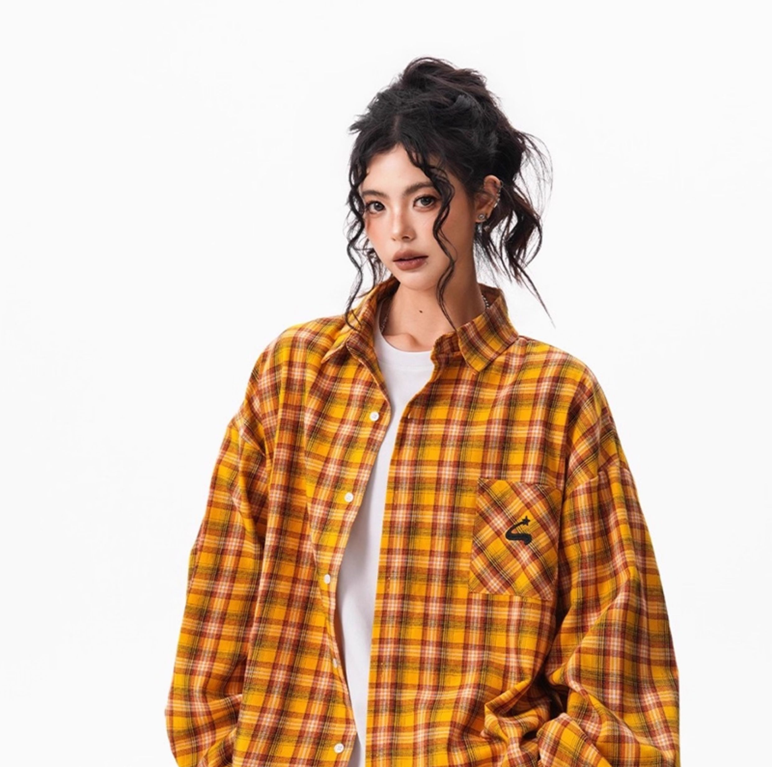 秋季多巴胺黃色格子襯衫女寬鬆休閒慵懶風百搭襯衣外套