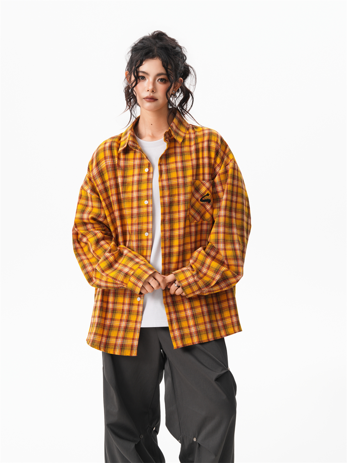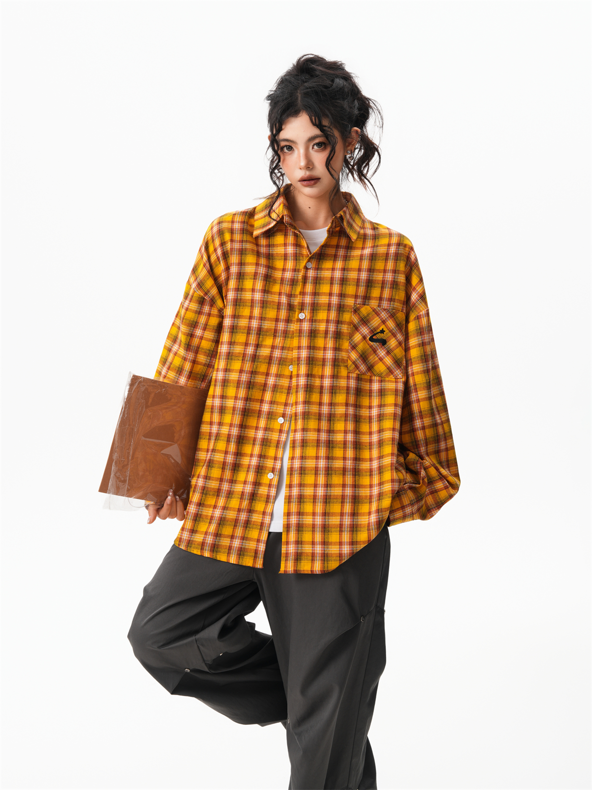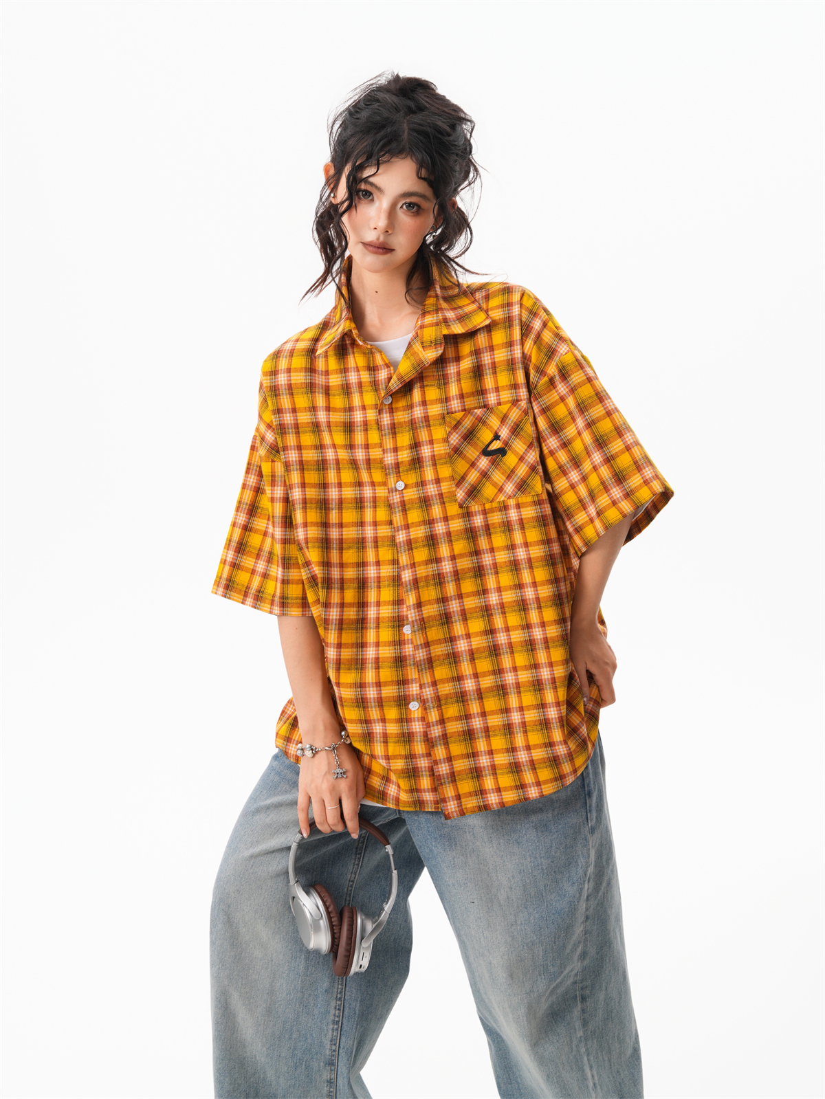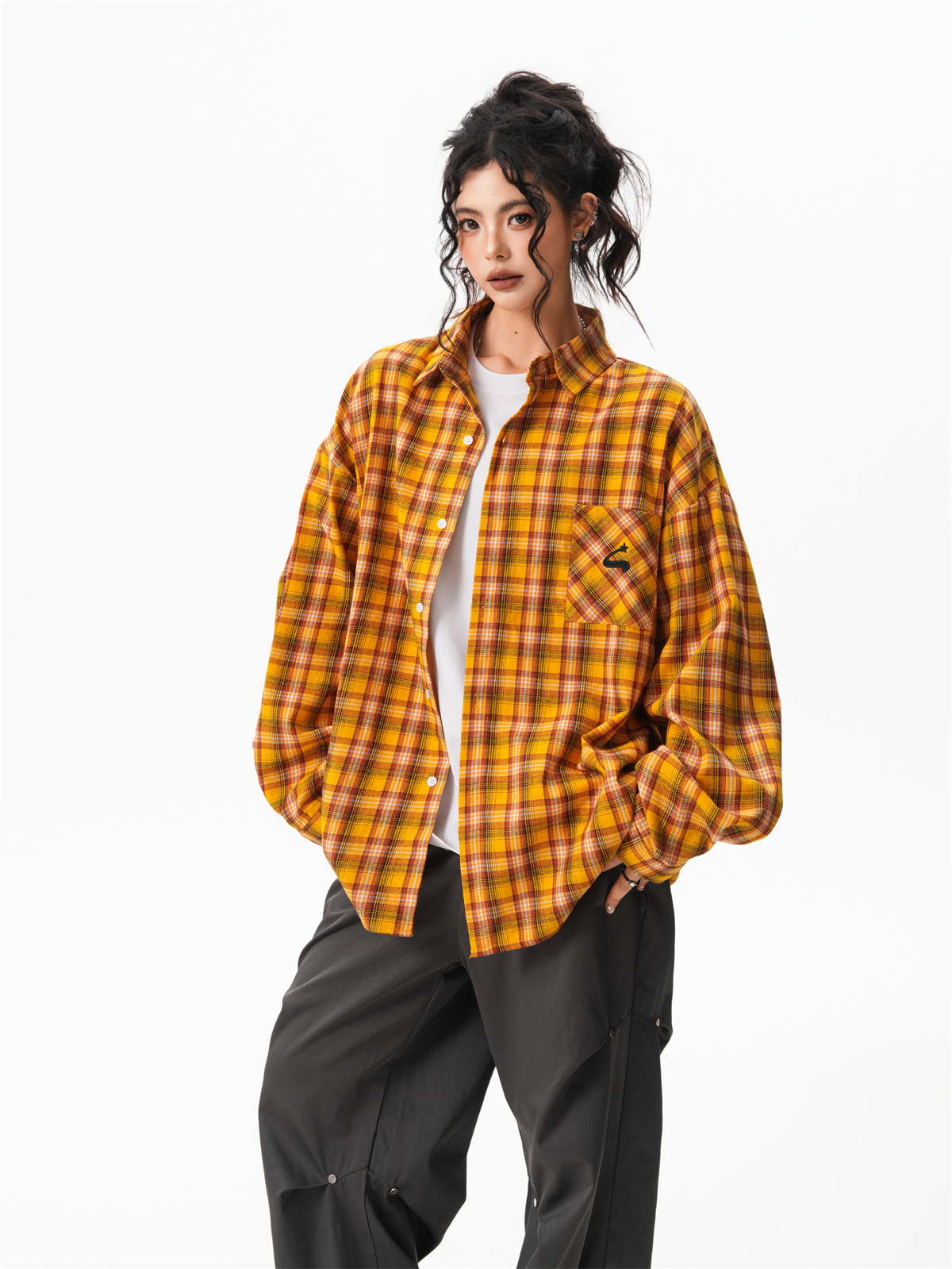 秋季多巴胺黃色格子襯衫女寬鬆休閒慵懶風百搭襯衣外套