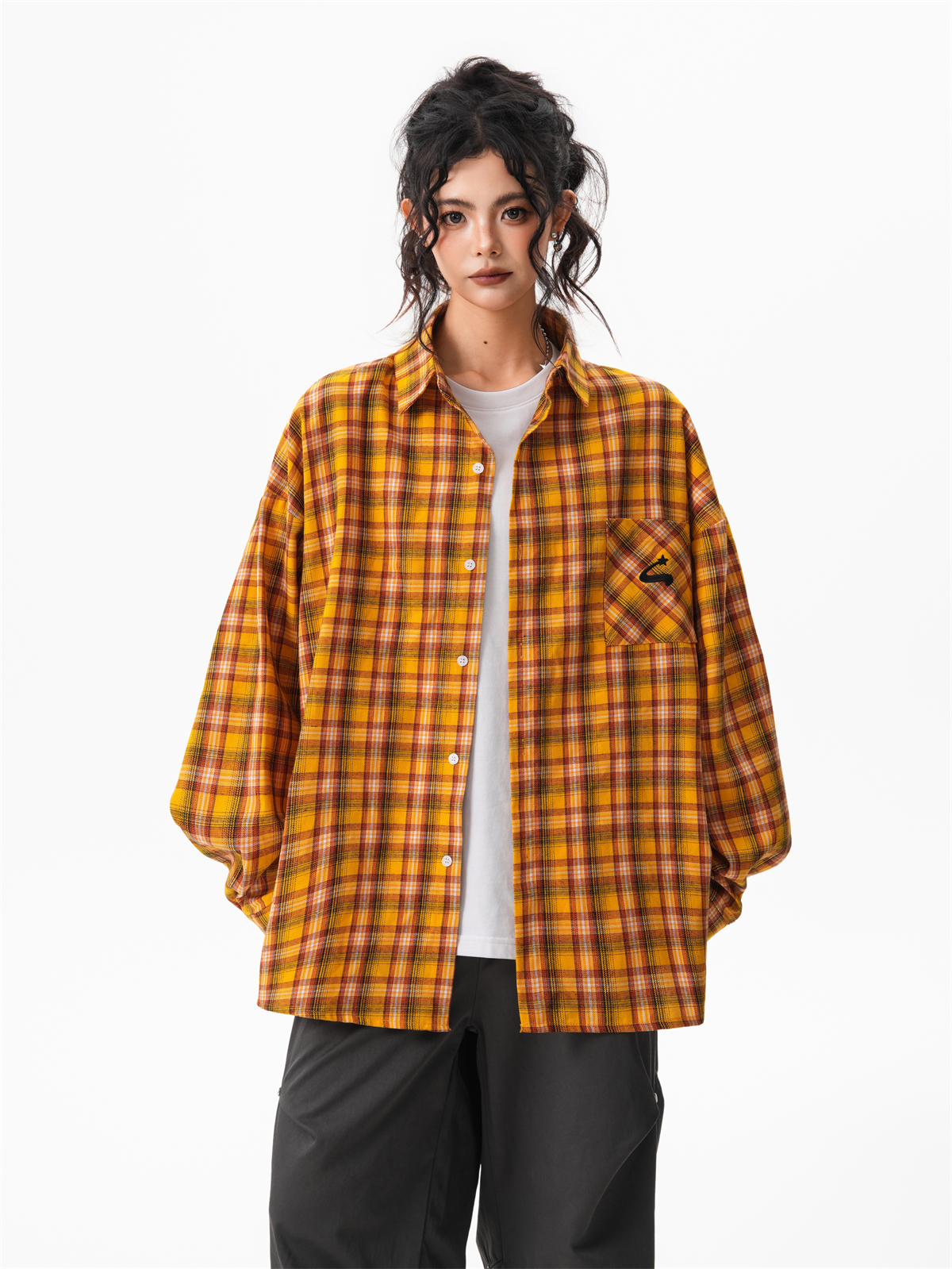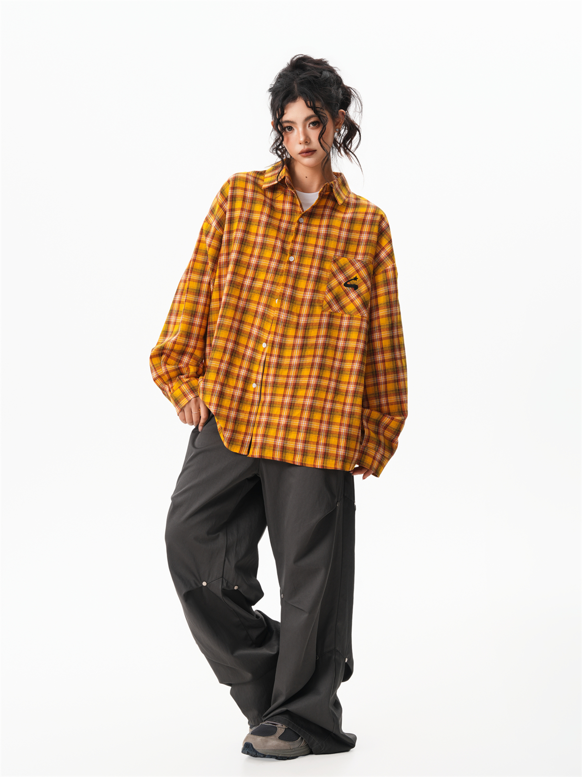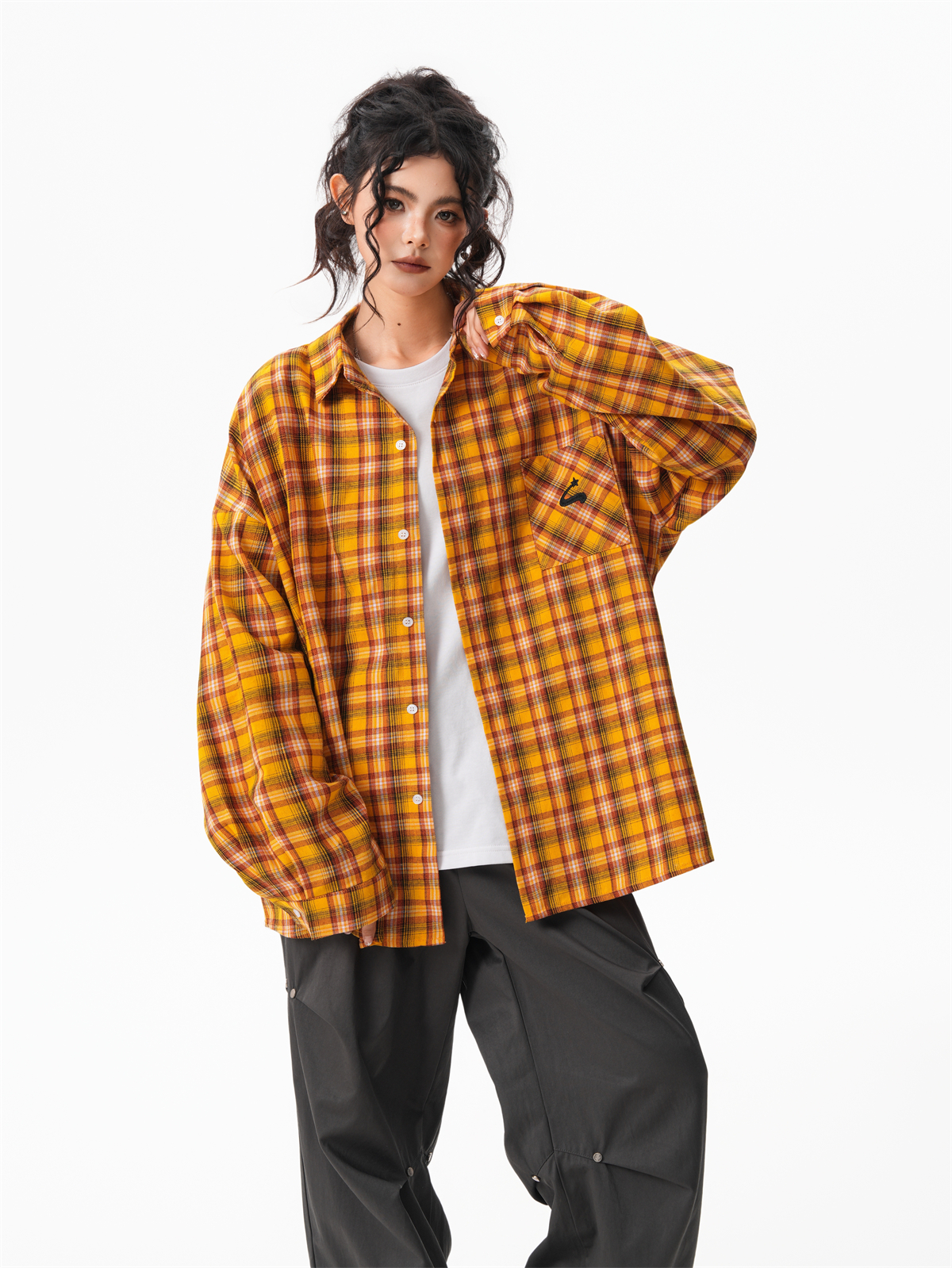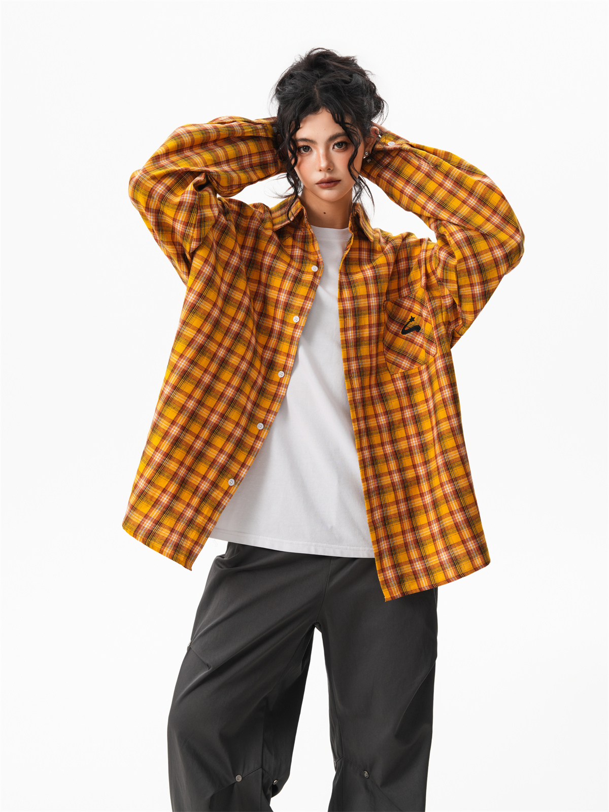 秋季多巴胺黃色格子襯衫女寬鬆休閒慵懶風百搭襯衣外套