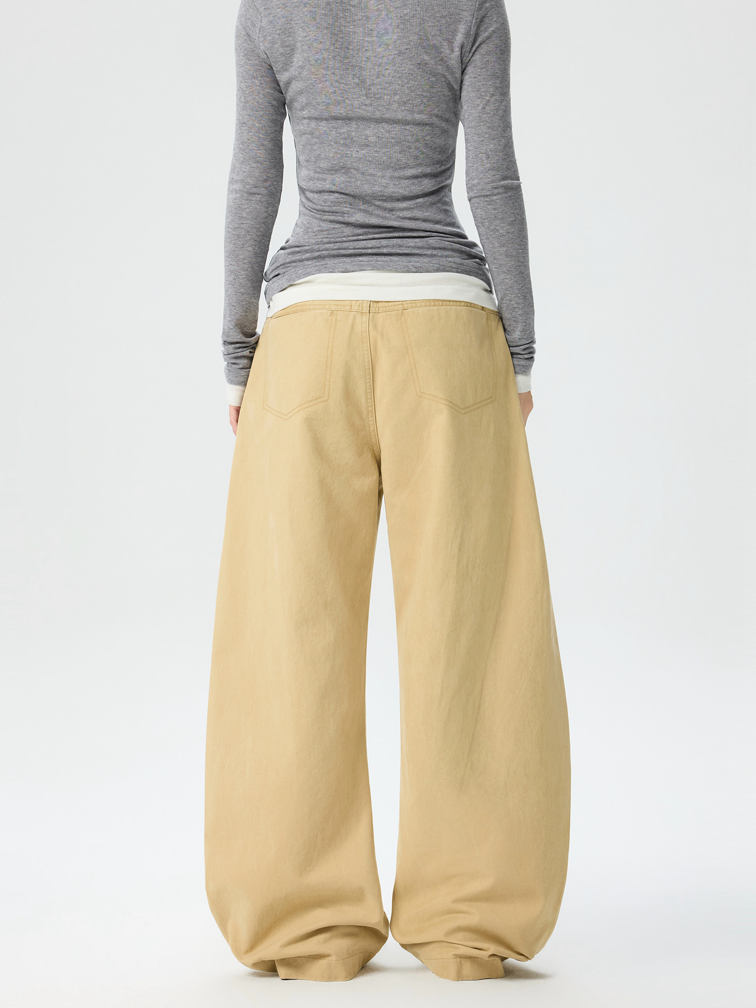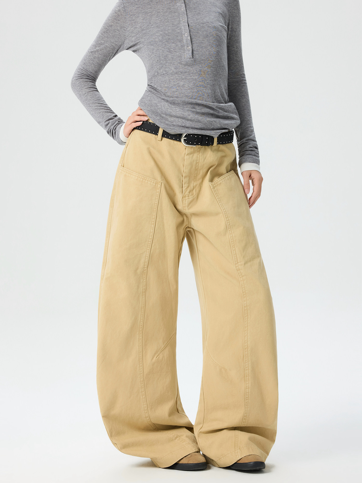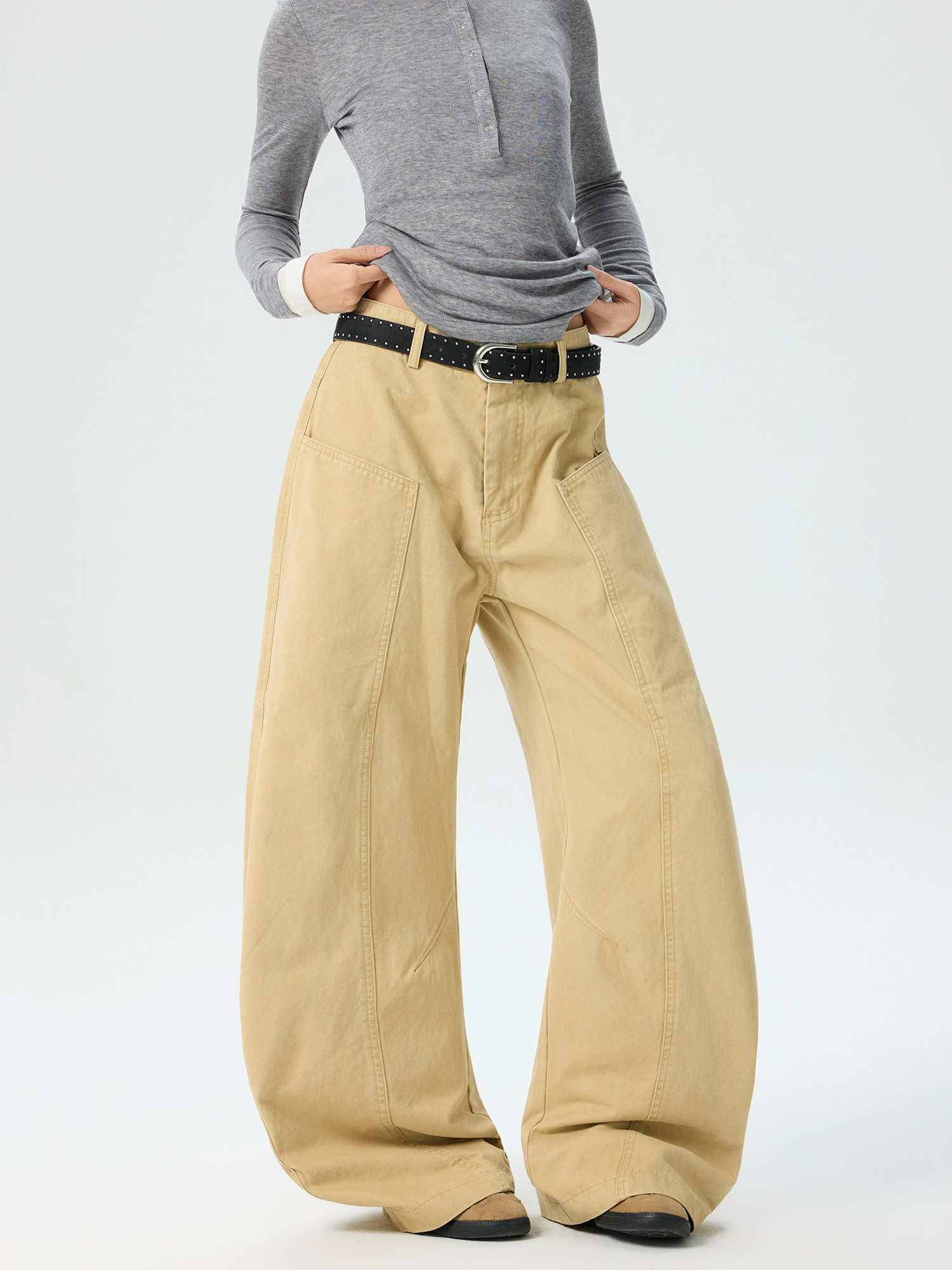 美式復古解構設計感廓形彎刀褲女寬鬆闊腿潮牌工裝褲子