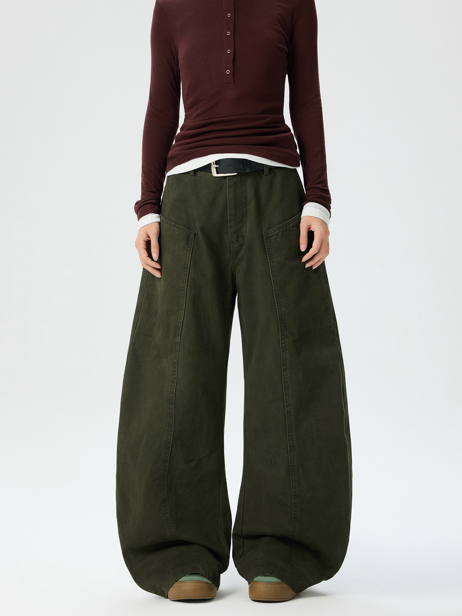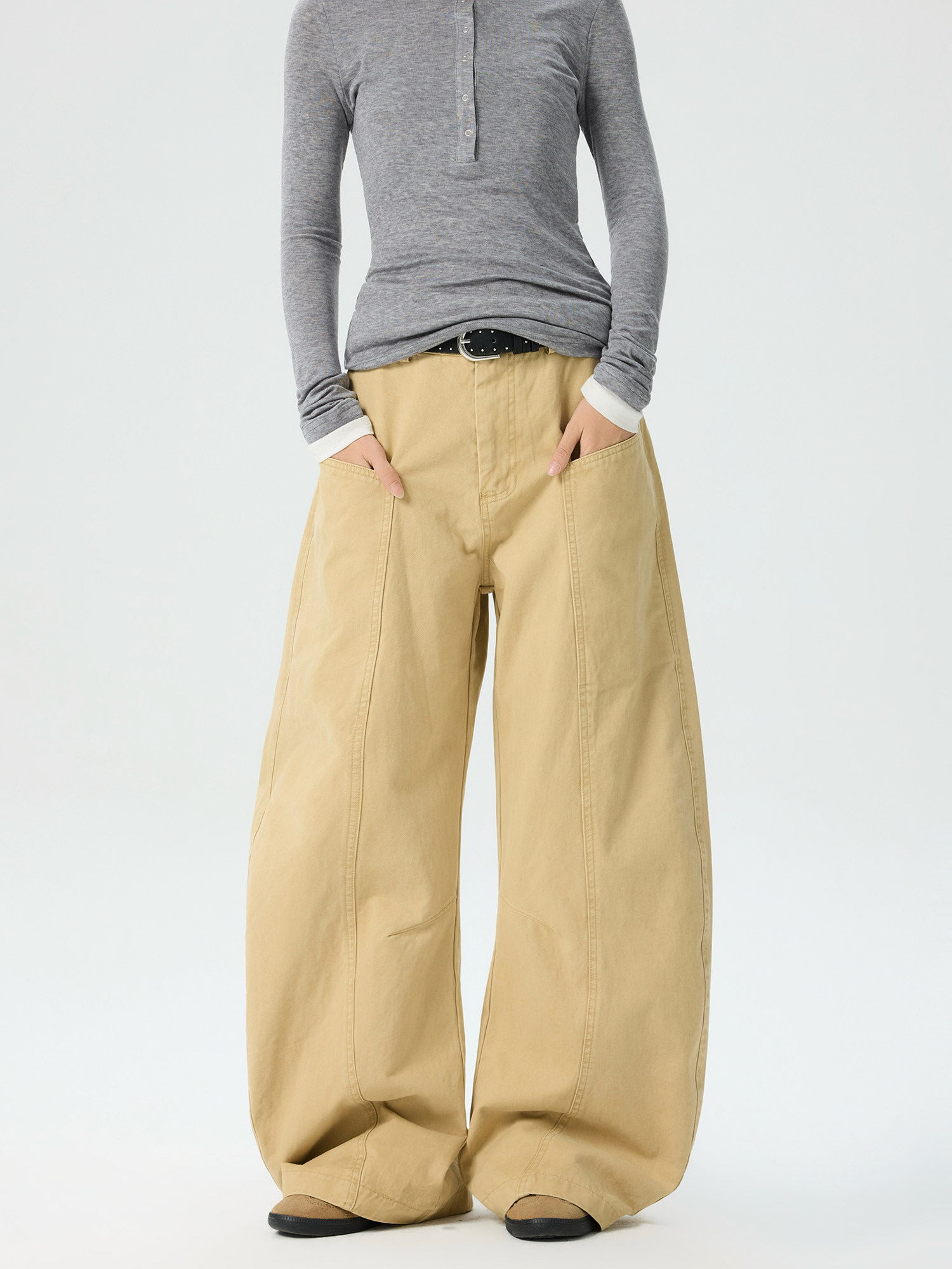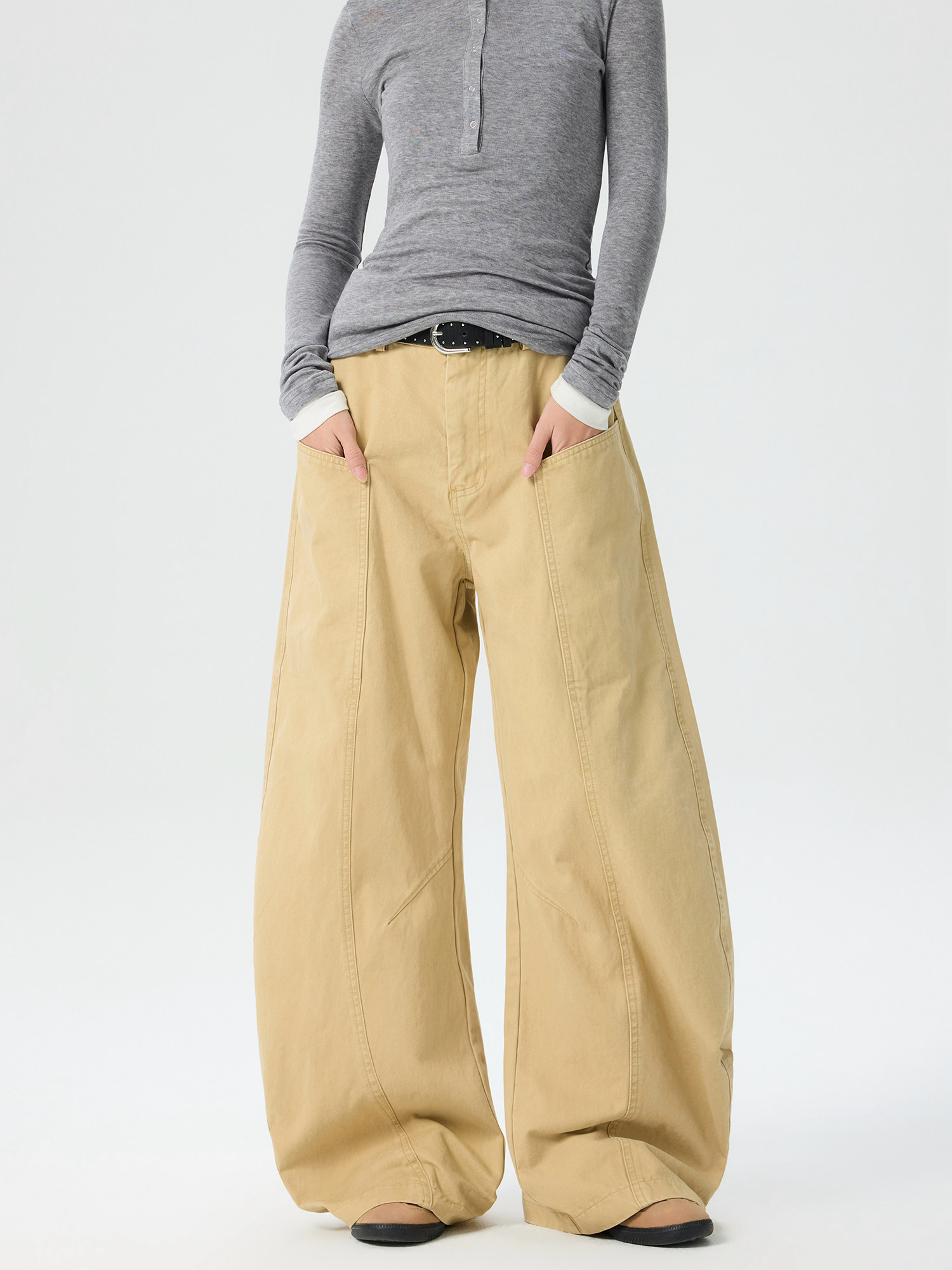 美式復古解構設計感廓形彎刀褲女寬鬆闊腿潮牌工裝褲子