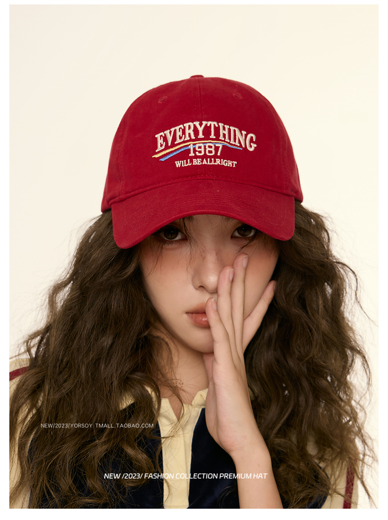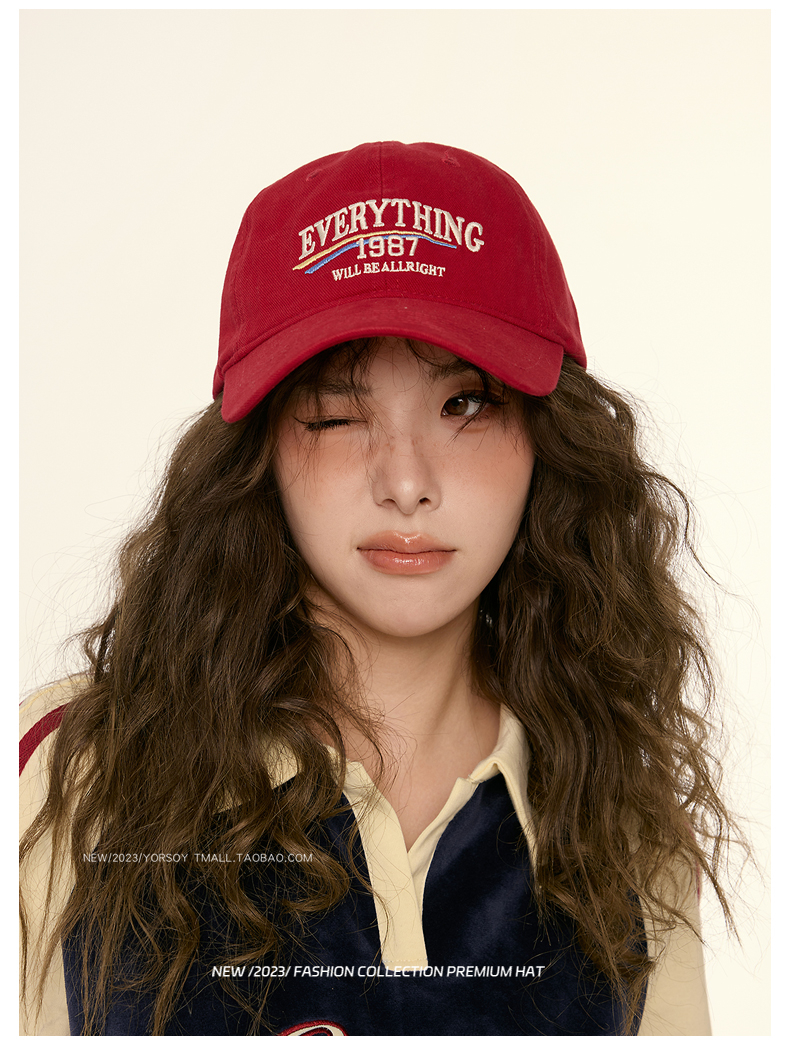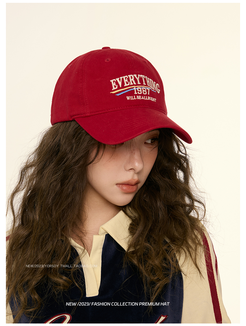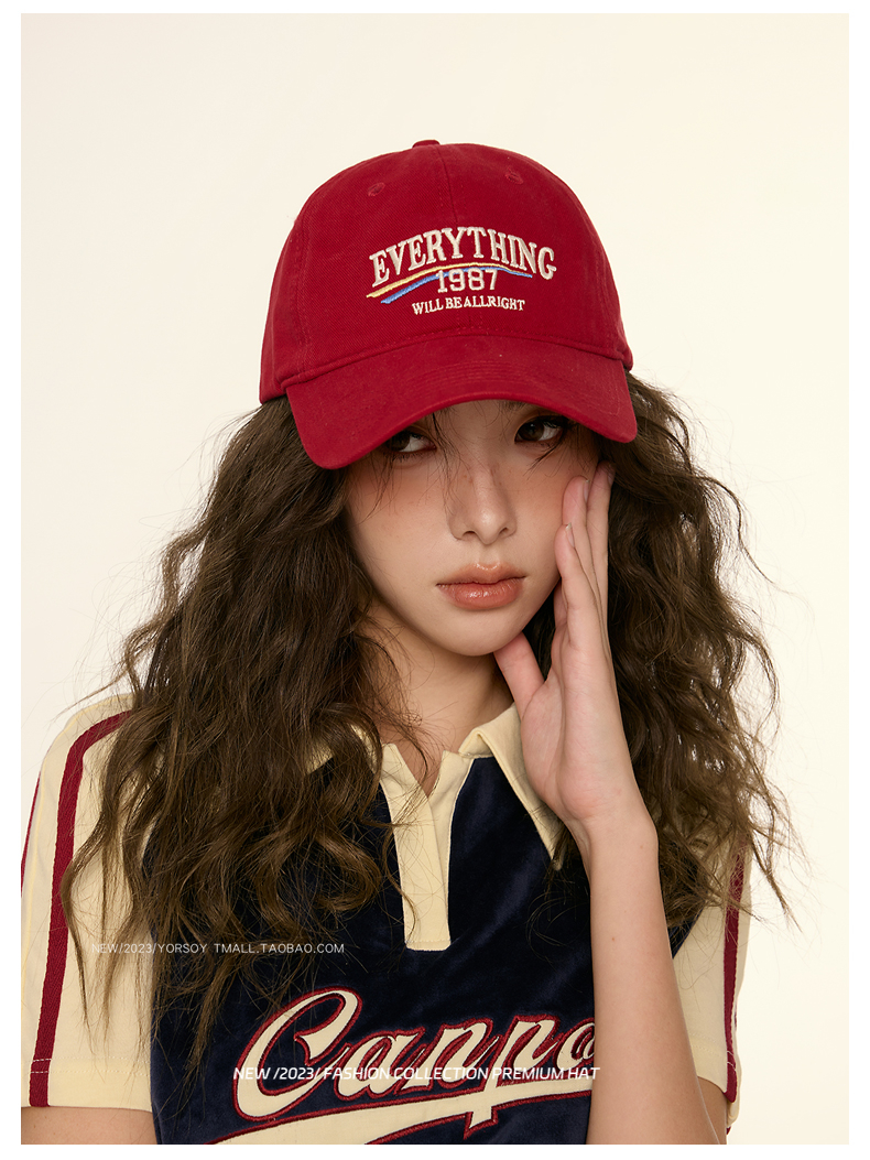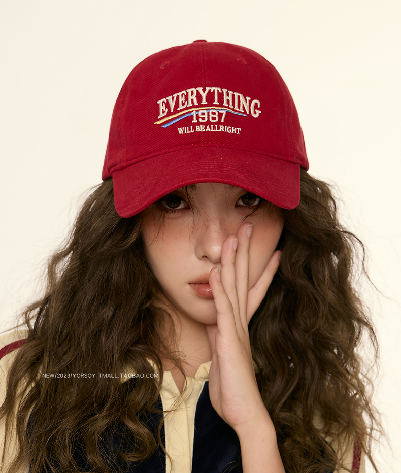 美式復古顯白酒紅色鴨舌帽子女顯臉小街頭休閒寬彎簷深頂棒球帽
