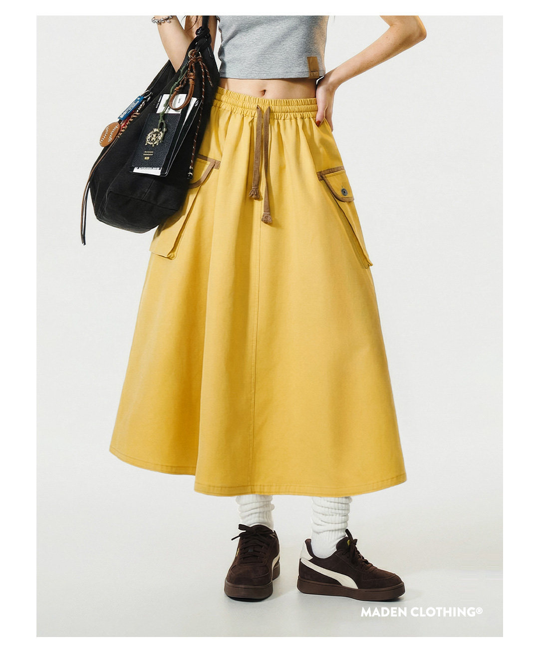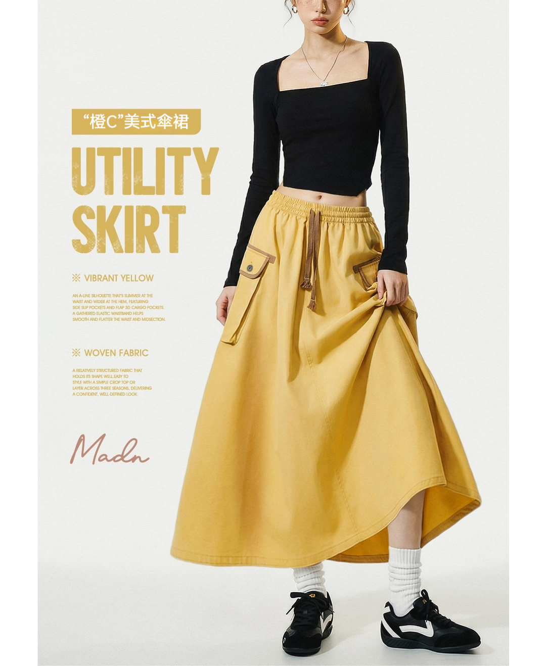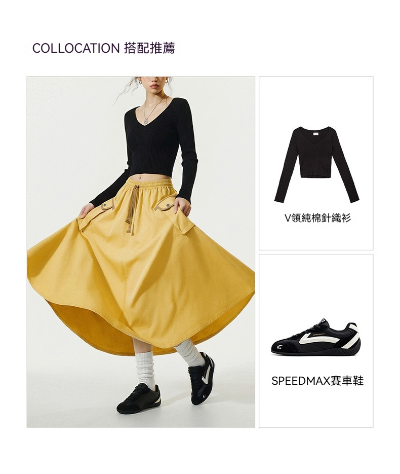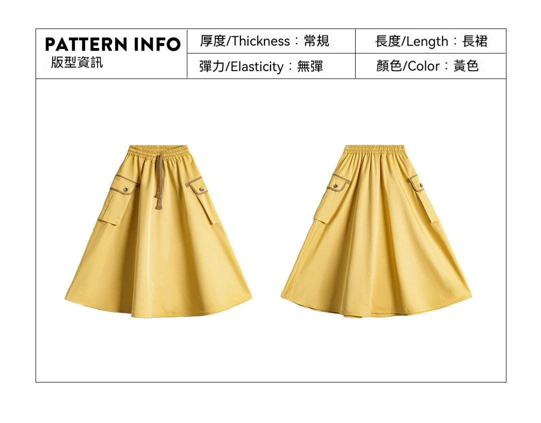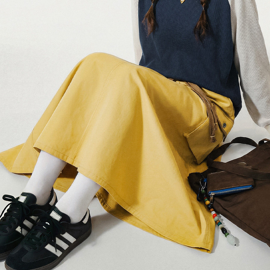 美式復古鬆緊腰抽繩大裙擺半身長裙工裝A字傘裙子女士春