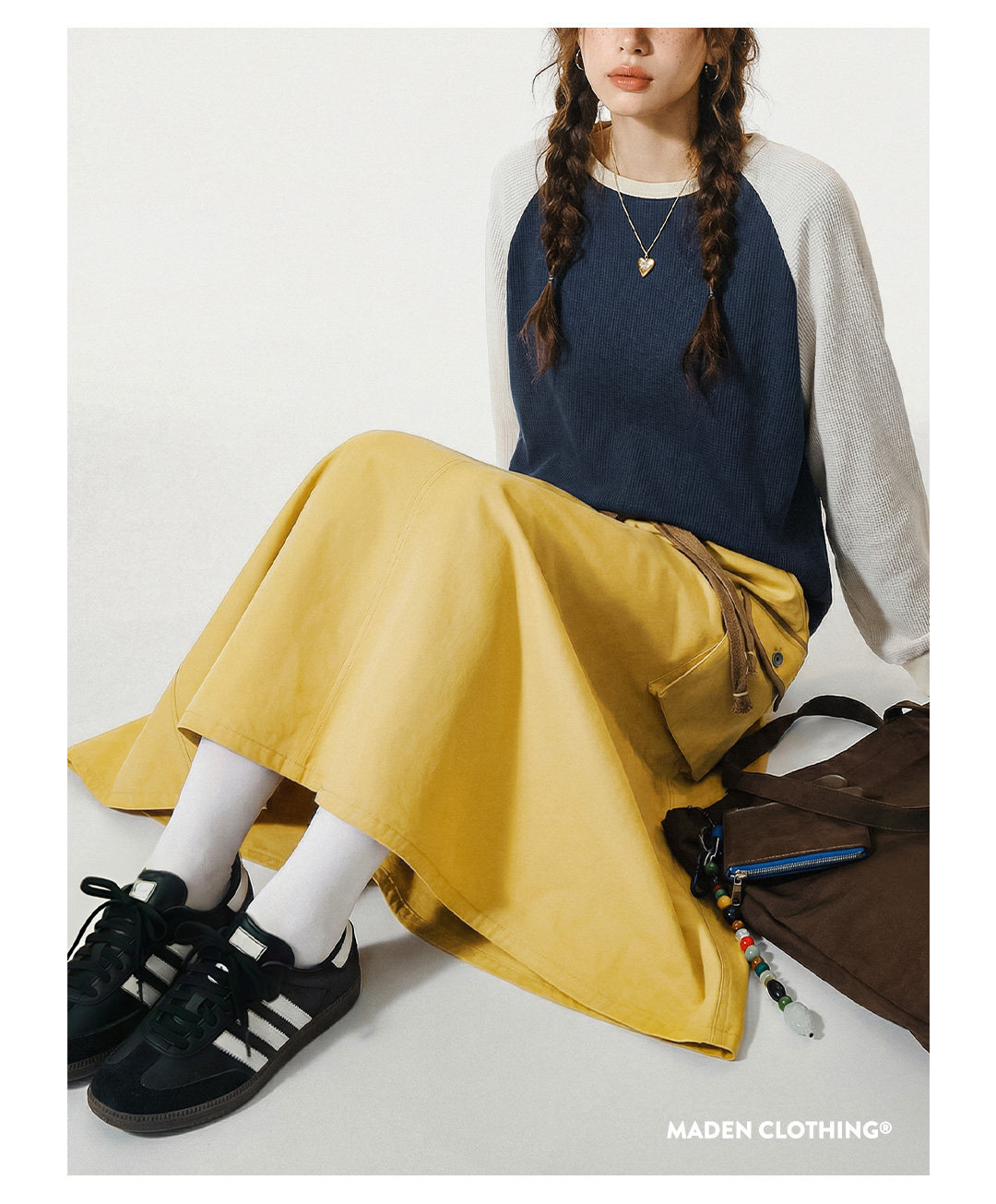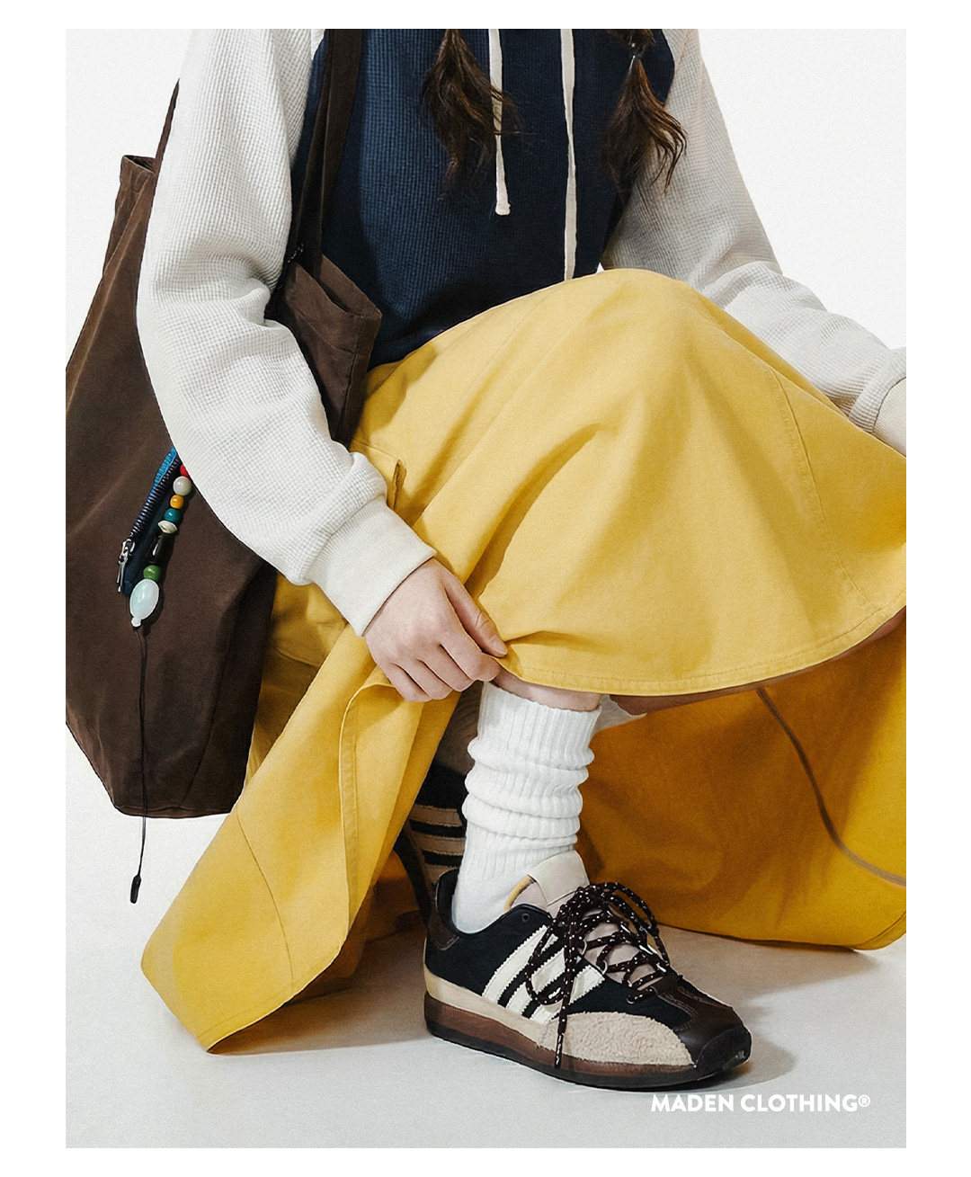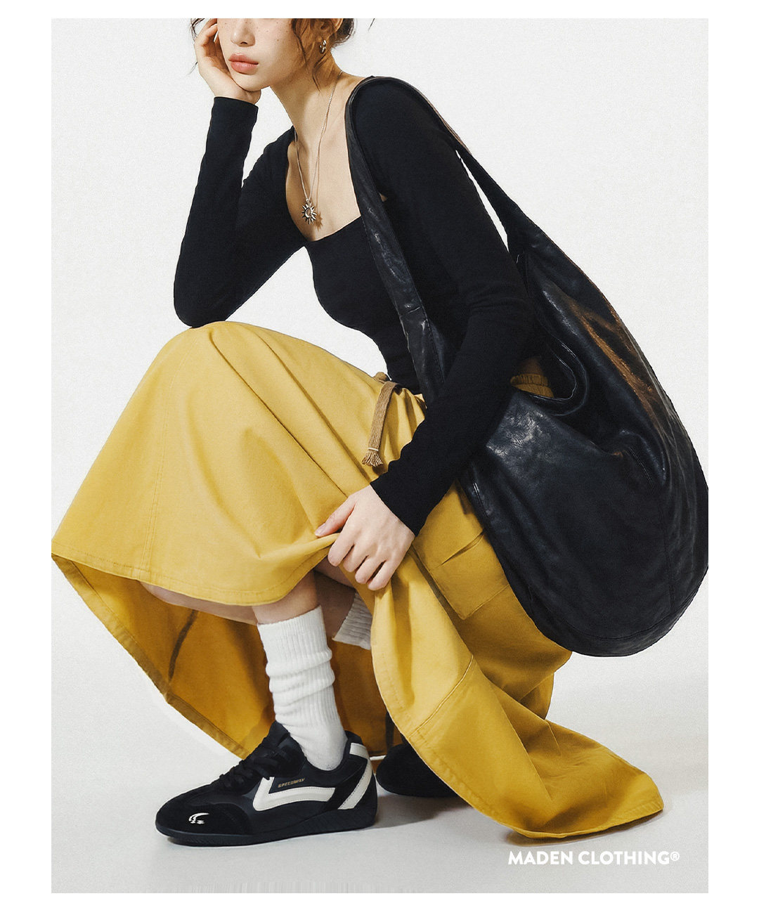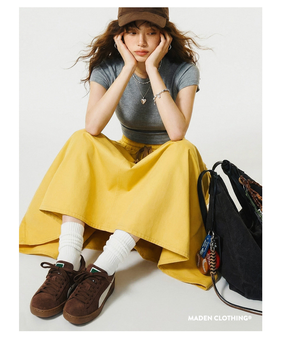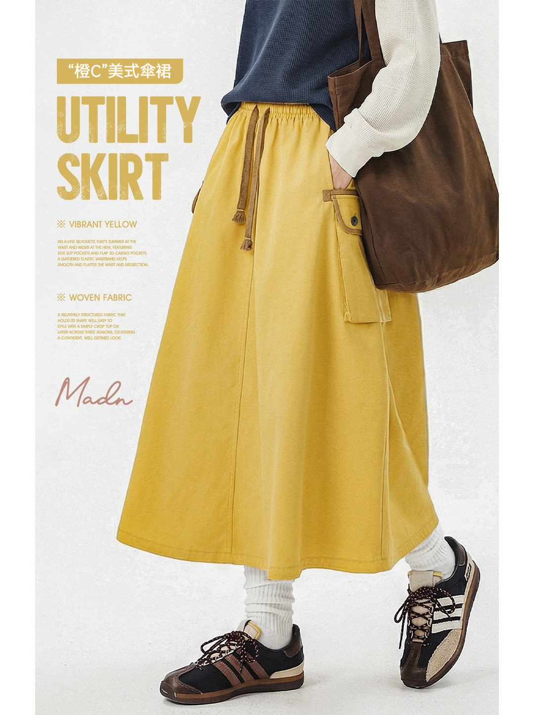 美式復古鬆緊腰抽繩大裙擺半身長裙工裝A字傘裙子女士春