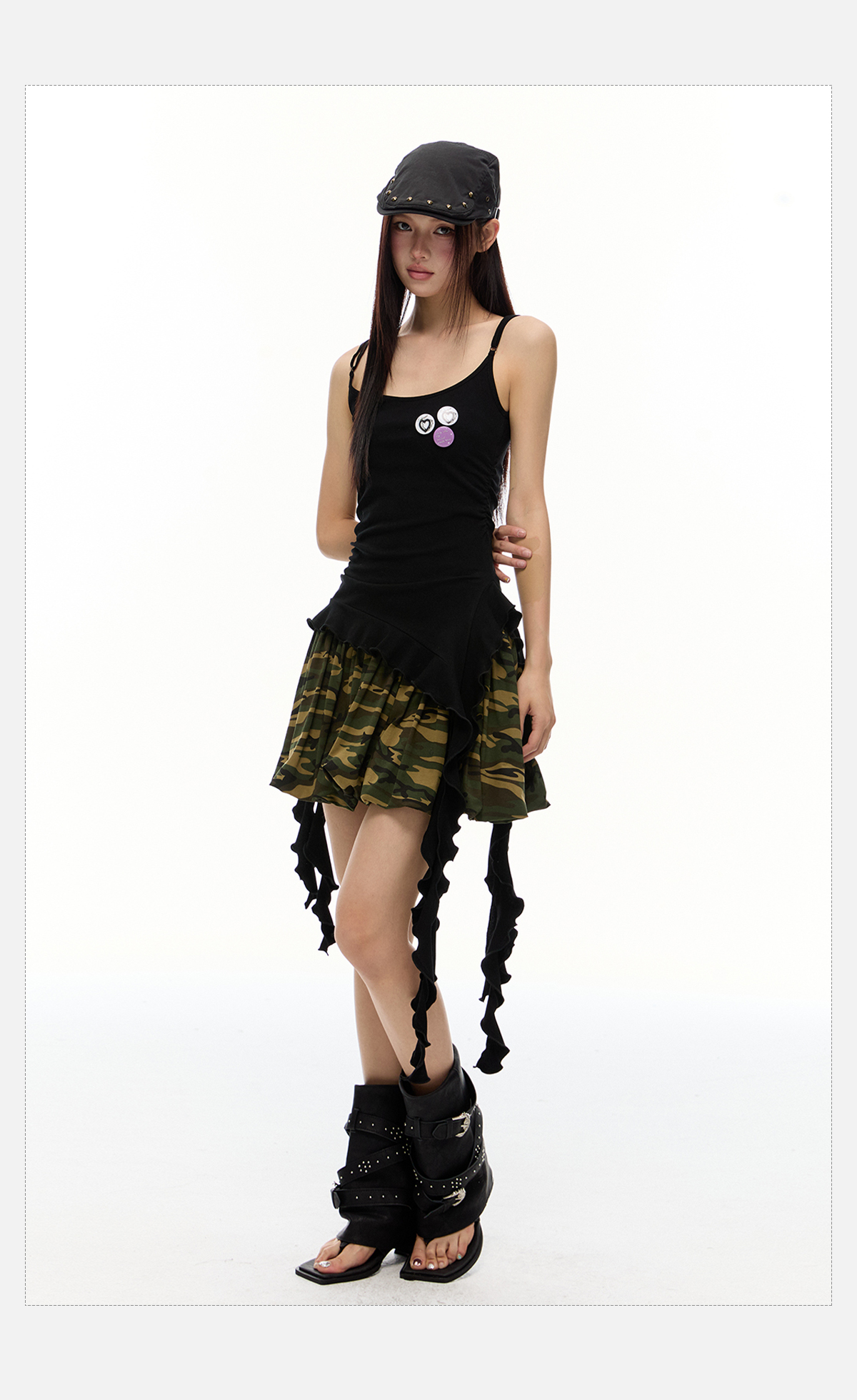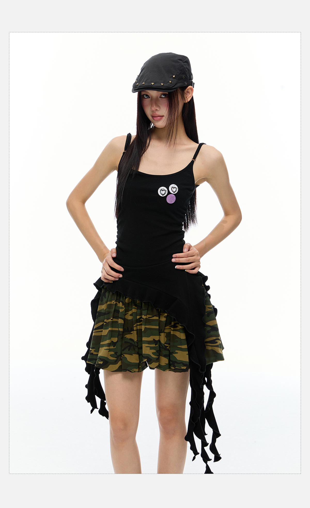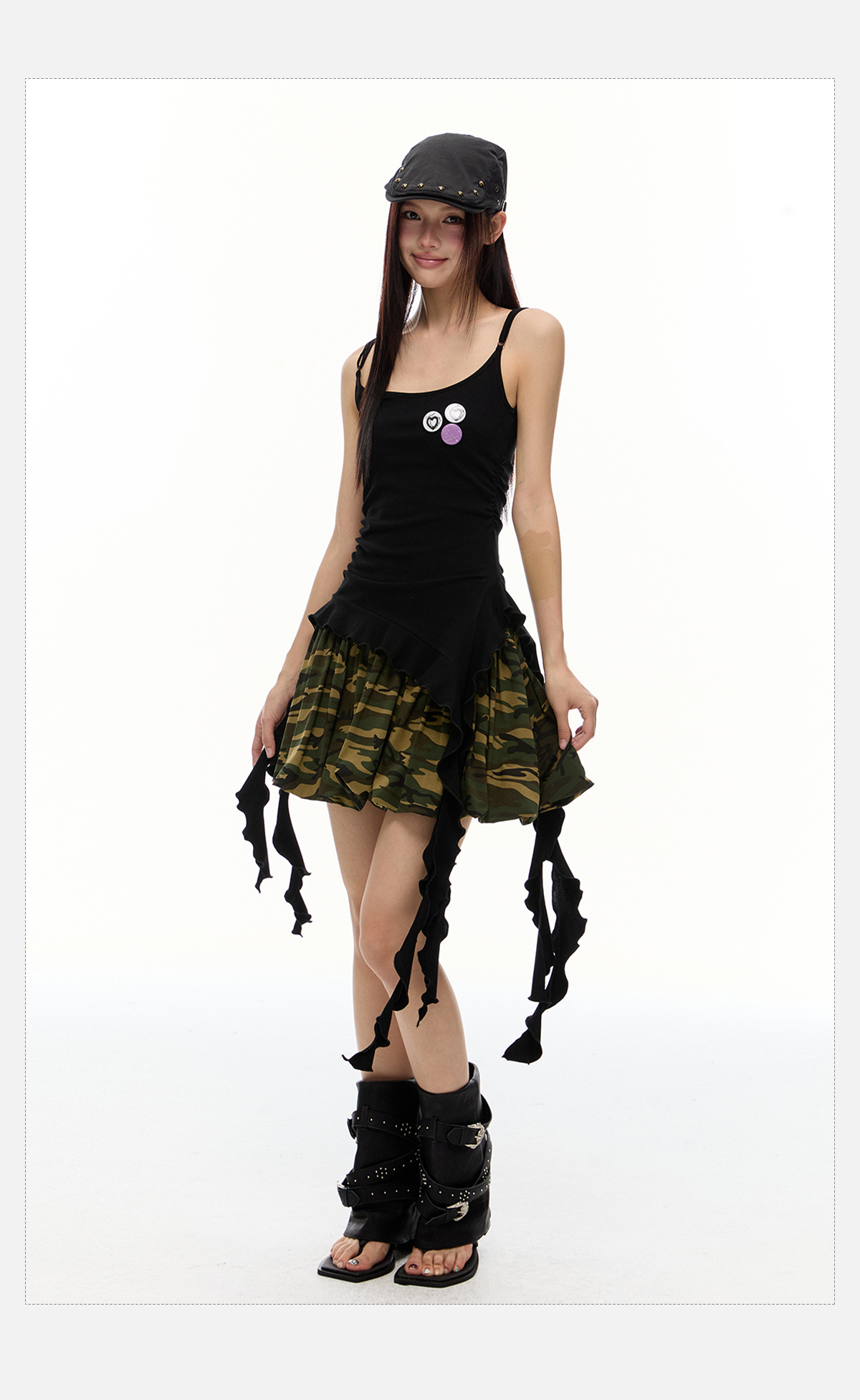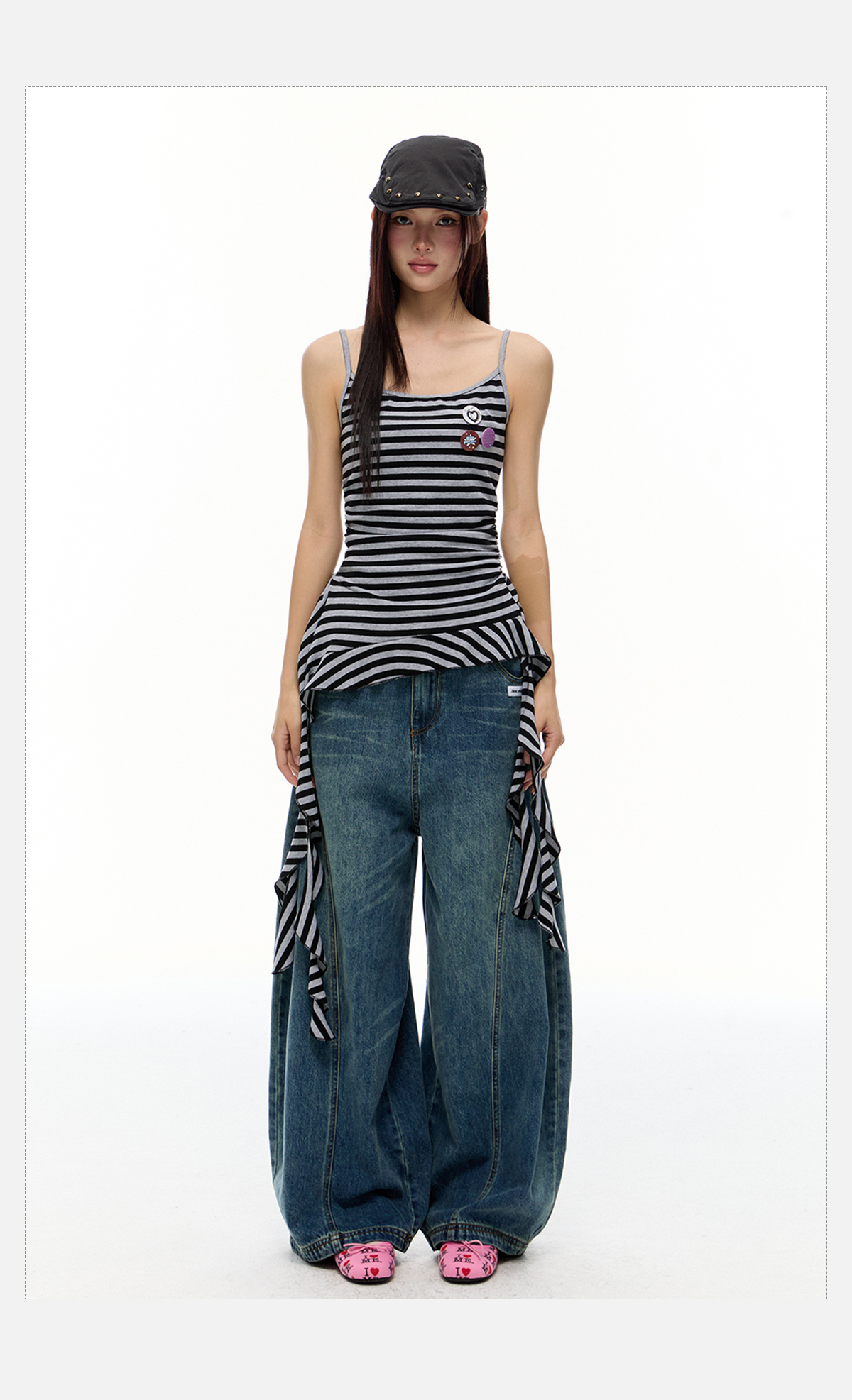 美式復古黑色流蘇飄帶條紋吊帶背心夏季新款辣妹修身顯瘦上衣