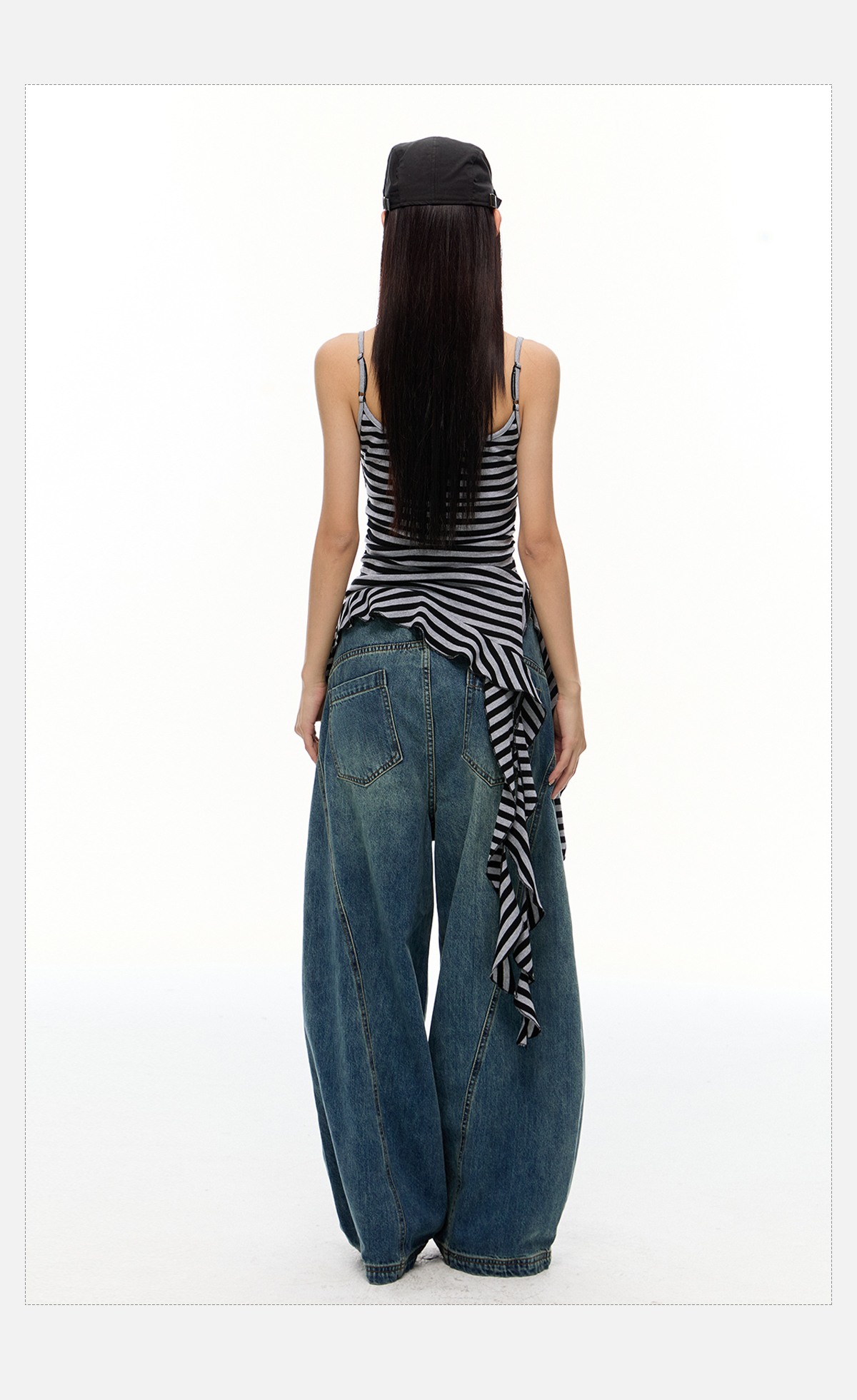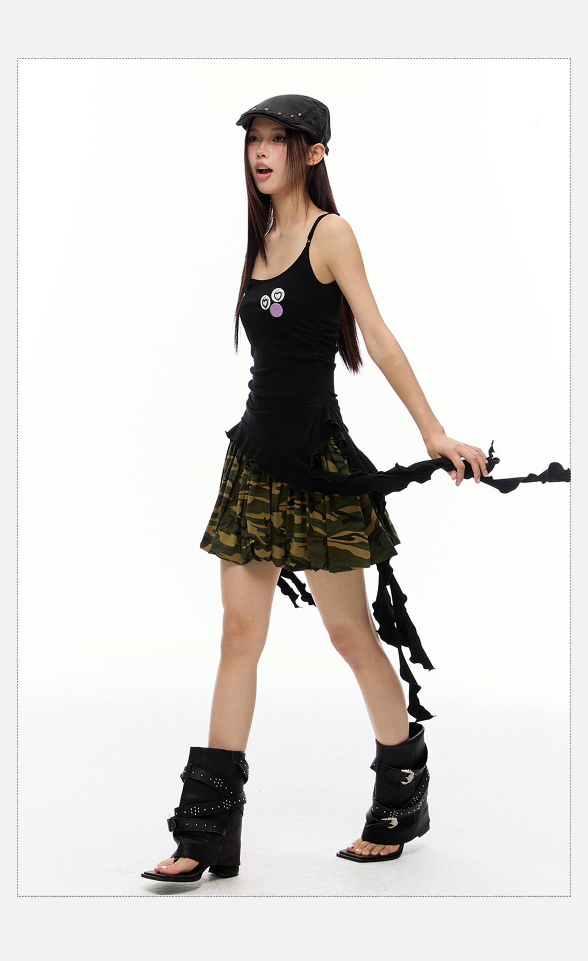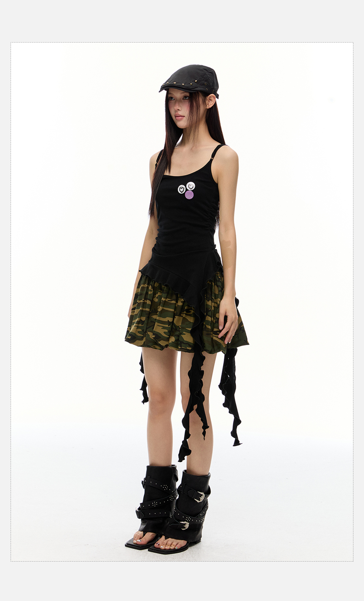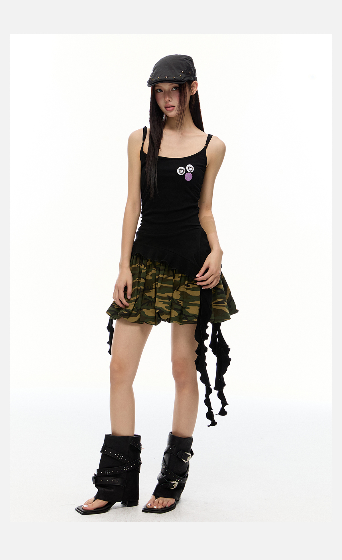美式復古黑色流蘇飄帶條紋吊帶背心夏季新款辣妹修身顯瘦上衣