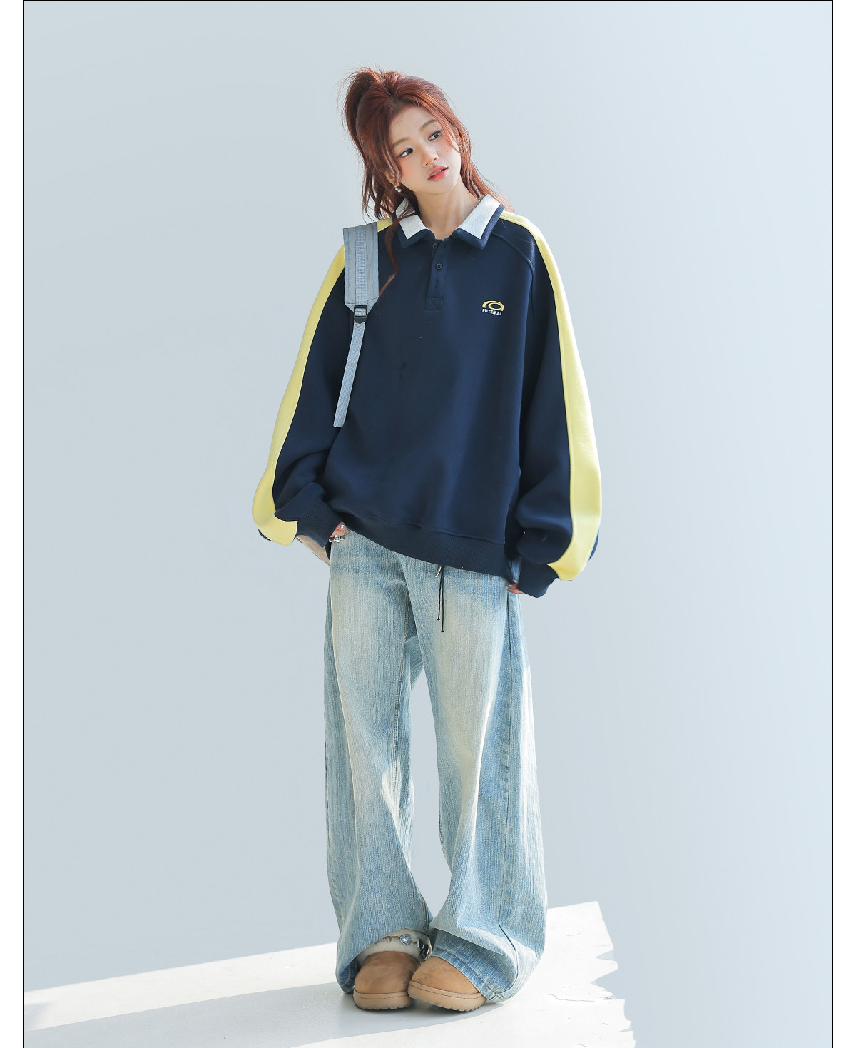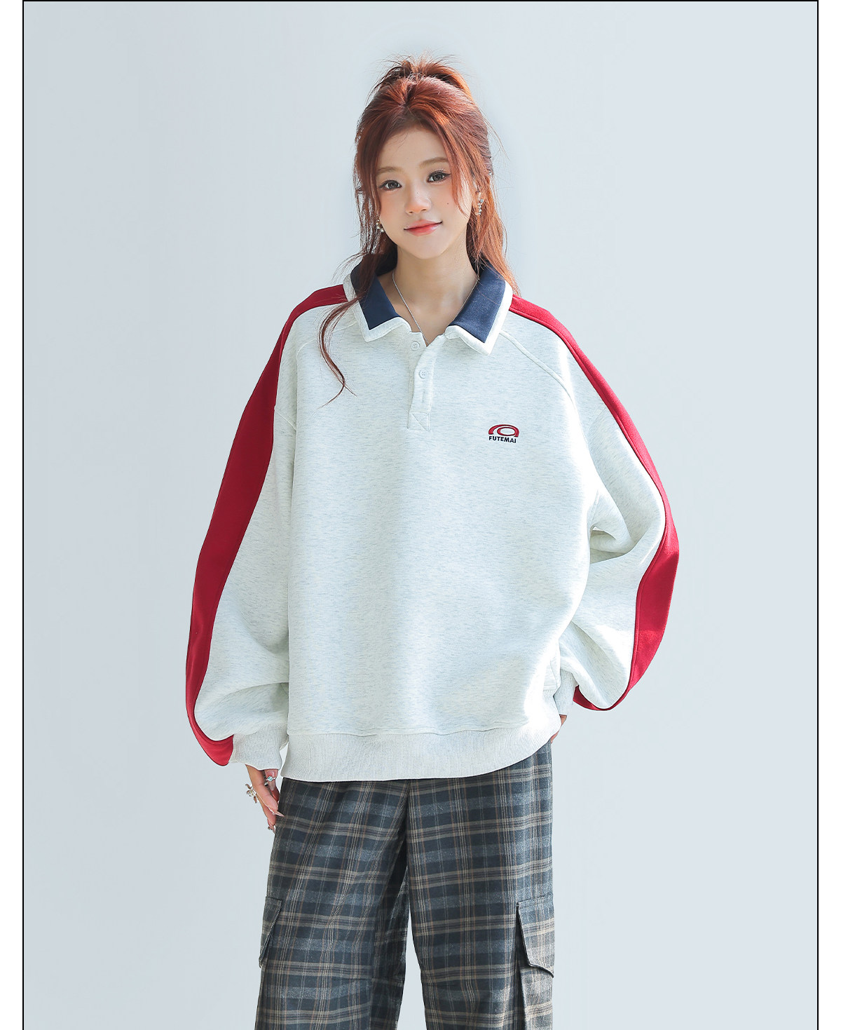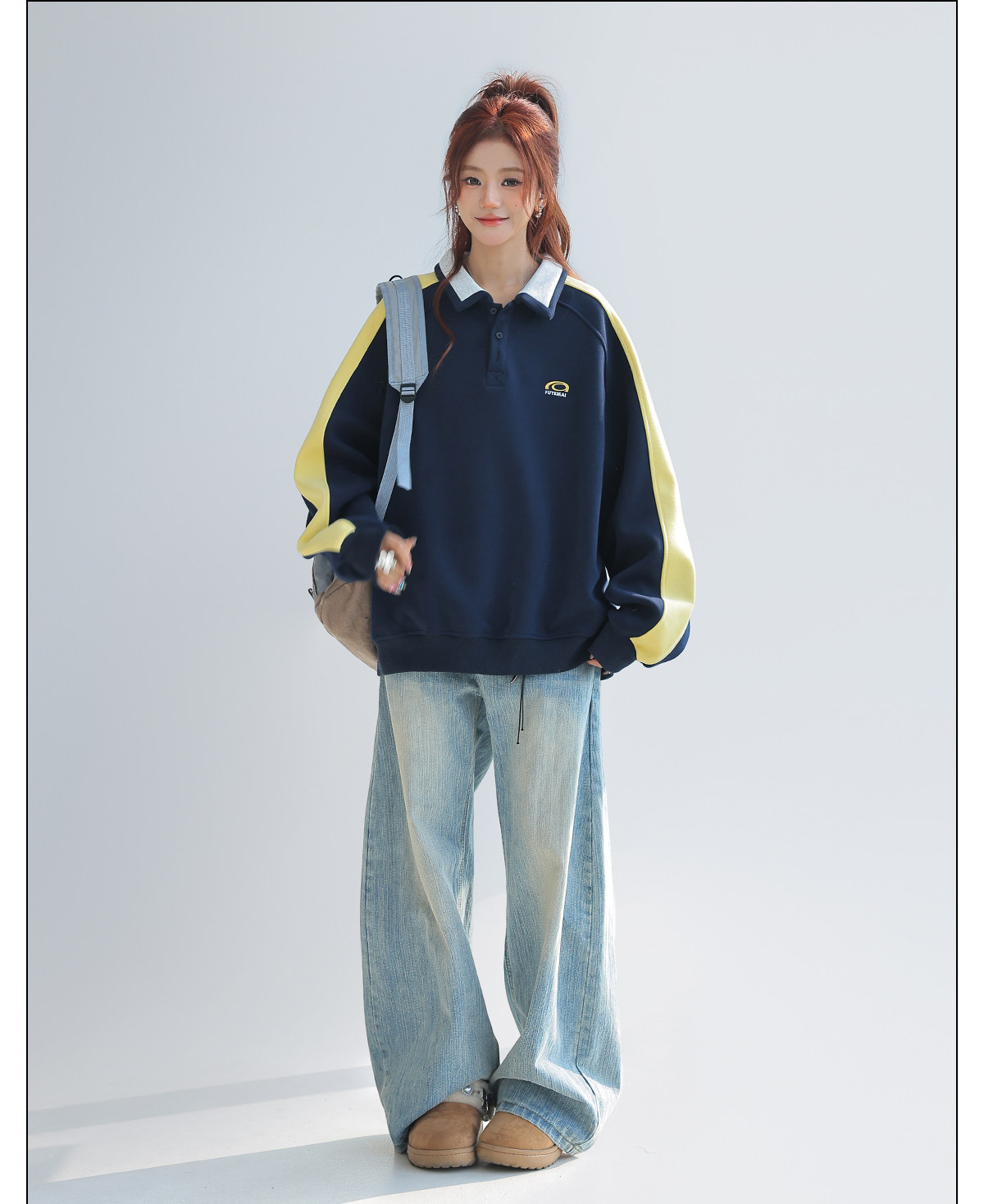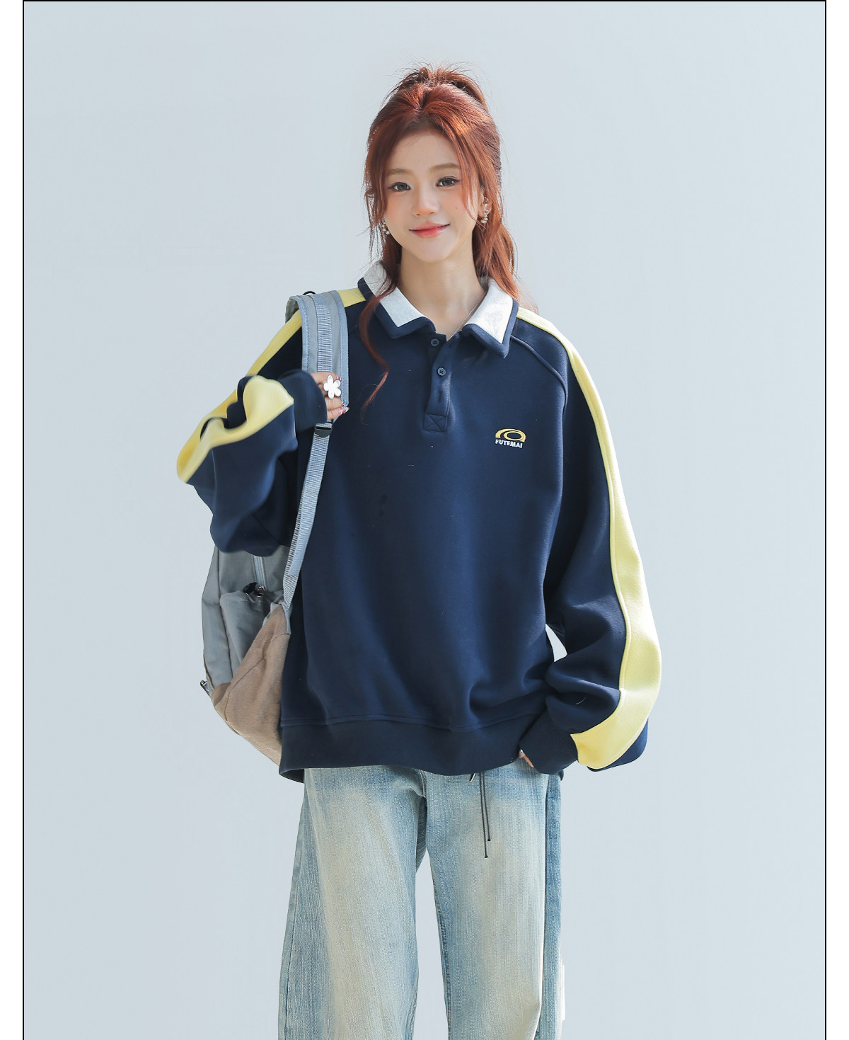 美式慵懶chic拼接翻領衛衣女款新款寬鬆上衣