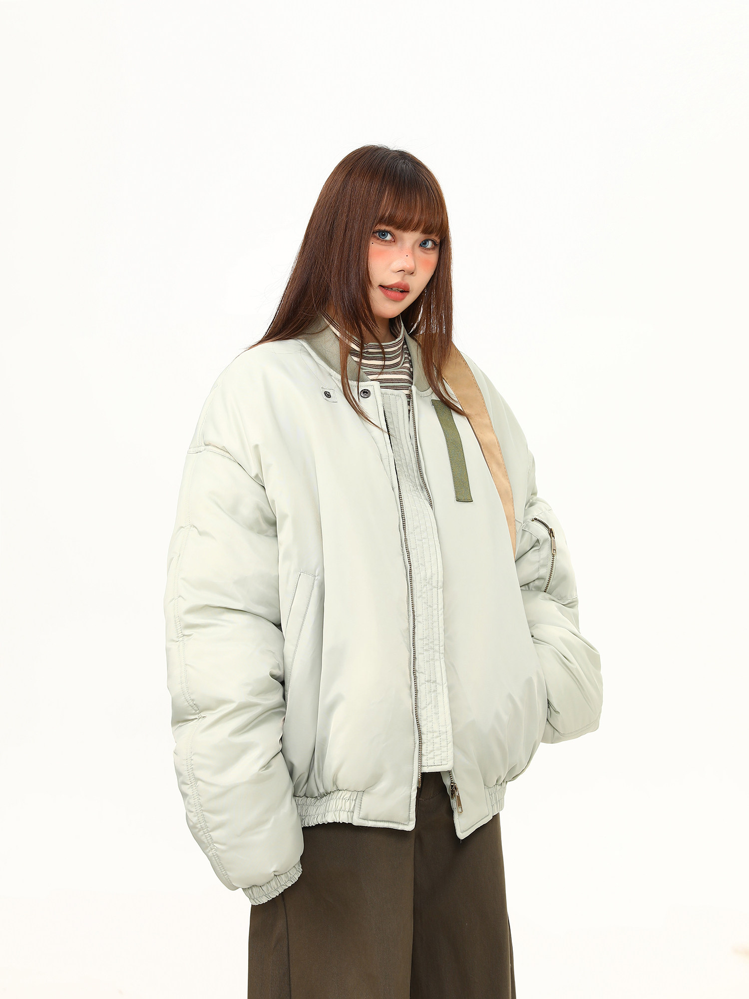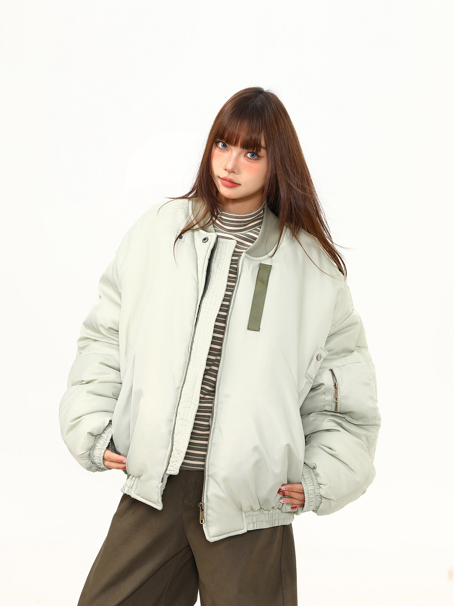 美式街頭加棉飛行員外套女冬季加厚保暖棒球服寬鬆百搭