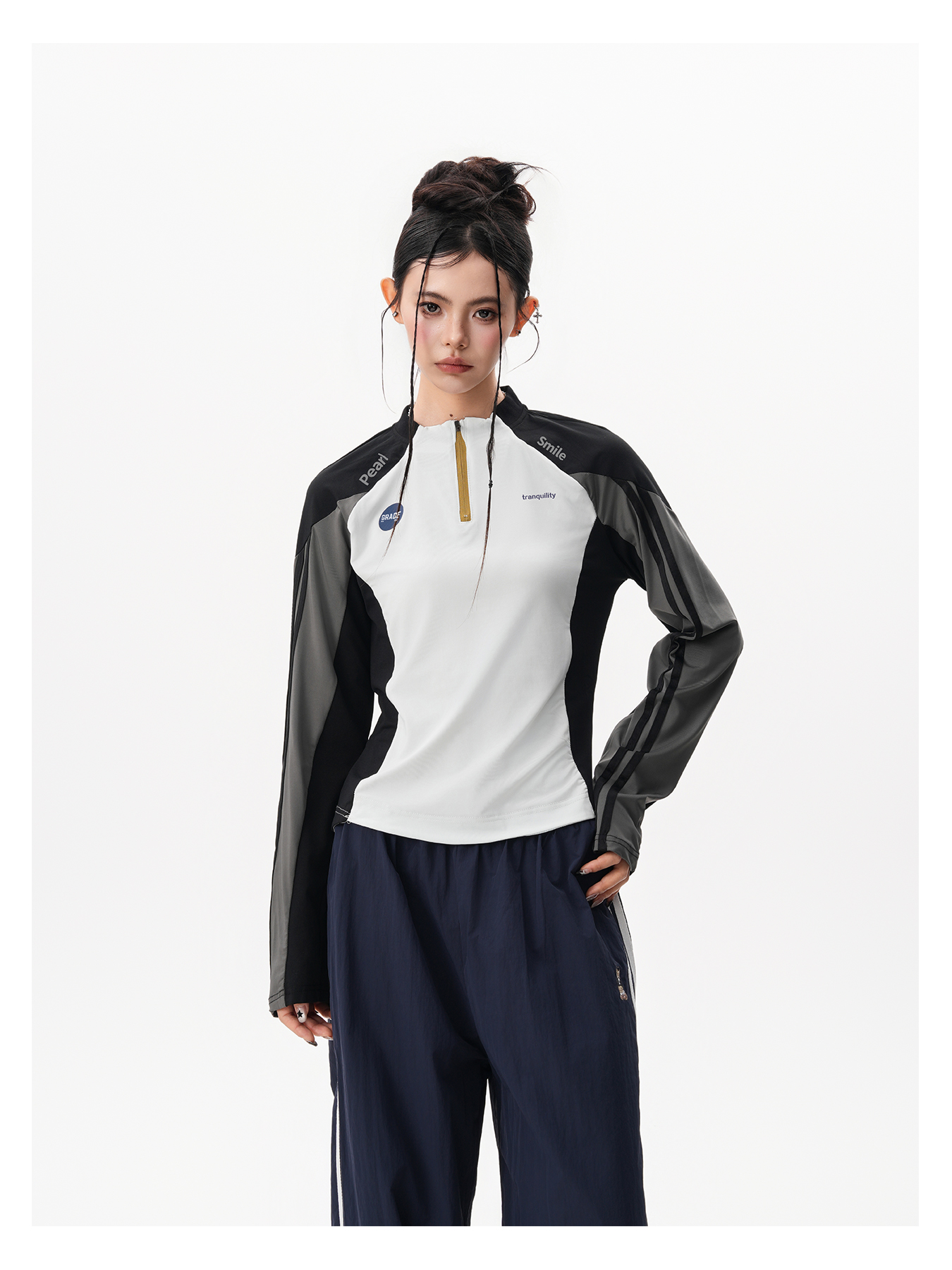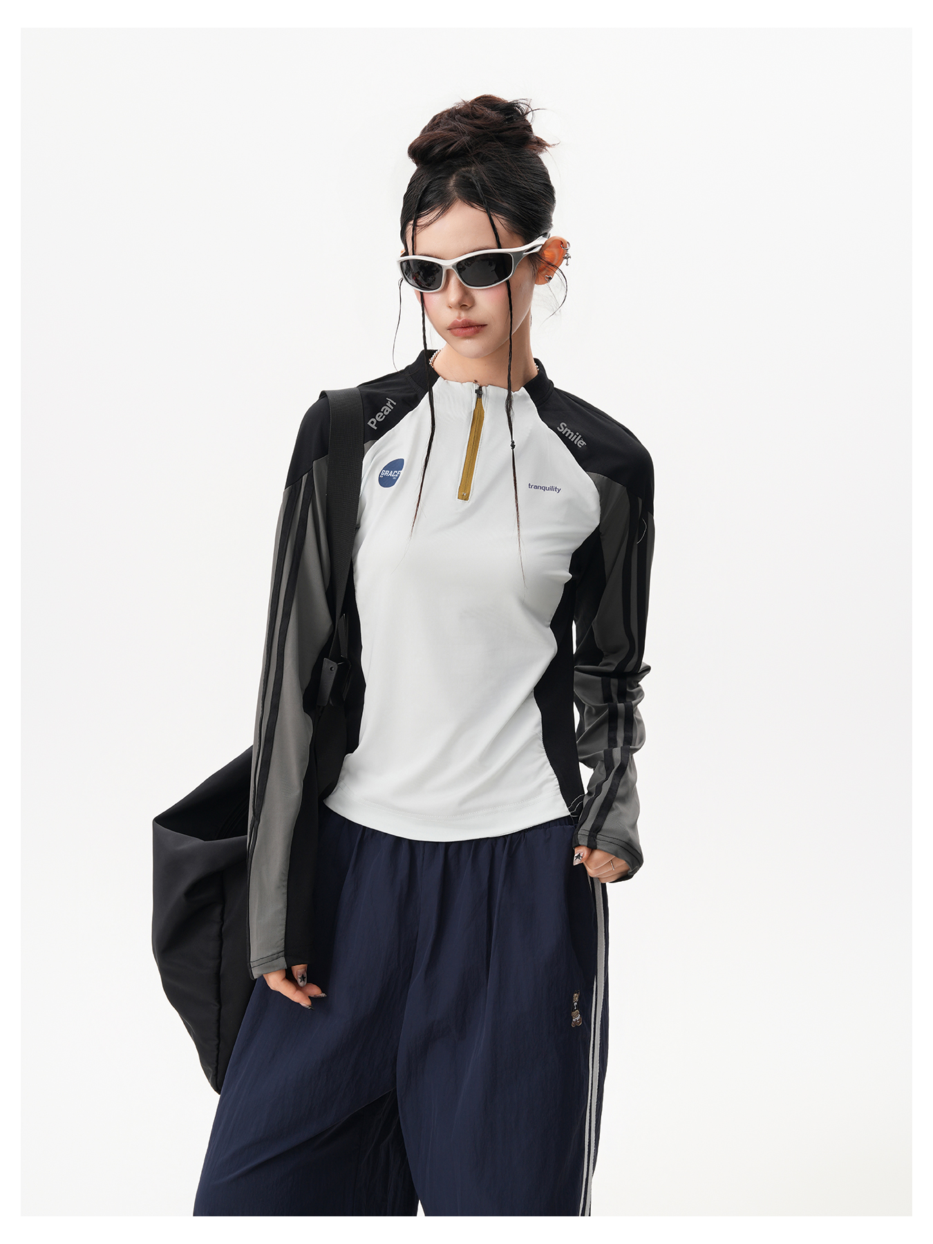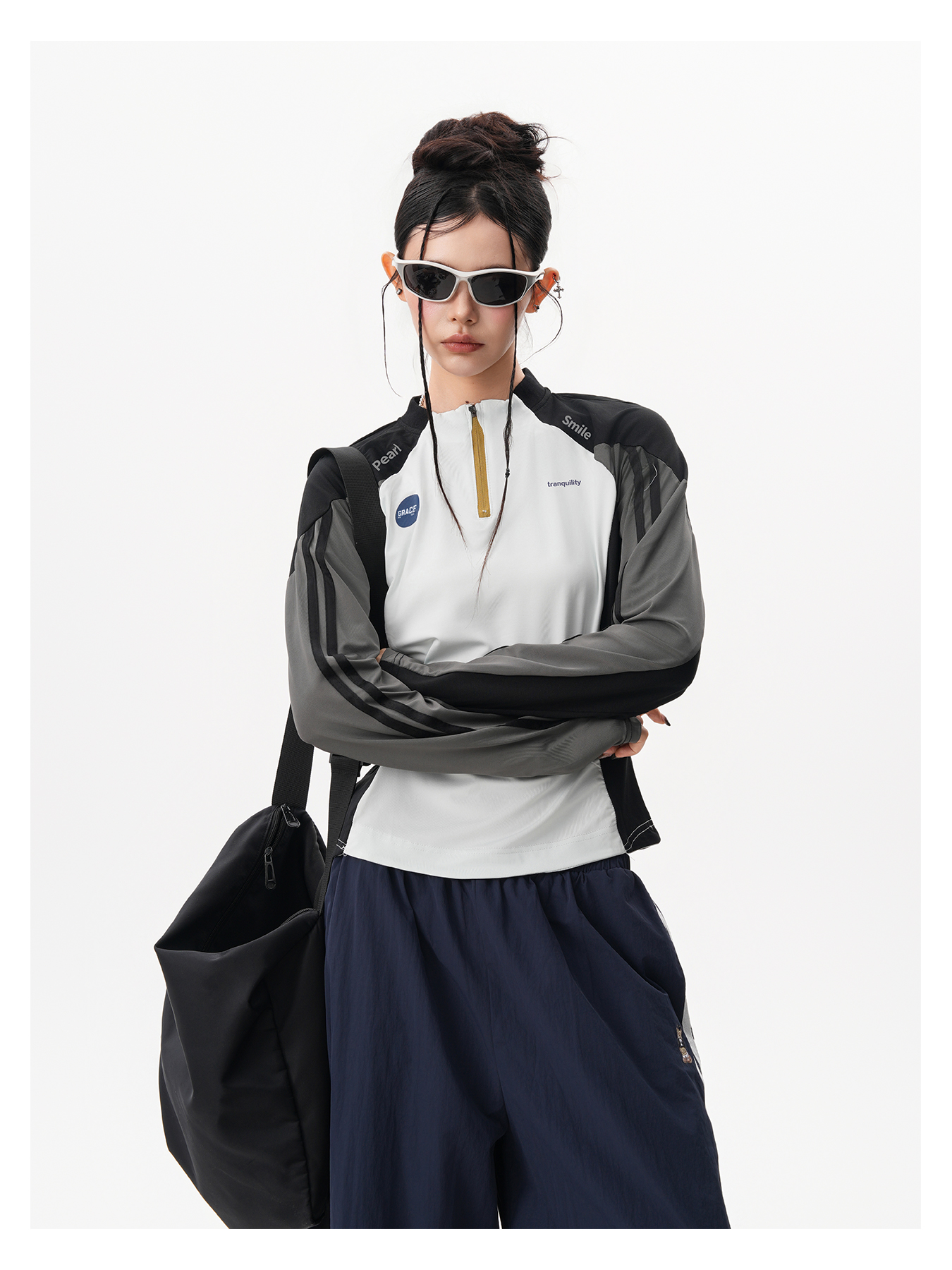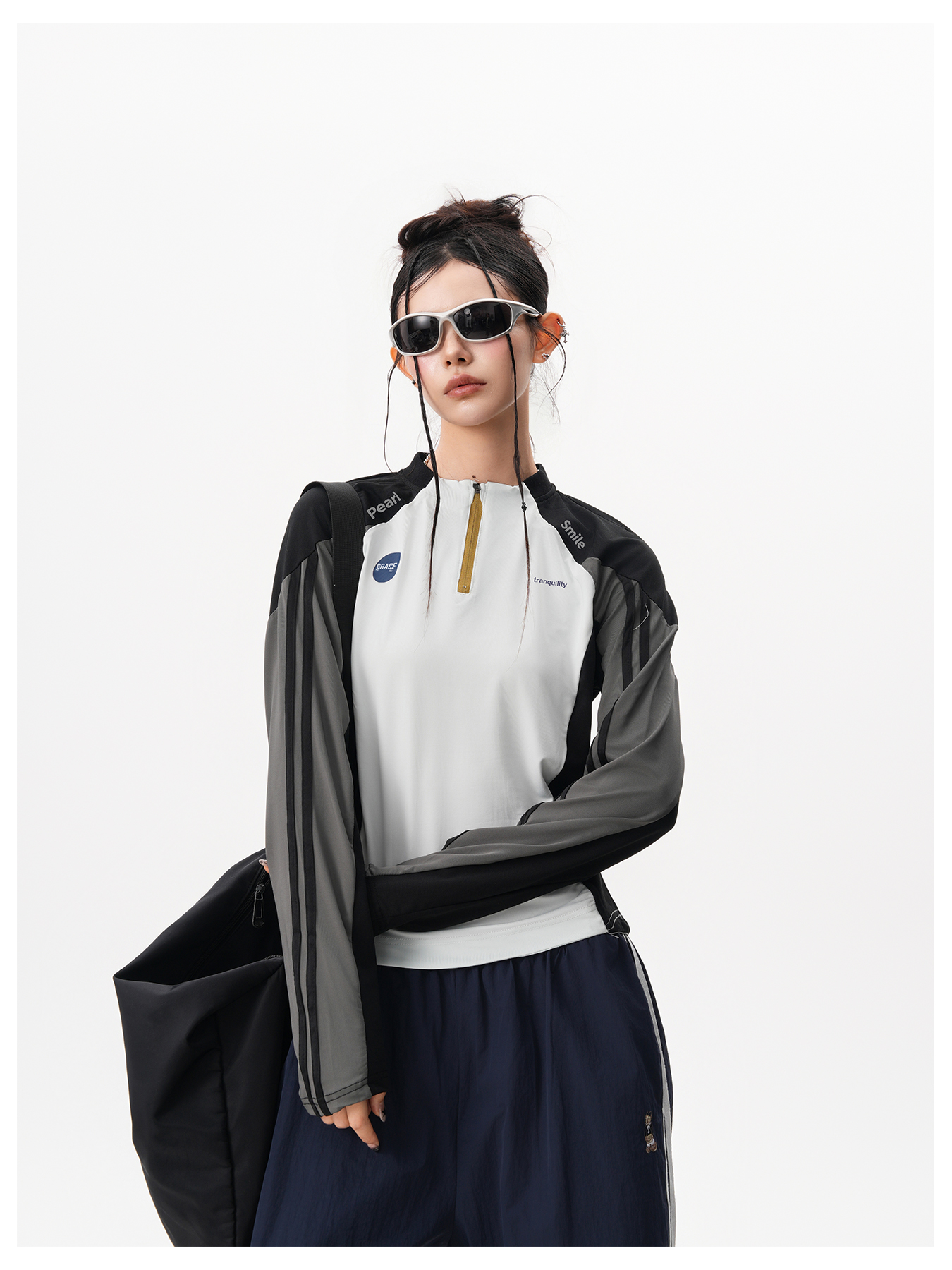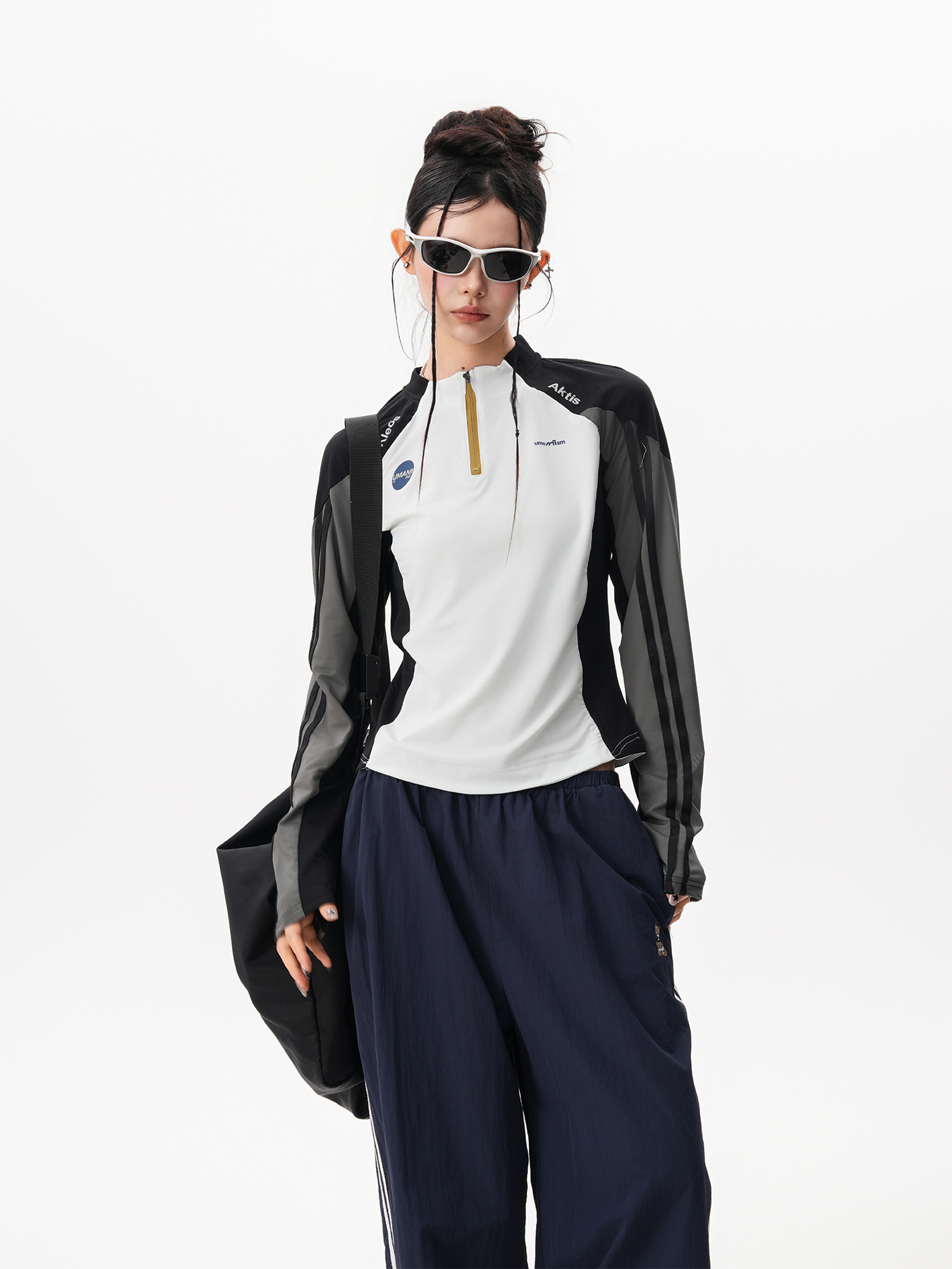 速幹輕薄騎行服女秋季撞色半拉鍊長袖T恤戶外健身訓練運動上衣