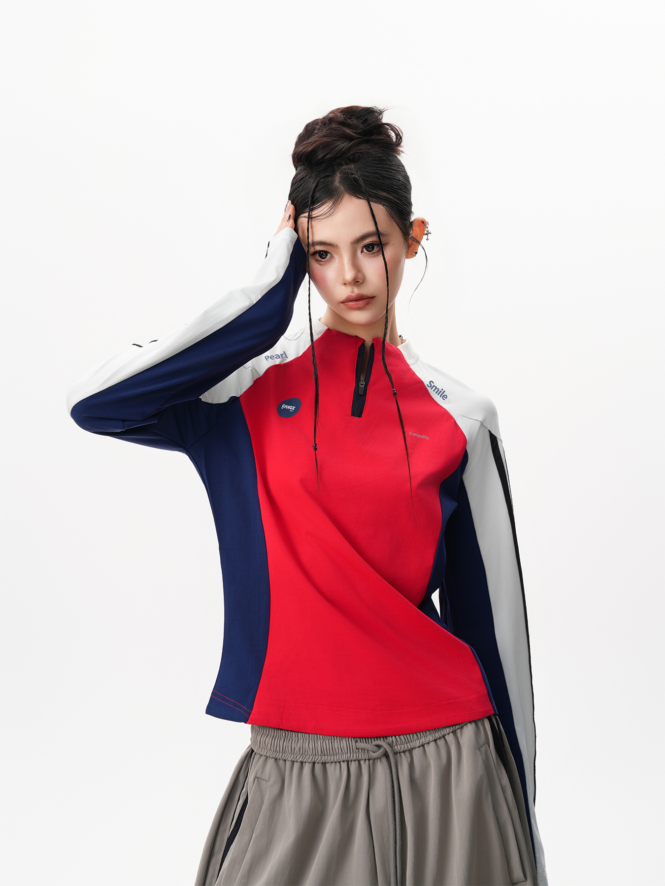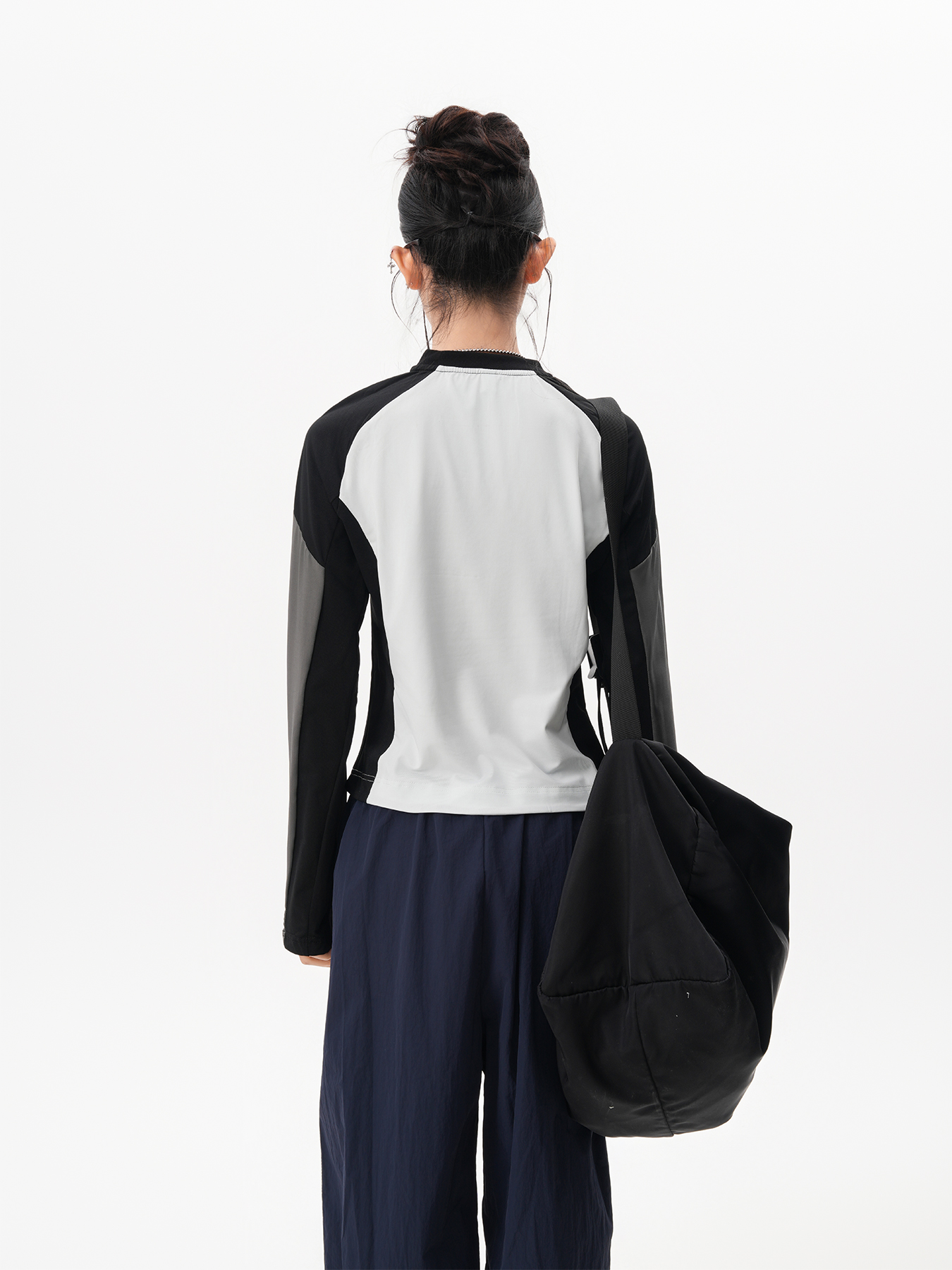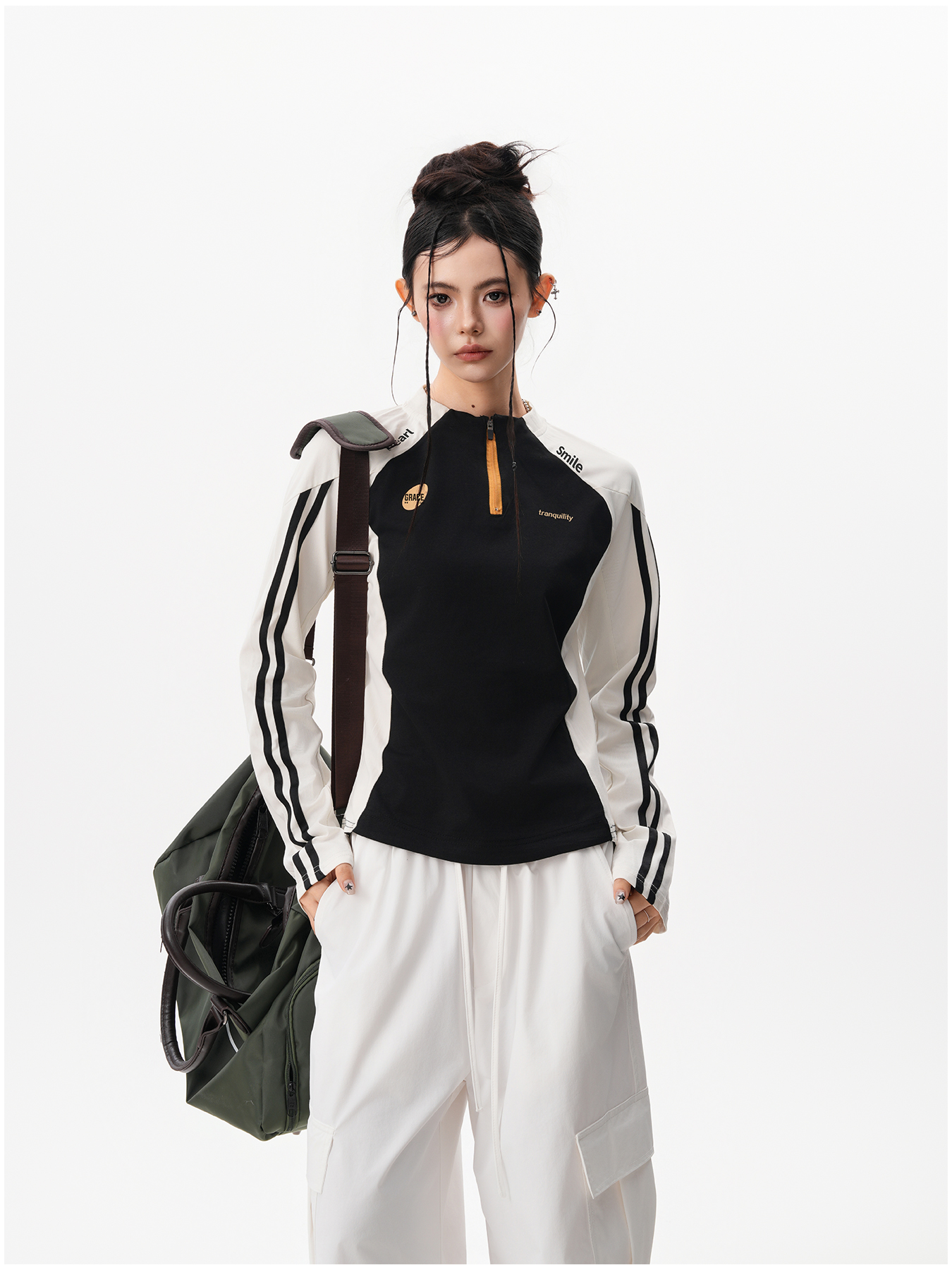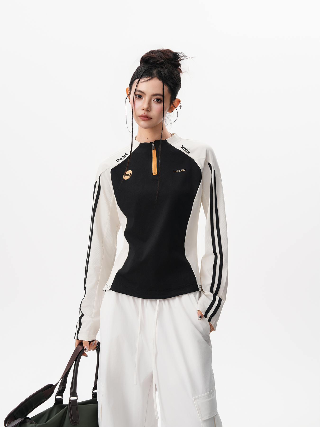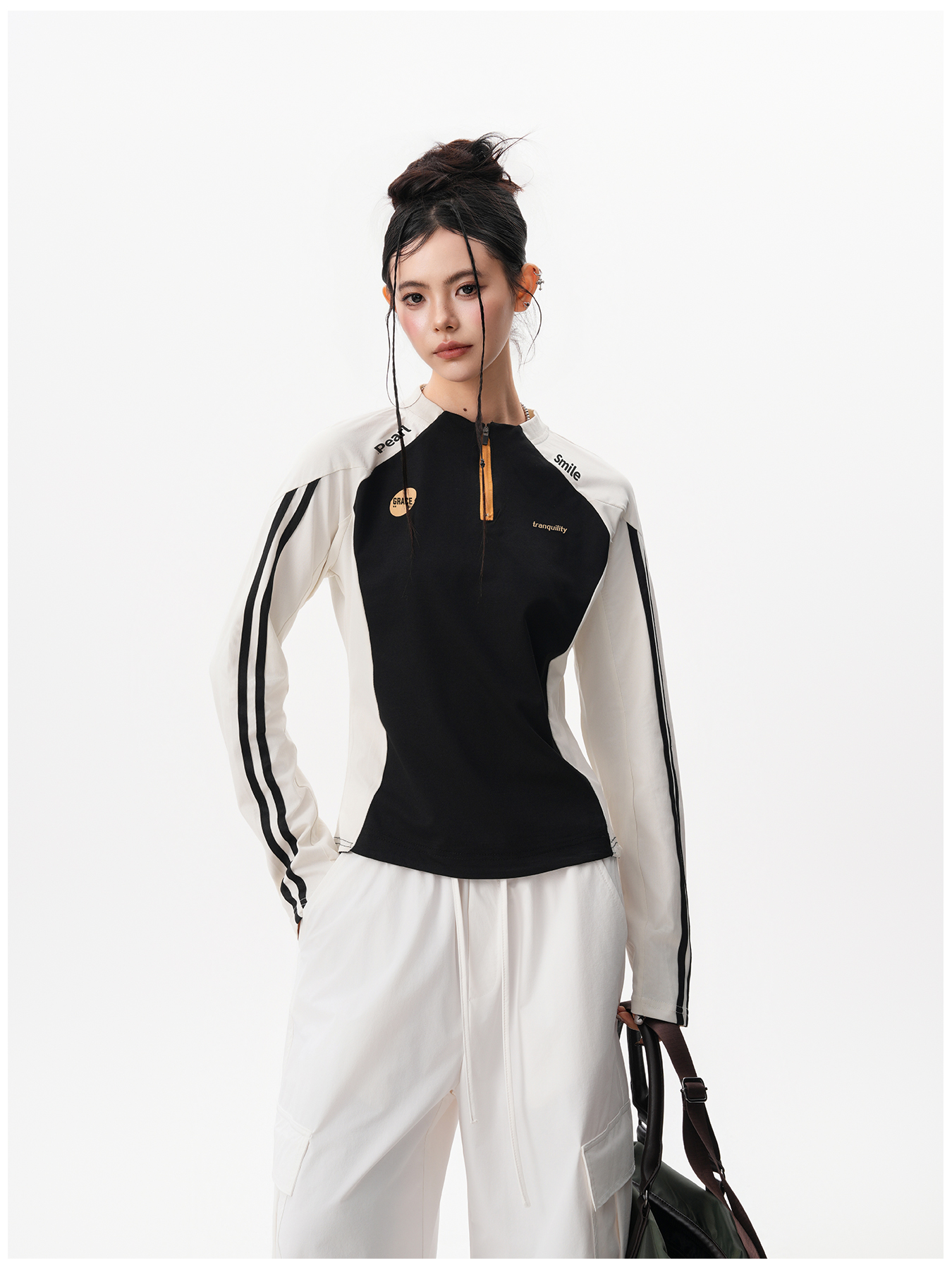 速幹輕薄騎行服女秋季撞色半拉鍊長袖T恤戶外健身訓練運動上衣