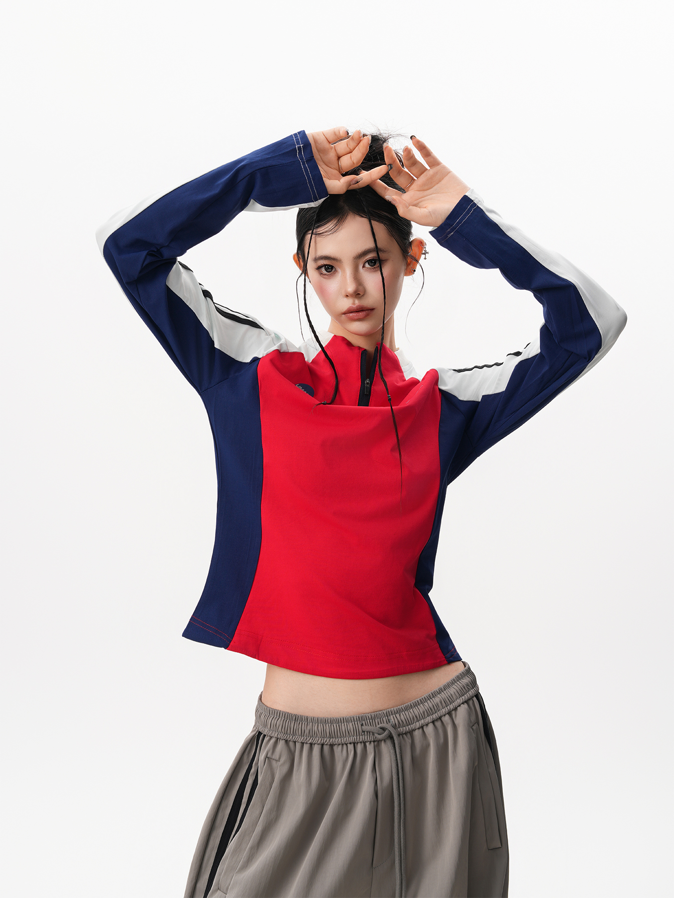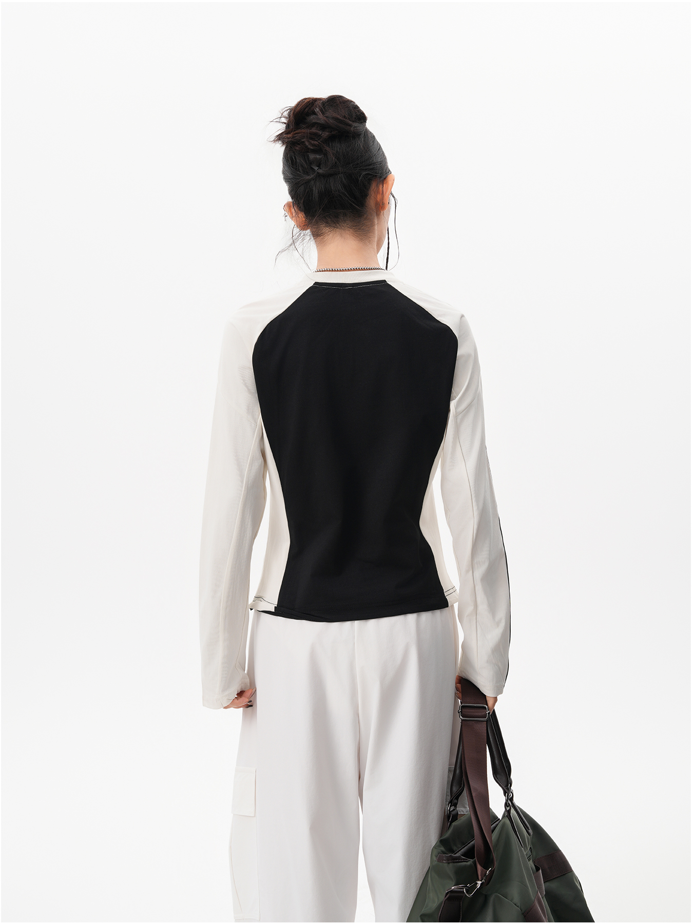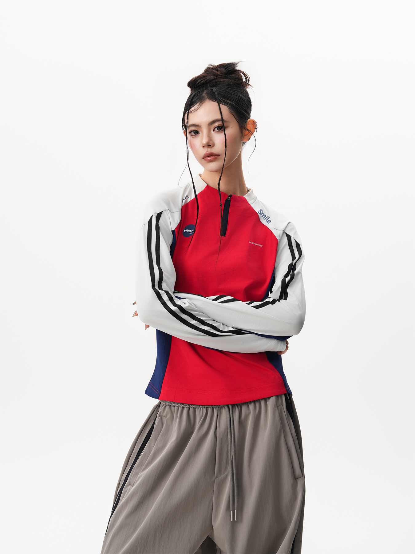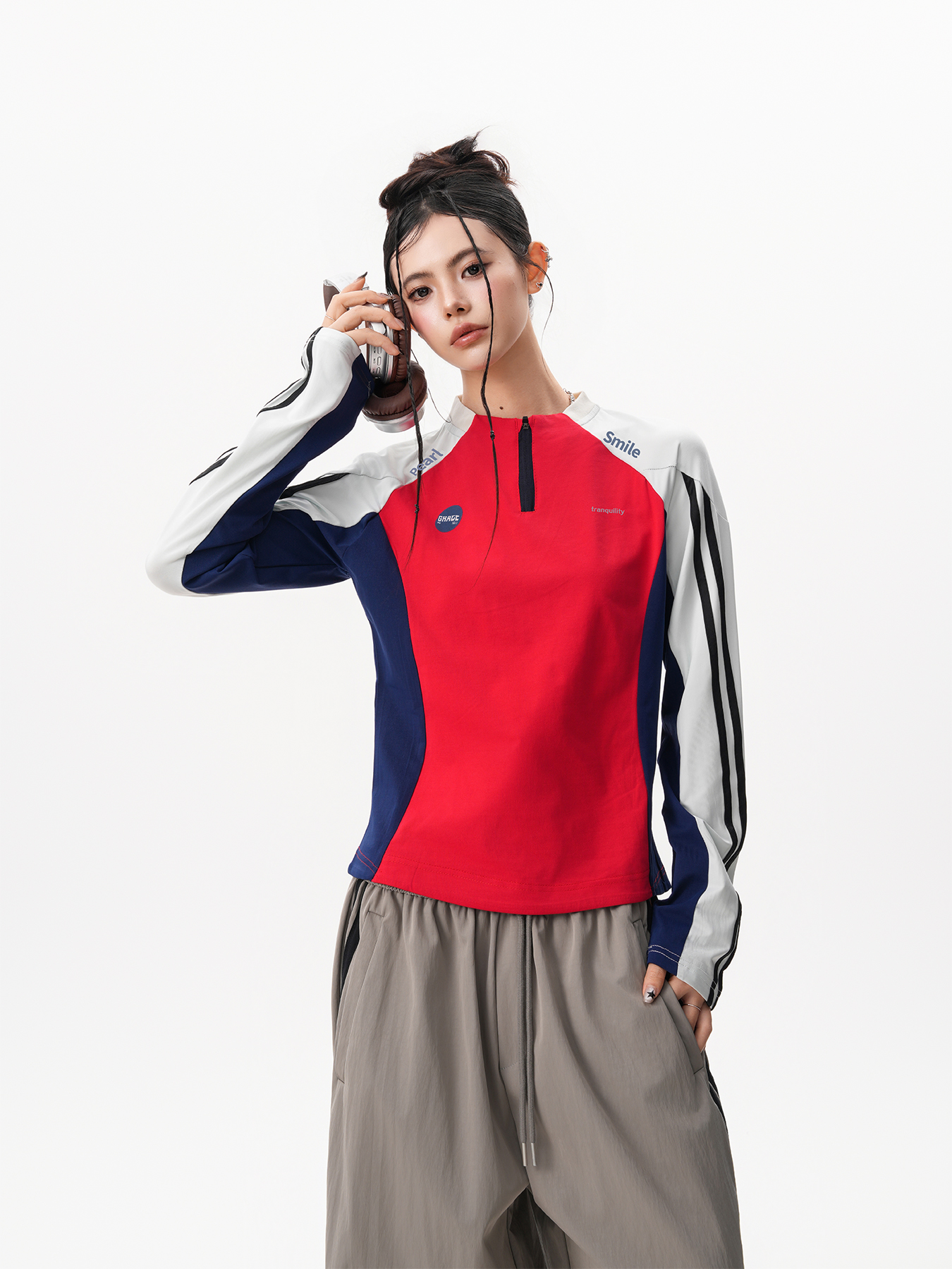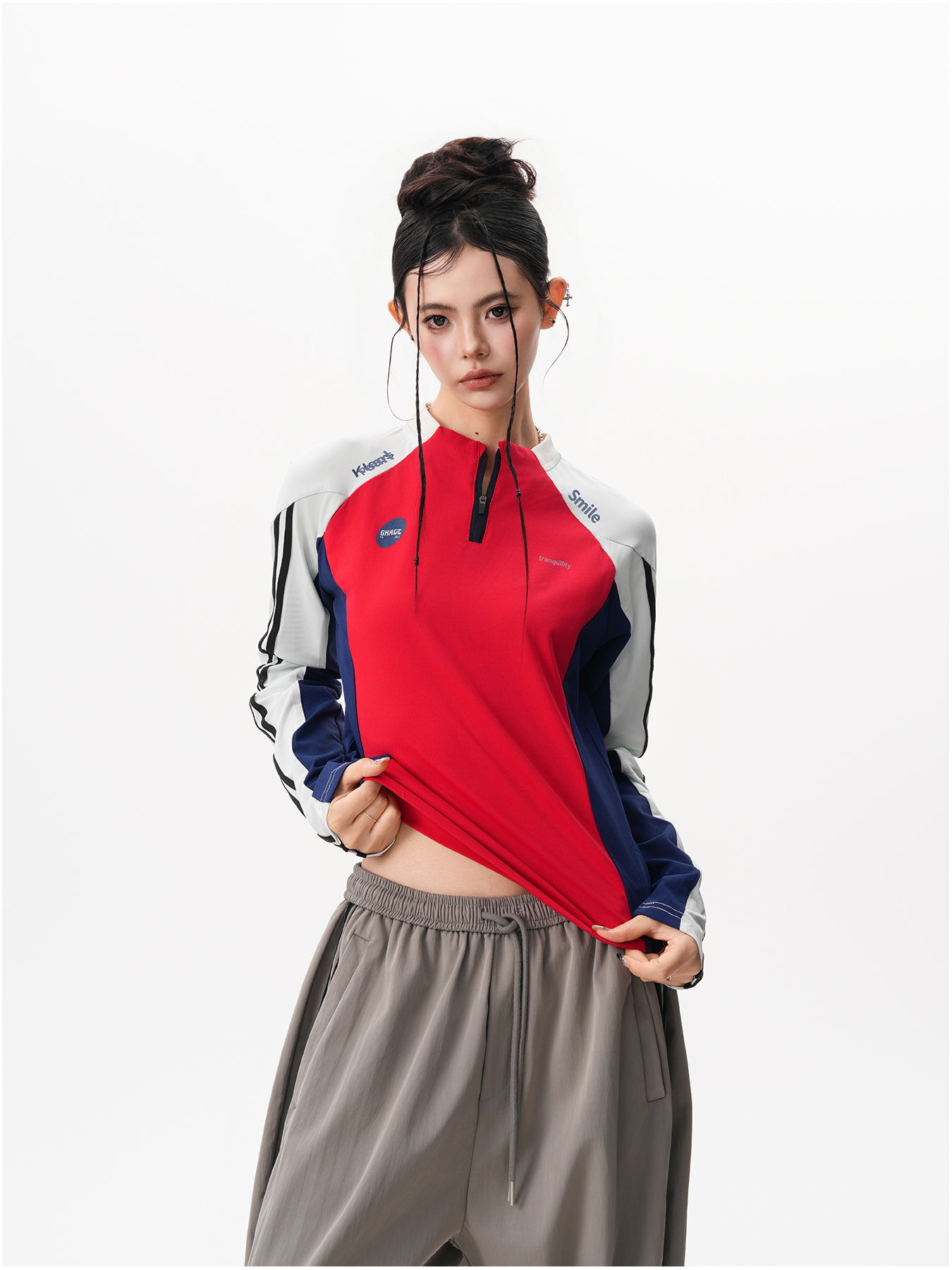 速幹輕薄騎行服女秋季撞色半拉鍊長袖T恤戶外健身訓練運動上衣