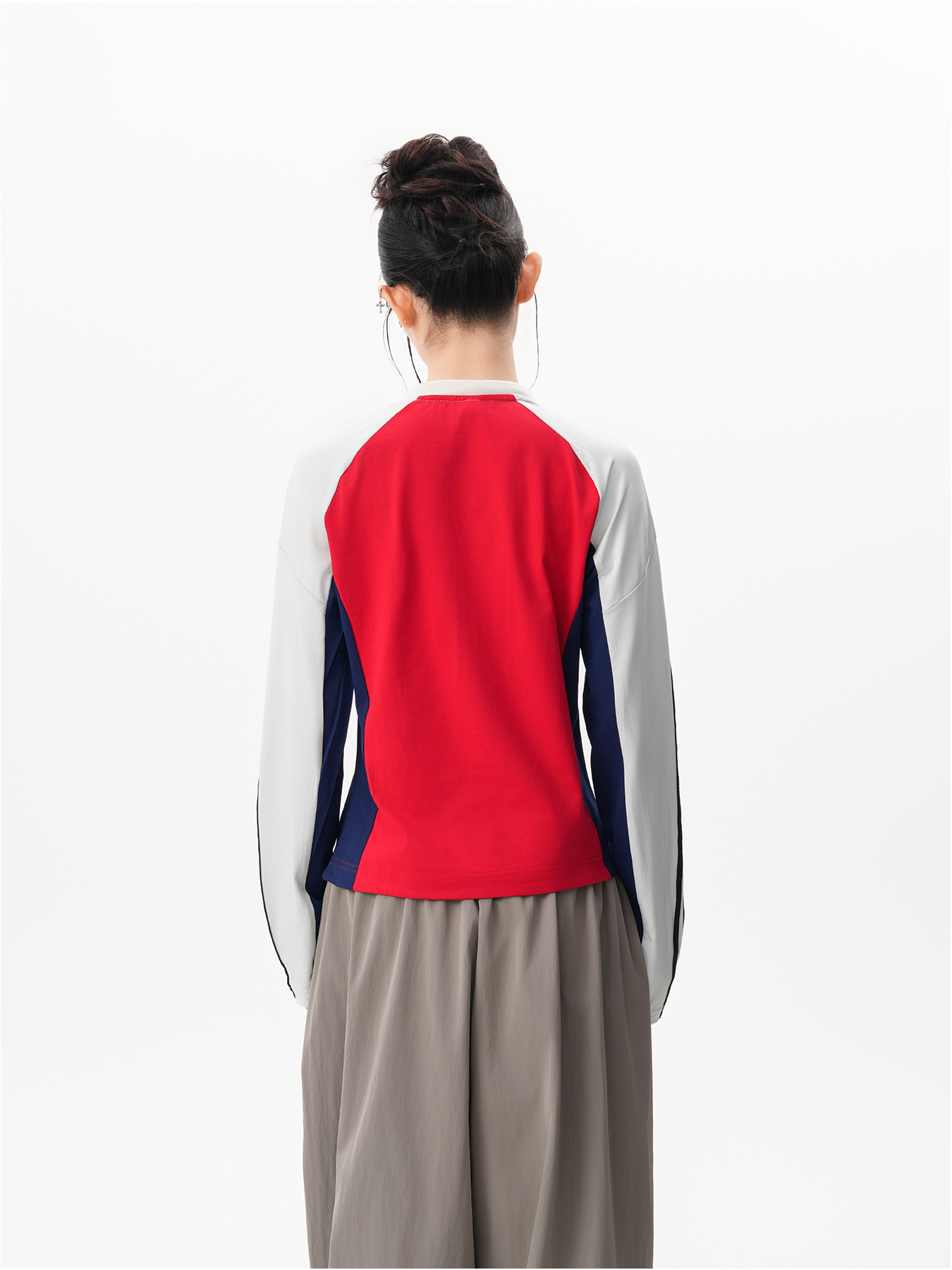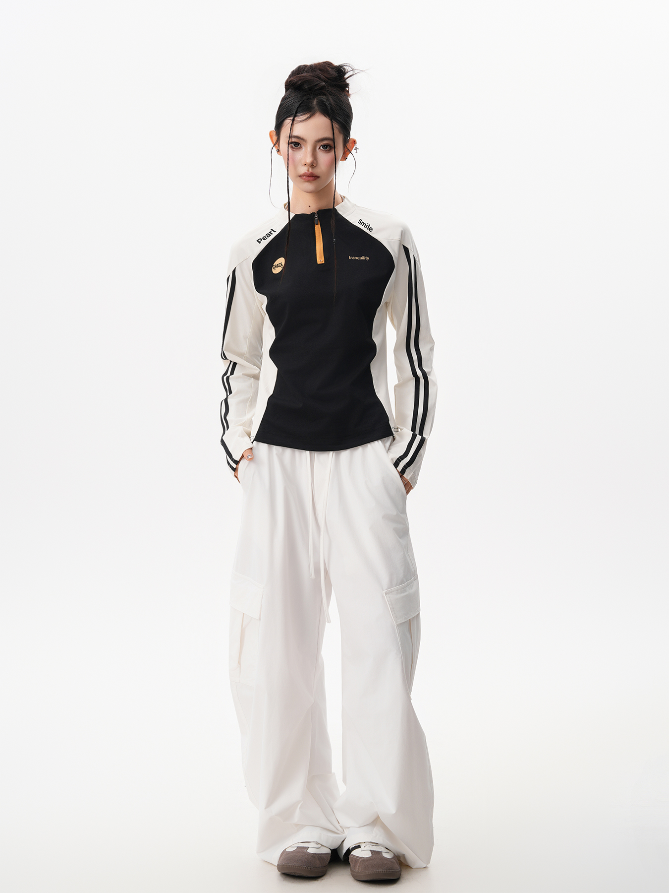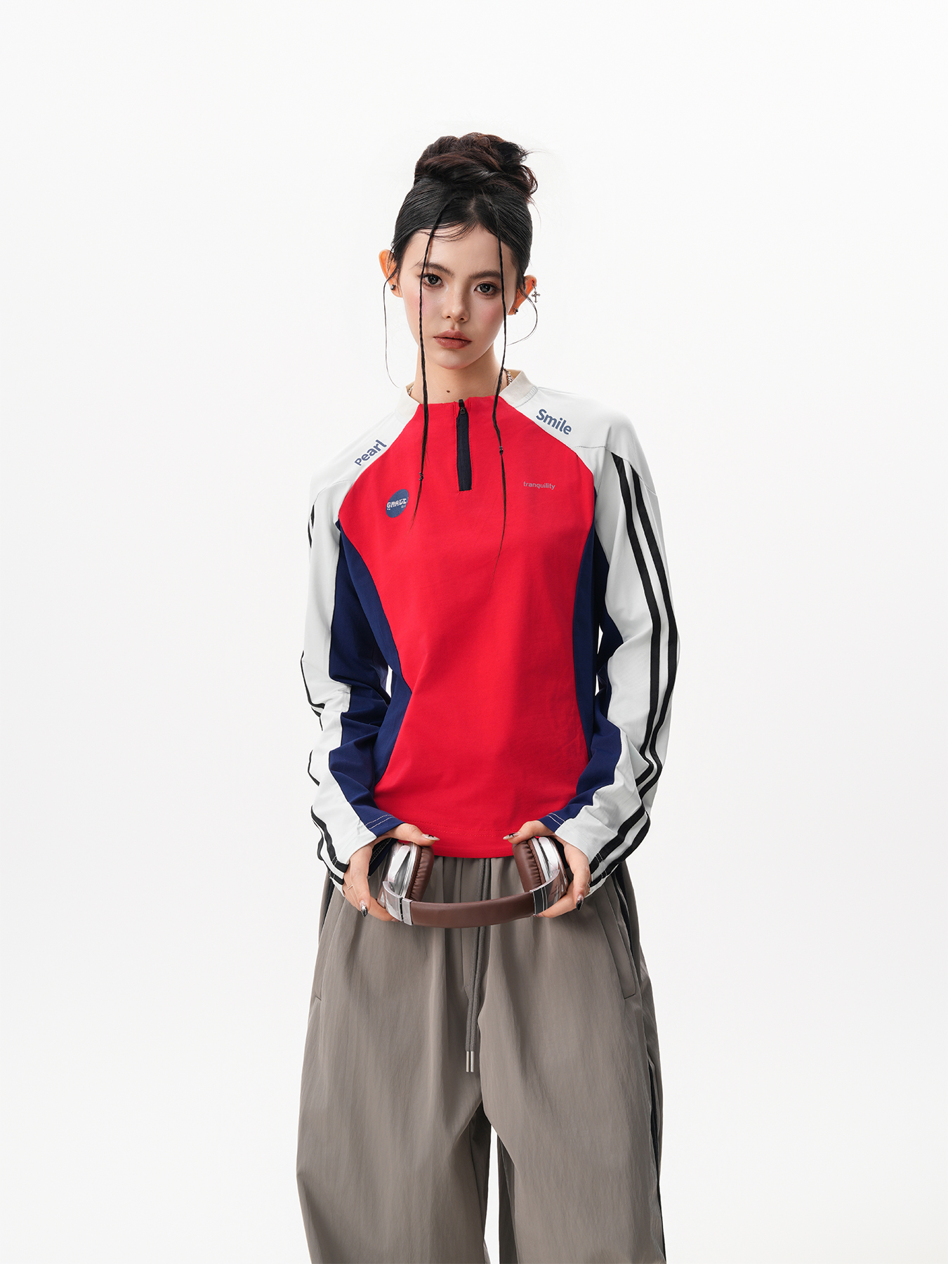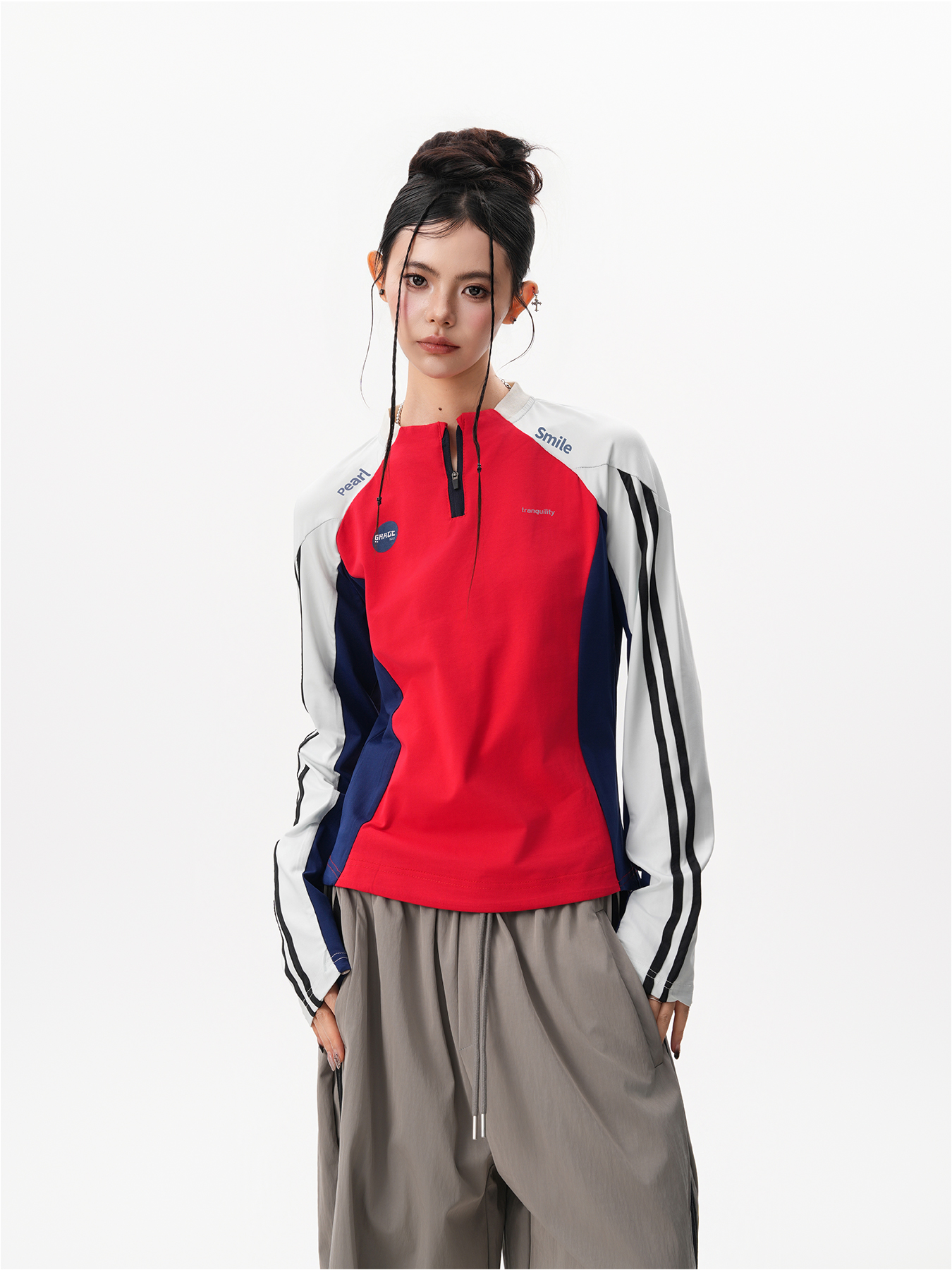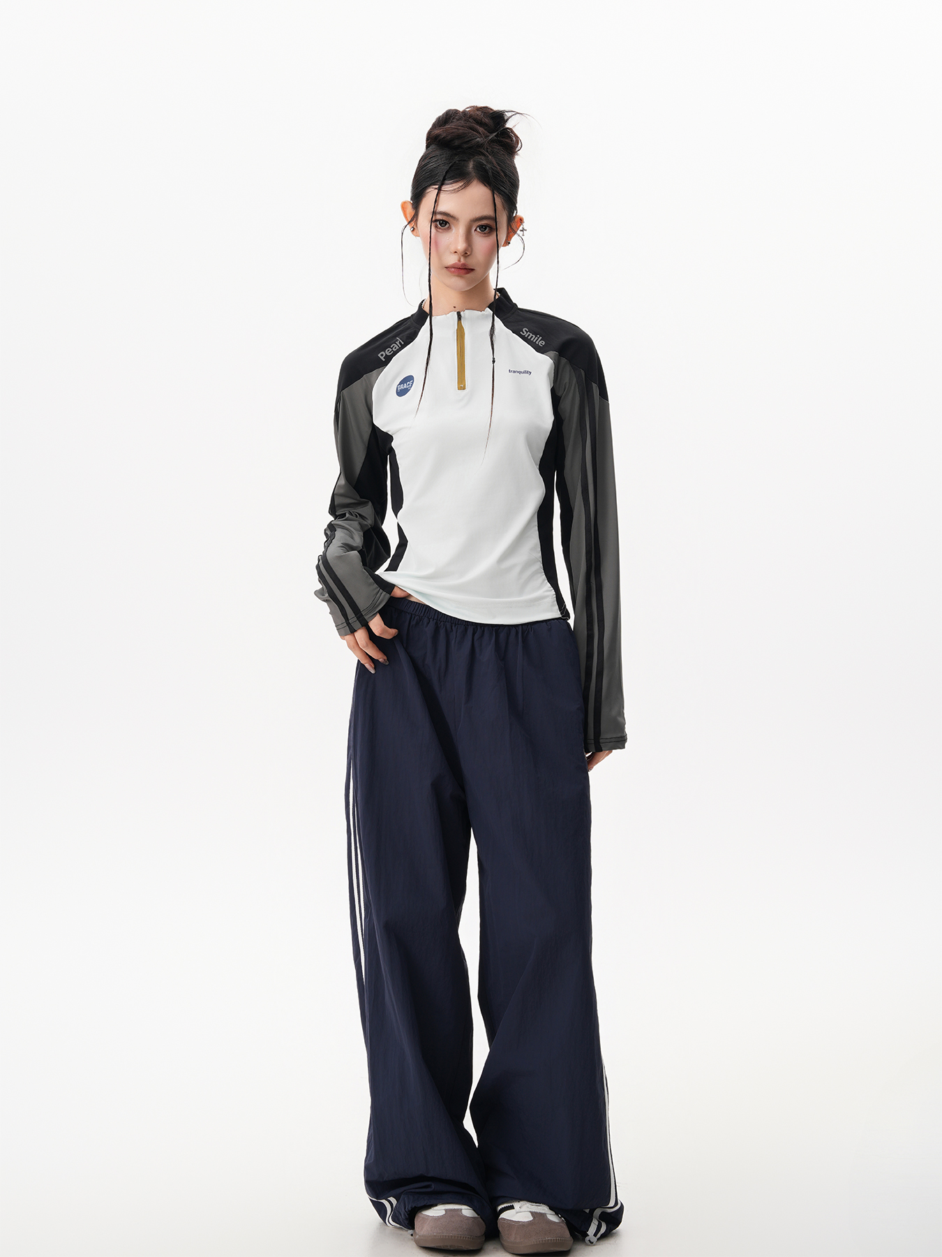 速幹輕薄騎行服女秋季撞色半拉鍊長袖T恤戶外健身訓練運動上衣