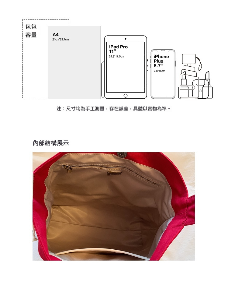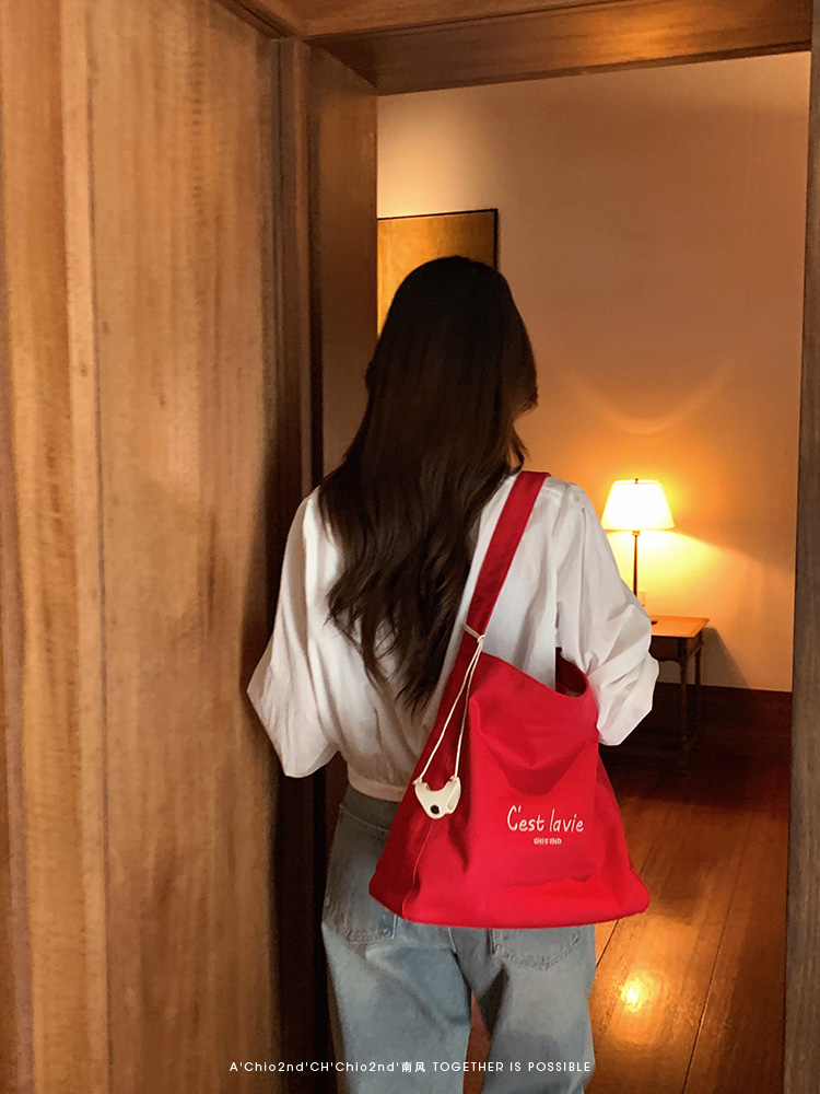 霓虹甜心托特包包女紅色帆布包通勤單肩包