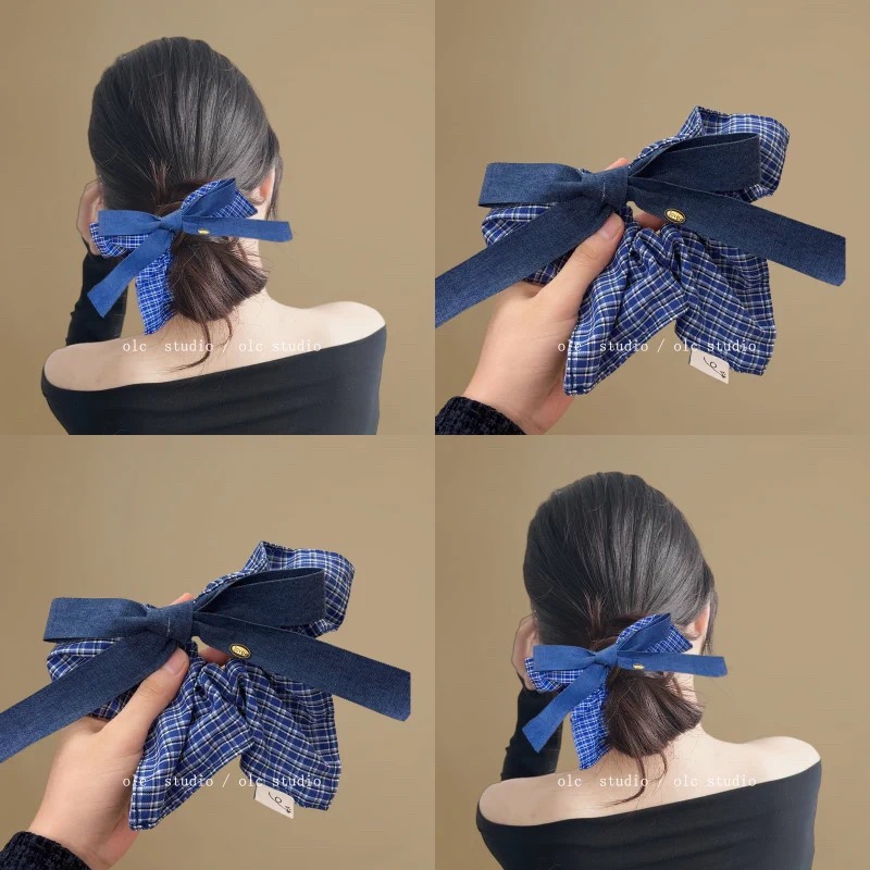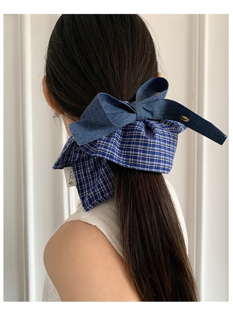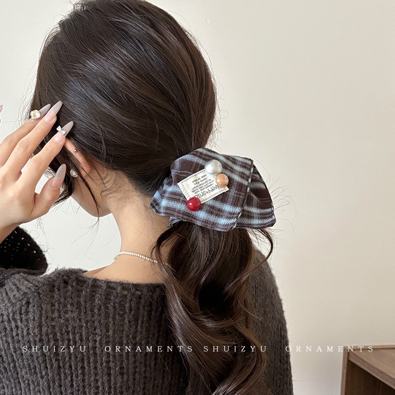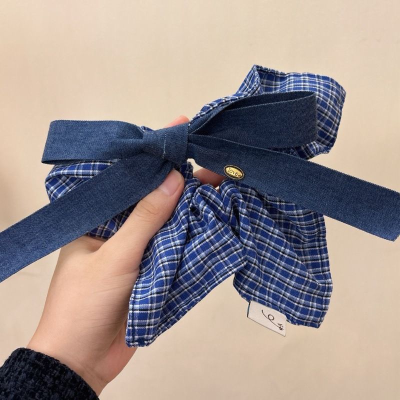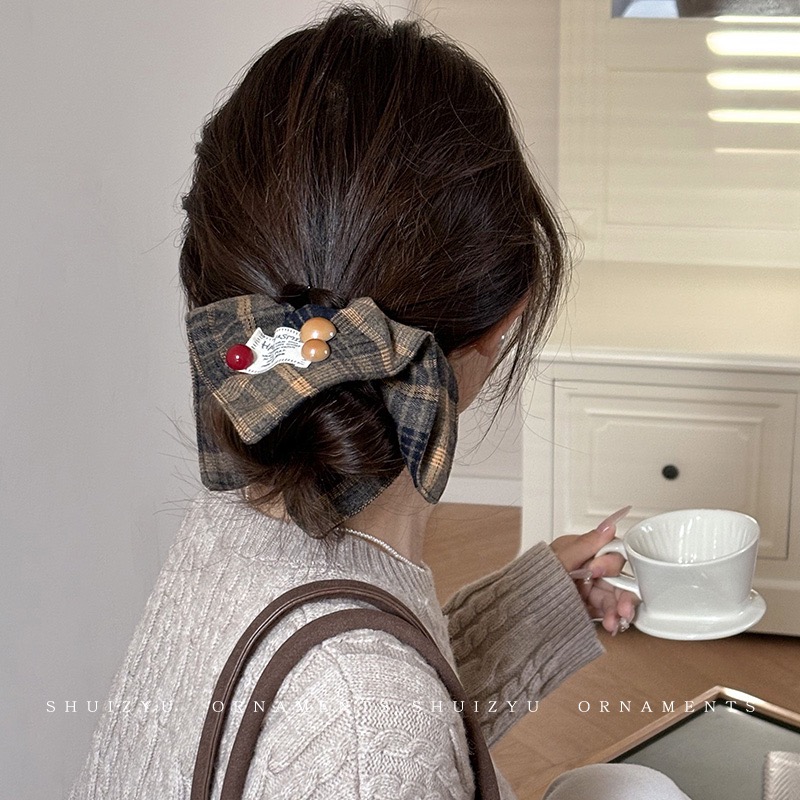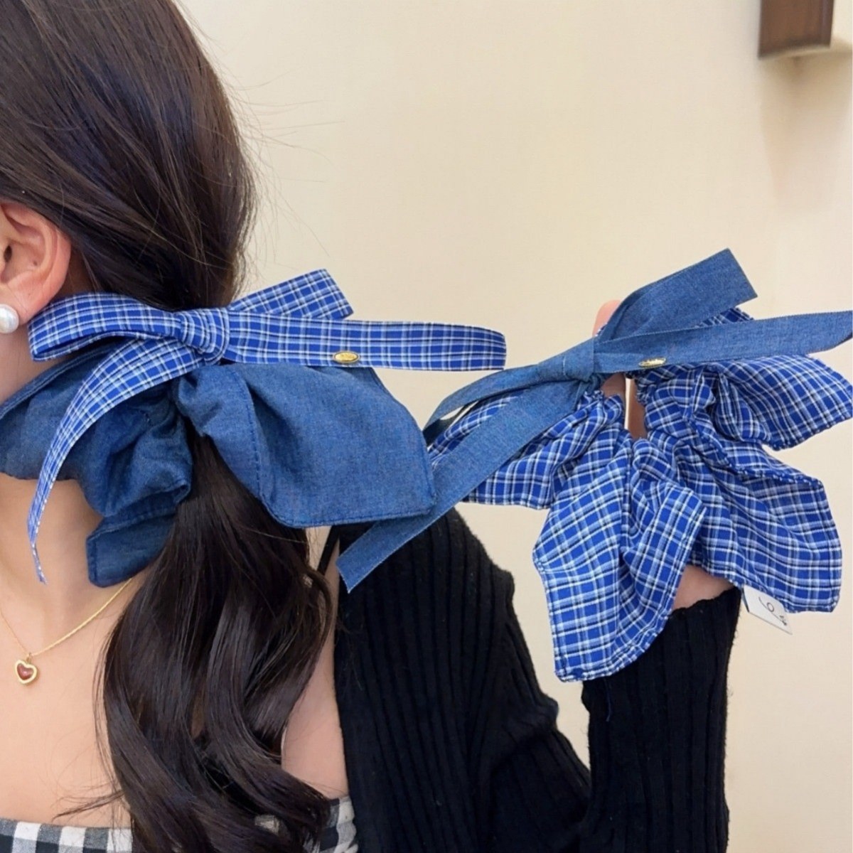 韓式格子方巾大腸發圈女復古超大號頭繩方形發飾高級感不傷發皮筋