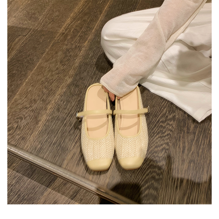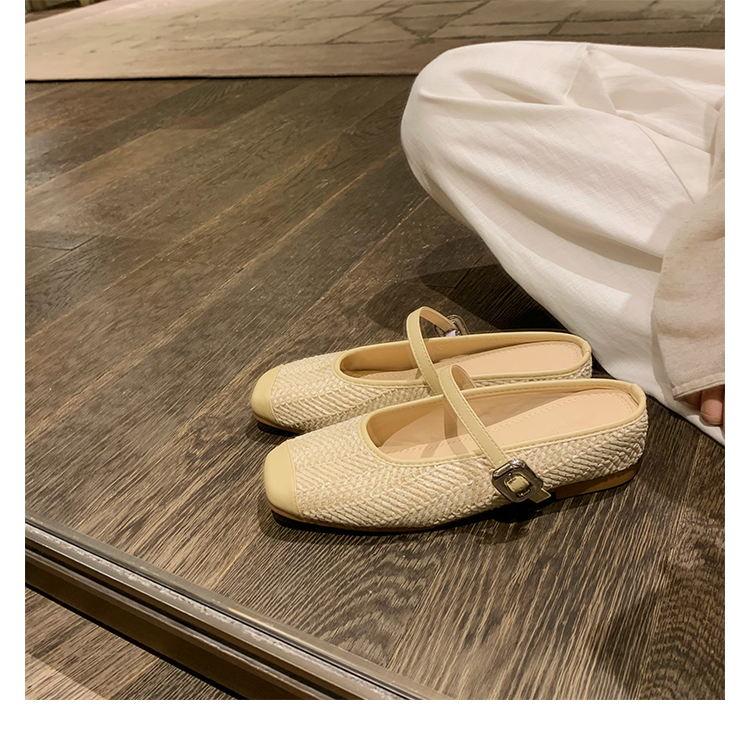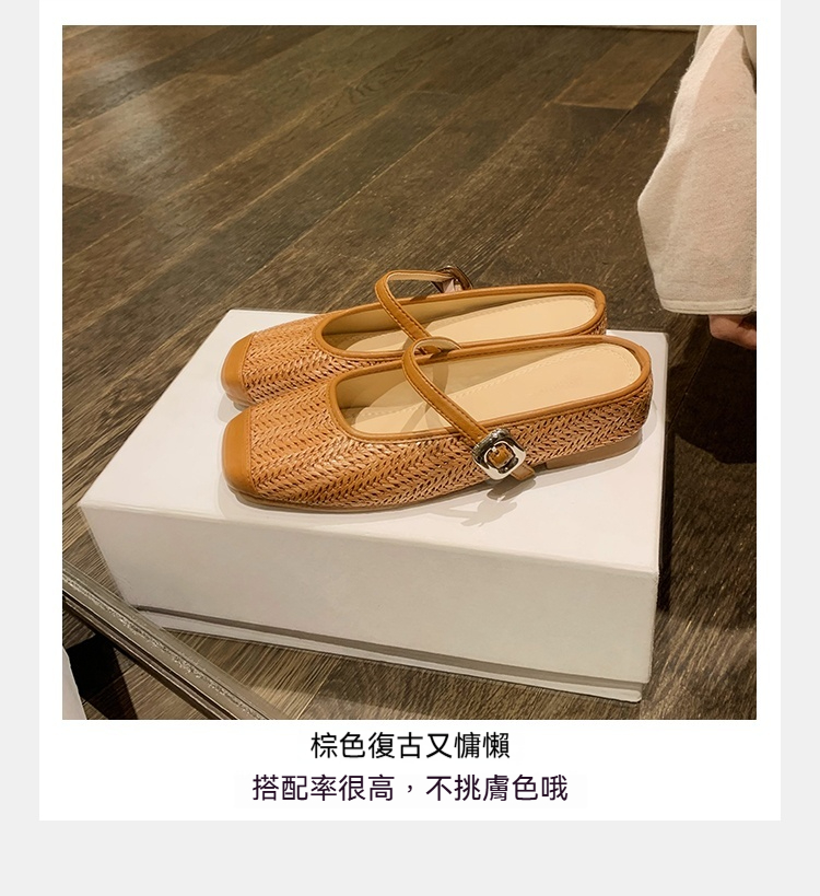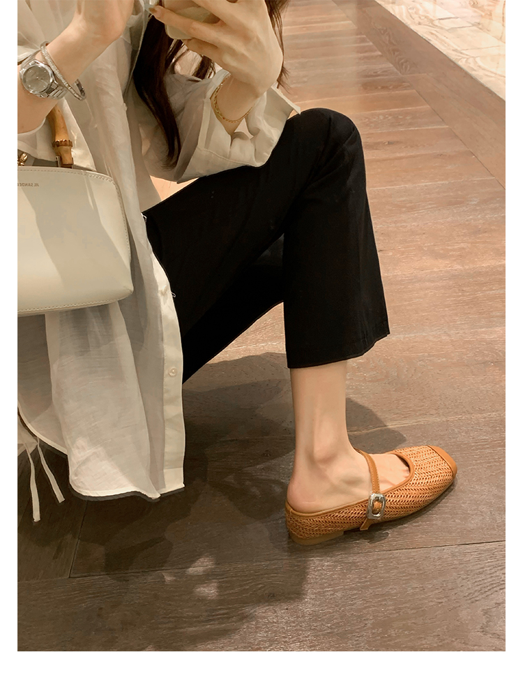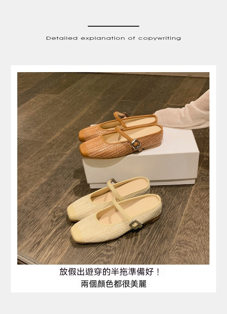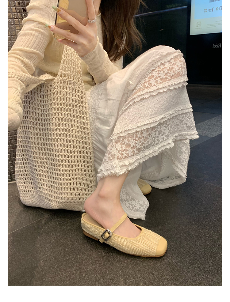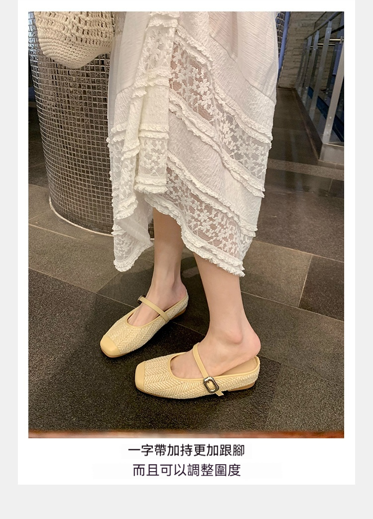 度假風草編方頭涼拖懶人半拖女夏季