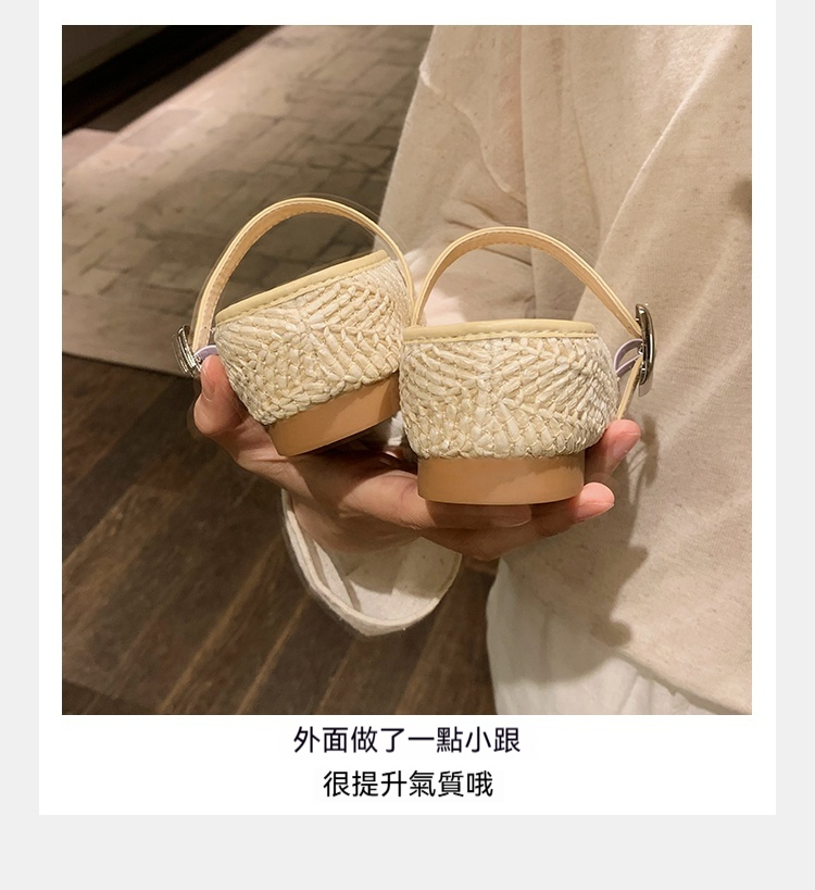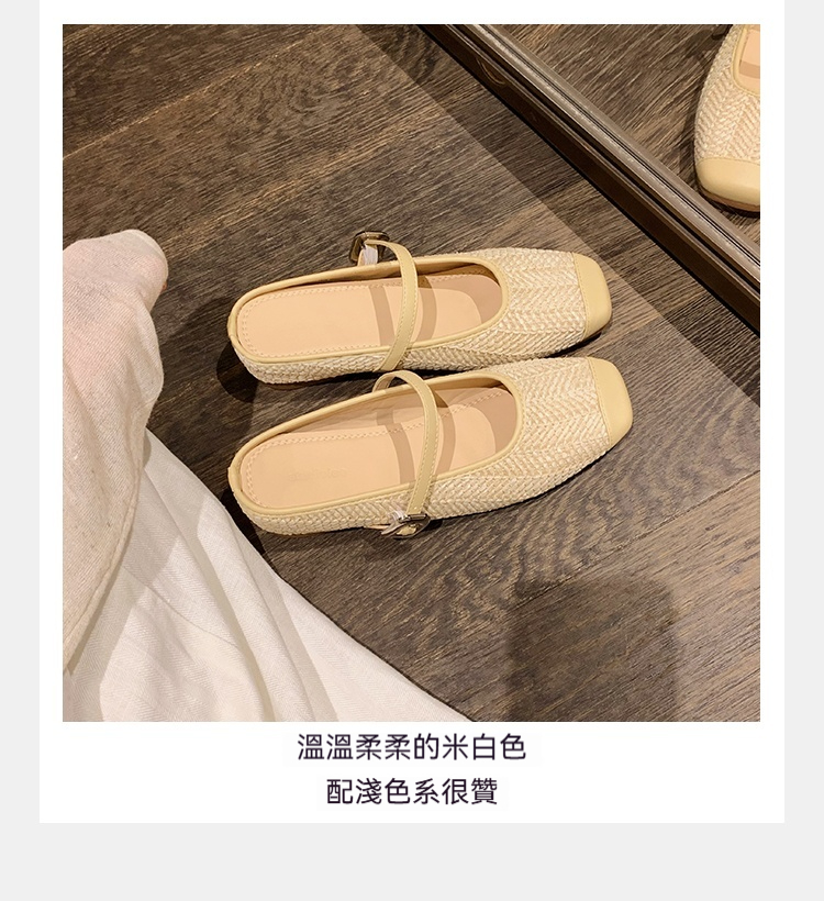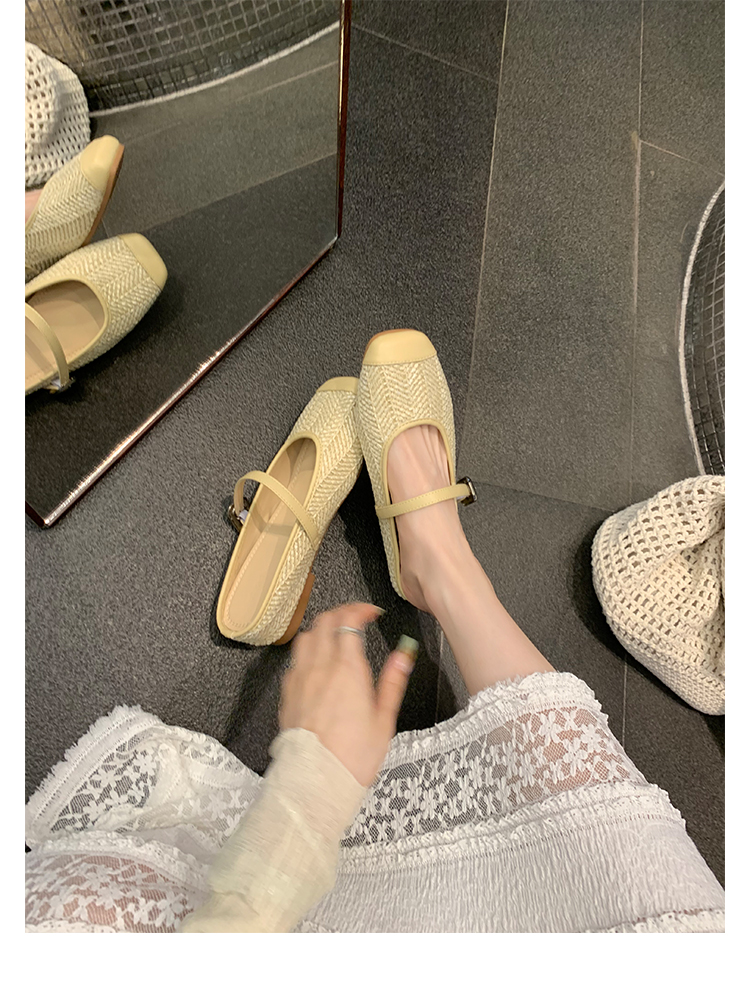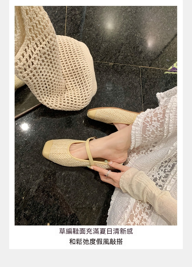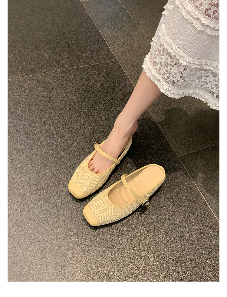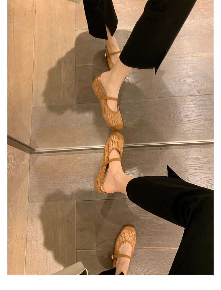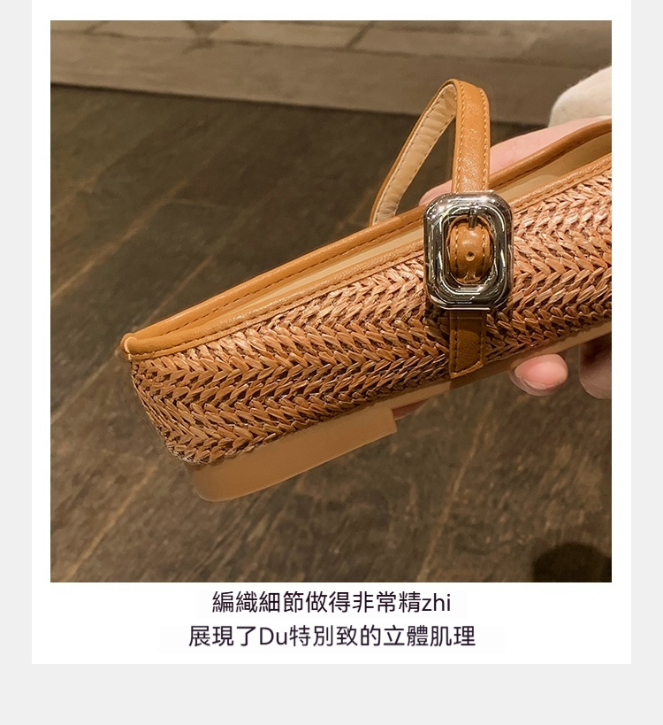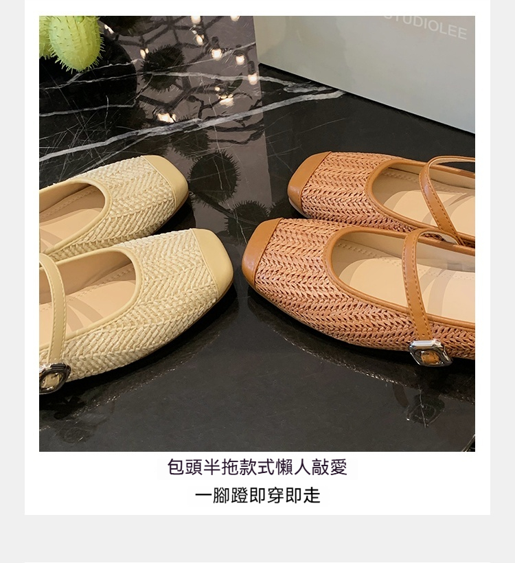 度假風草編方頭涼拖懶人半拖女夏季