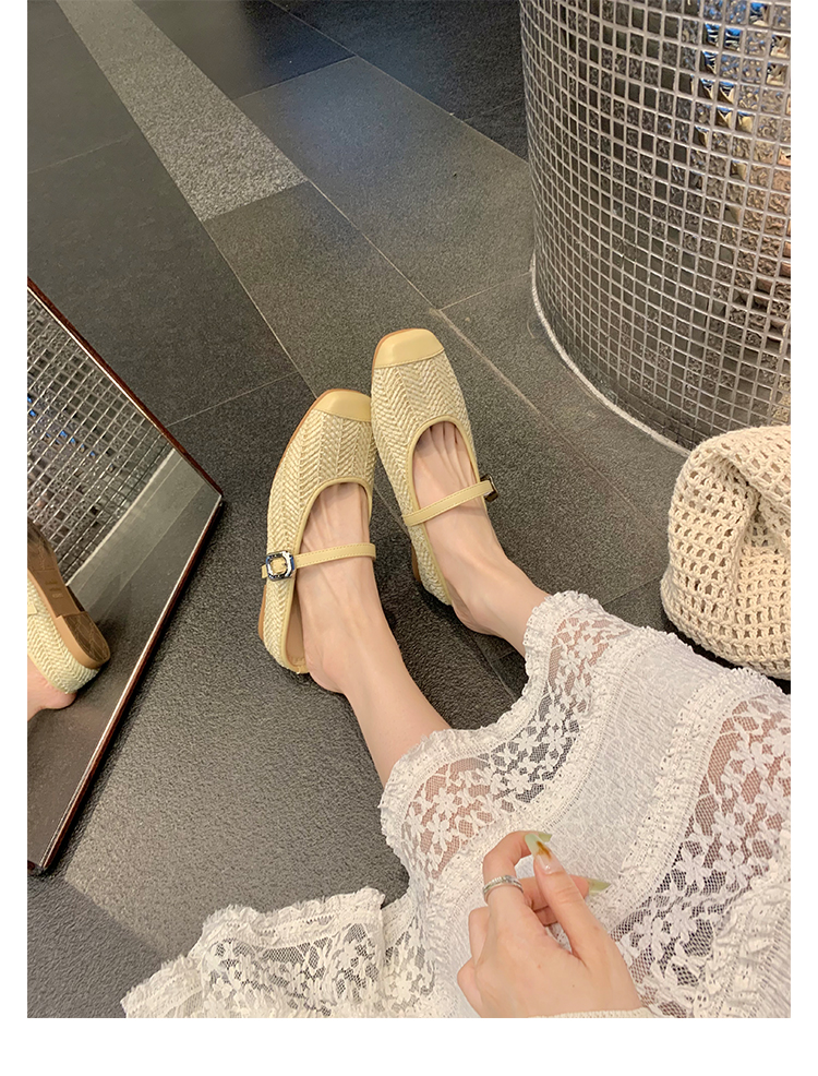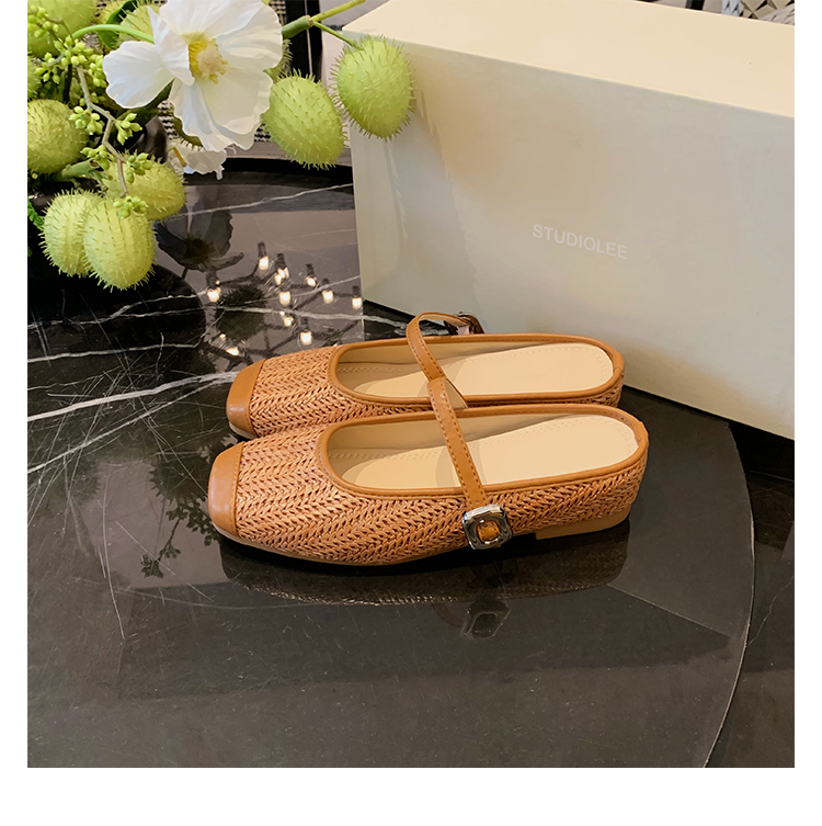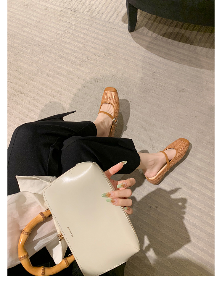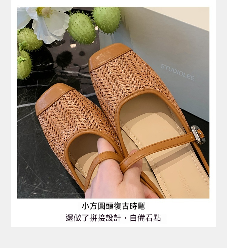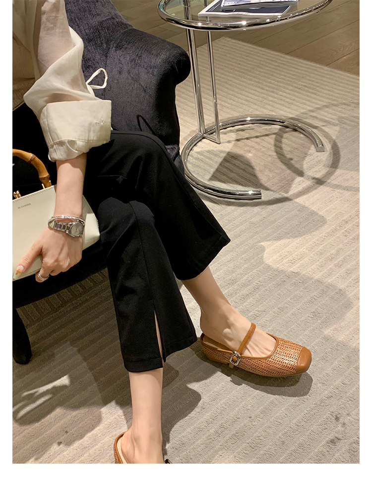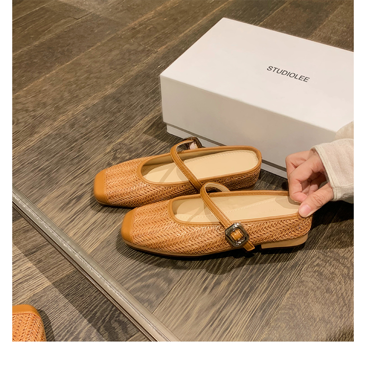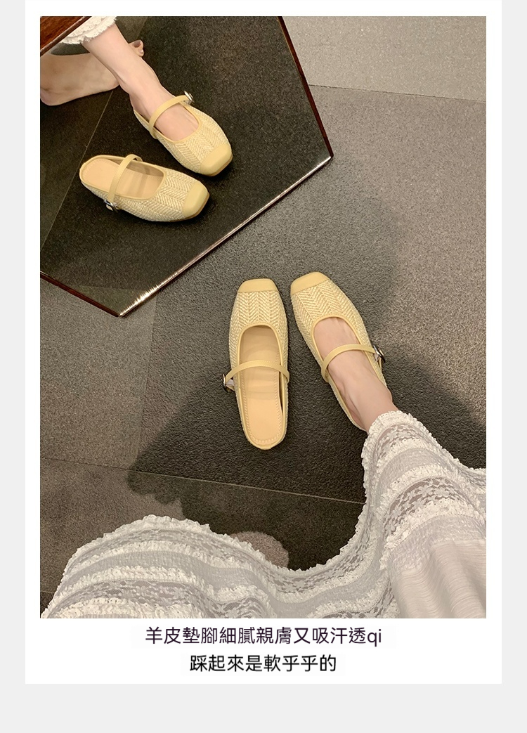 度假風草編方頭涼拖懶人半拖女夏季