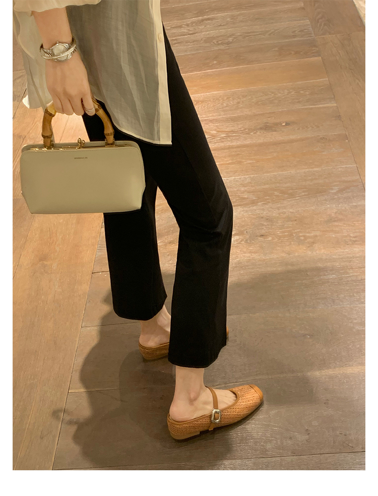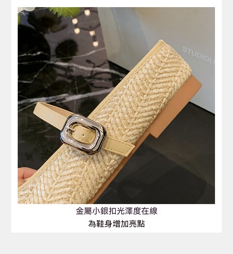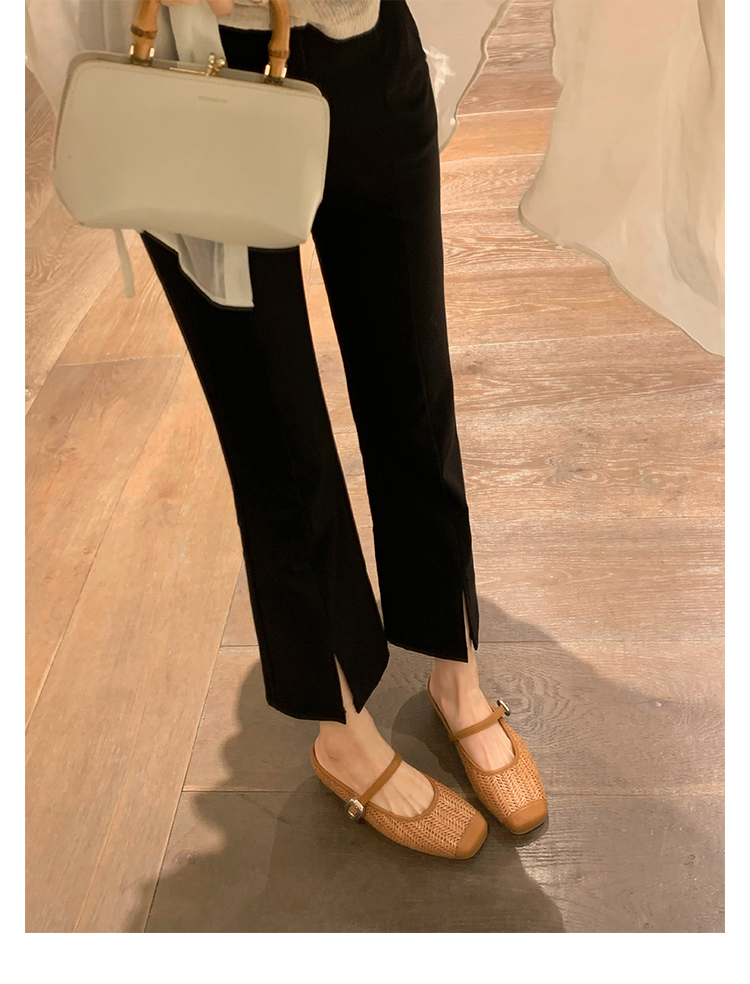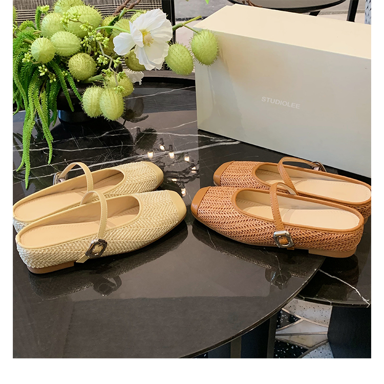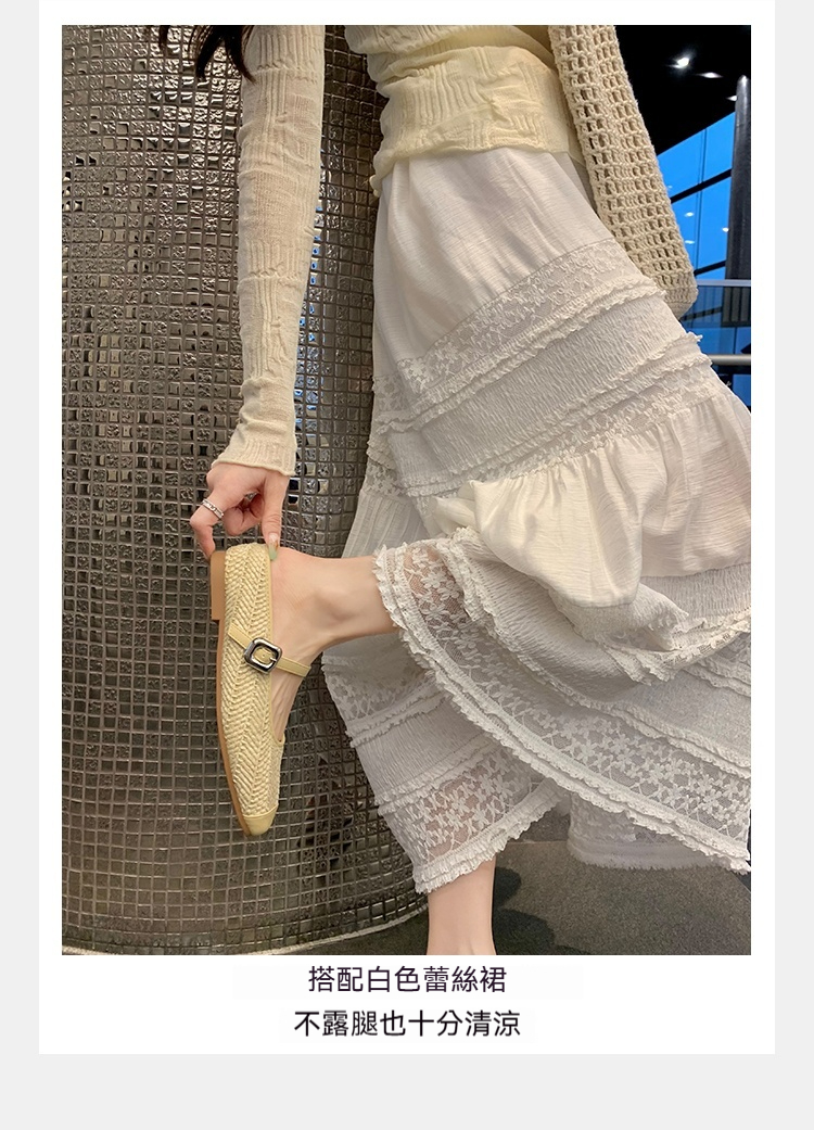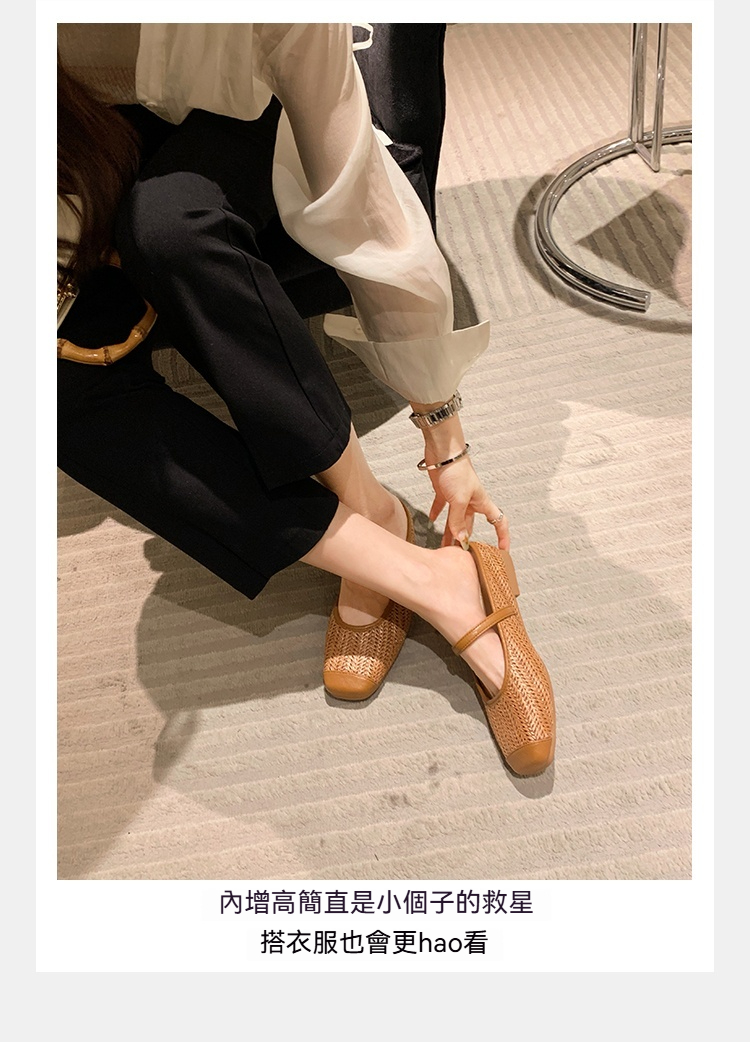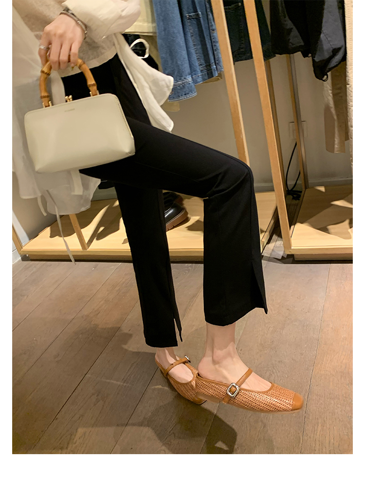 度假風草編方頭涼拖懶人半拖女夏季