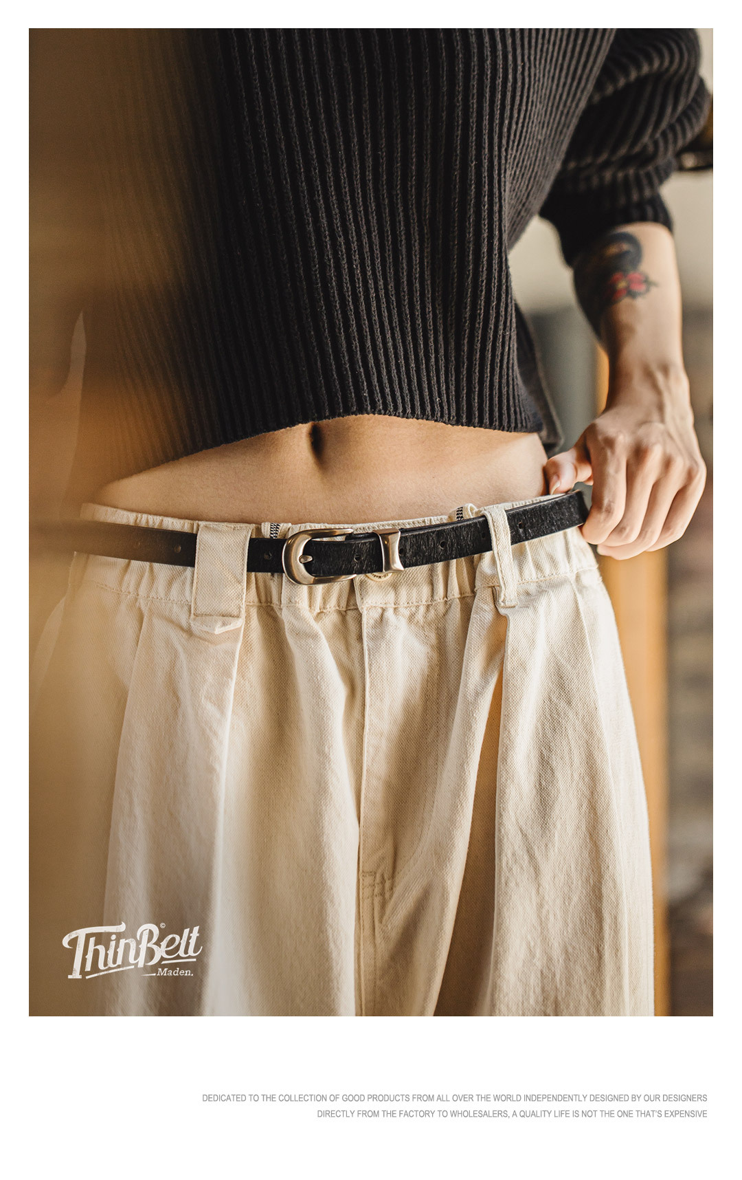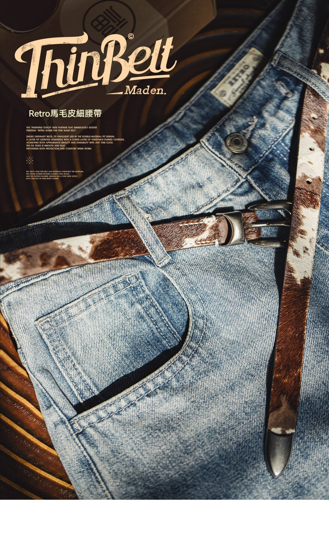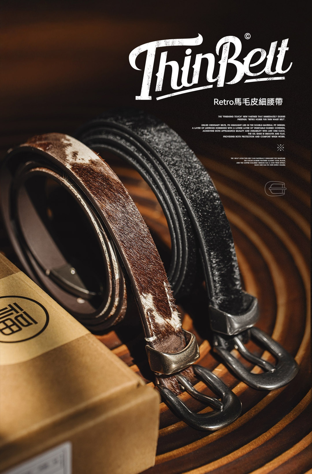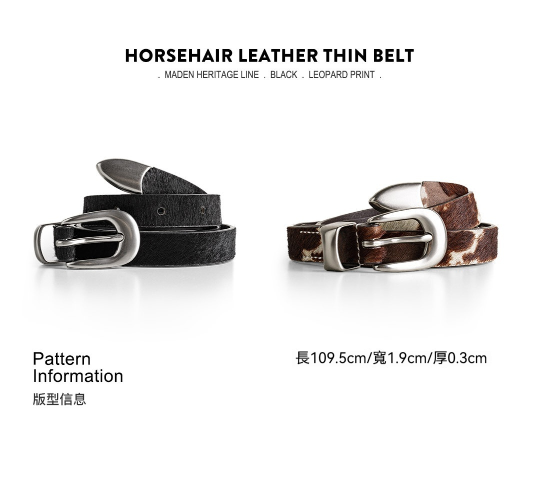 復古黑色豹紋百搭馬毛針扣頭細窄款小真牛皮皮腰帶配裝潢女士