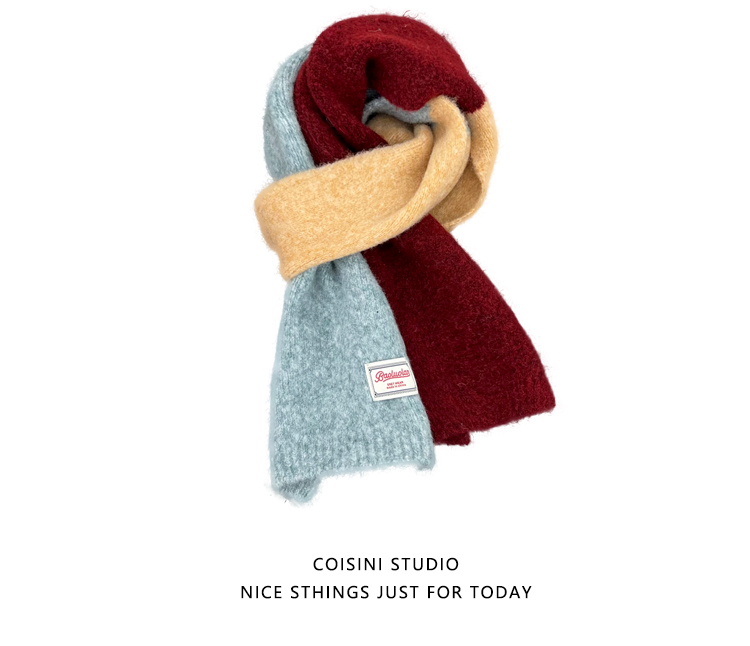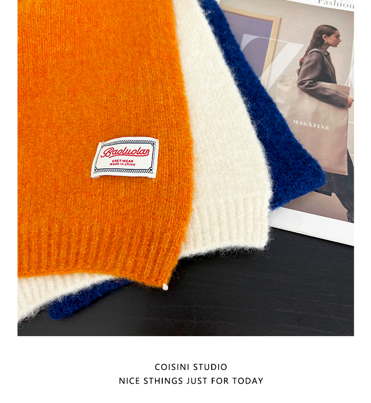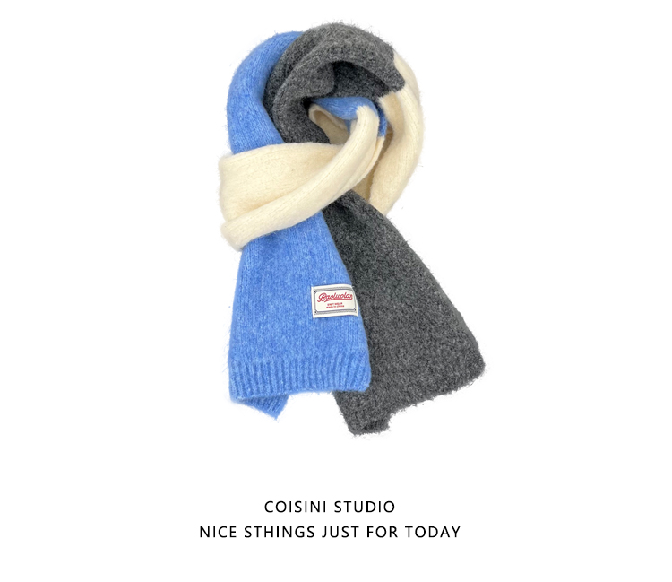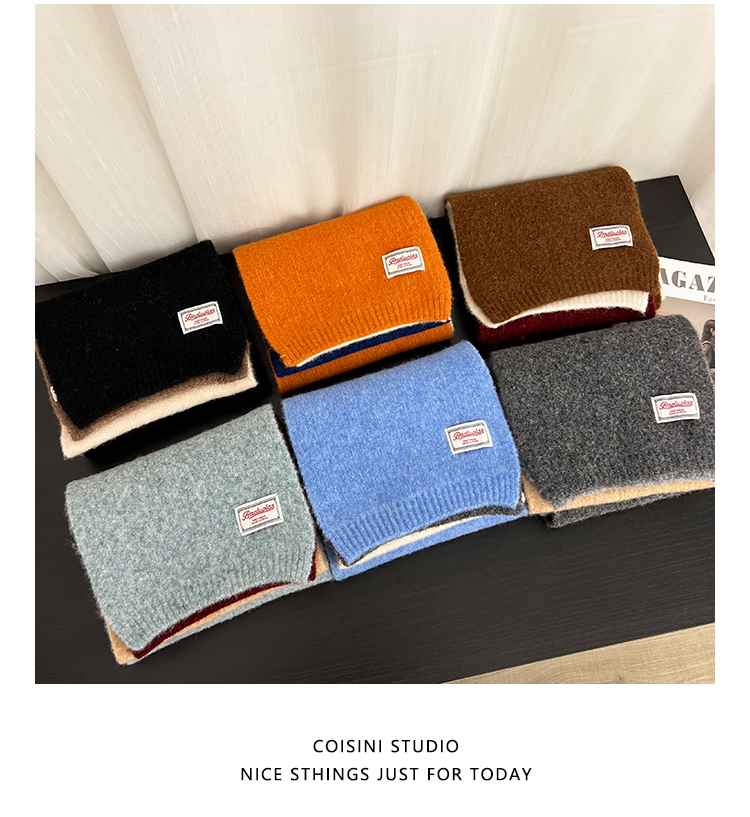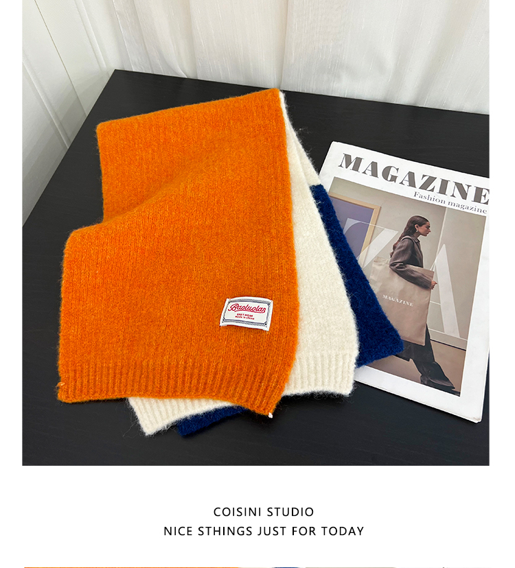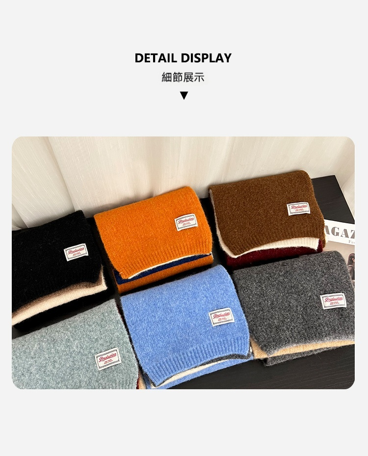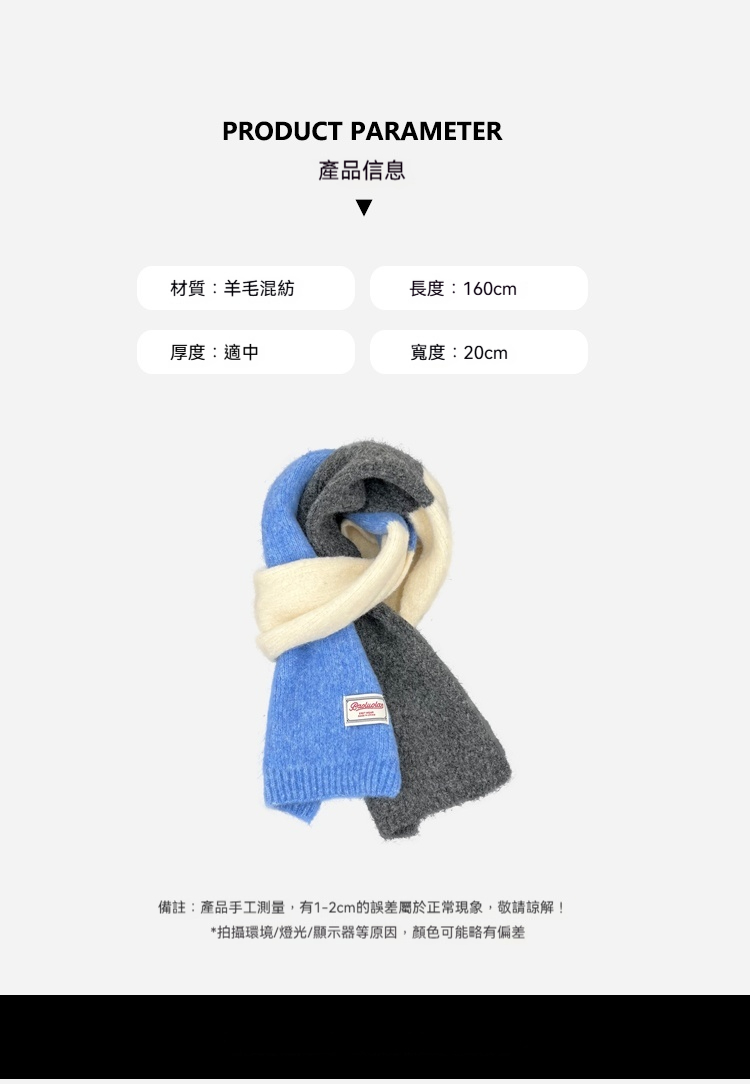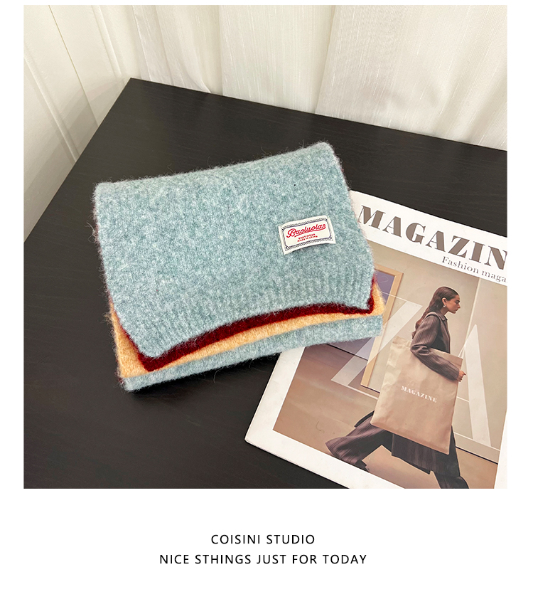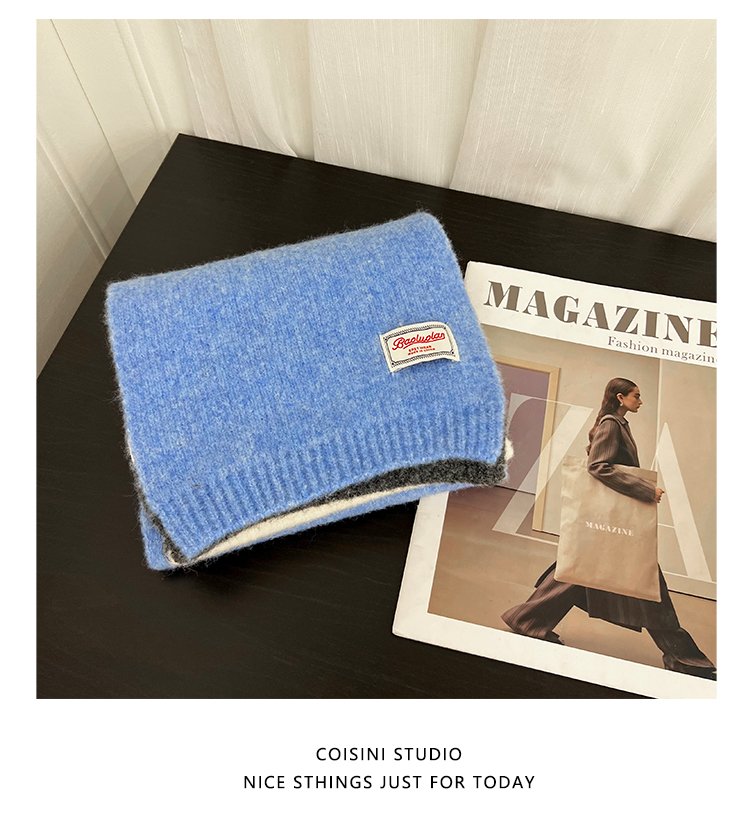 新款日系多巴胺撞色羊毛圍巾女秋冬季保暖百搭軟糯針織圍脖