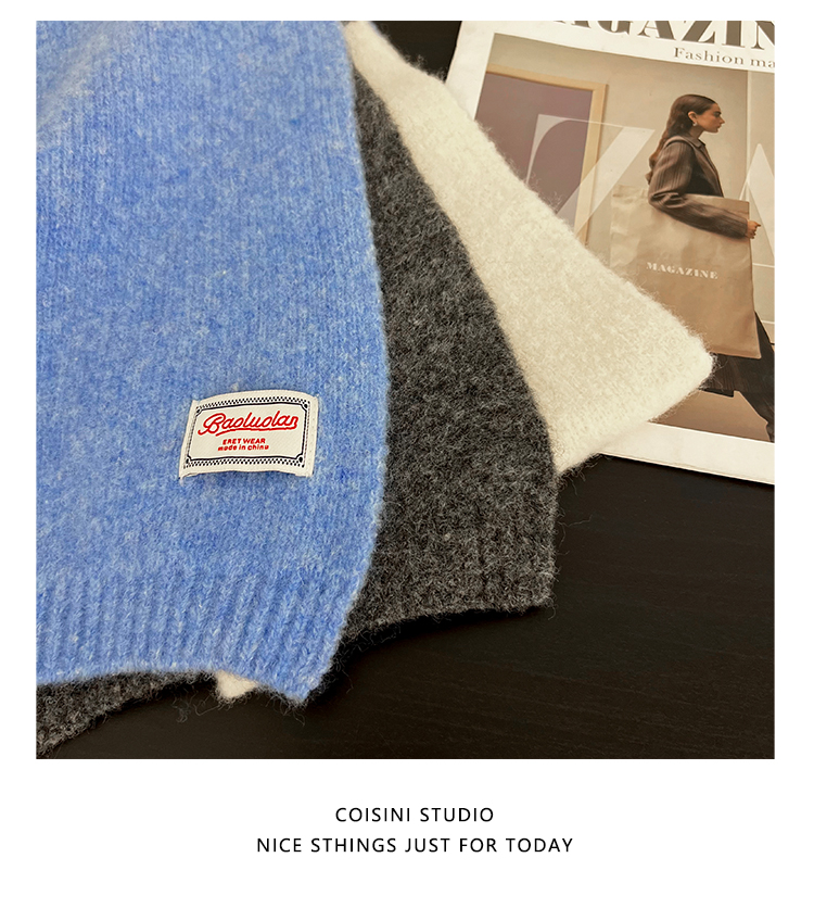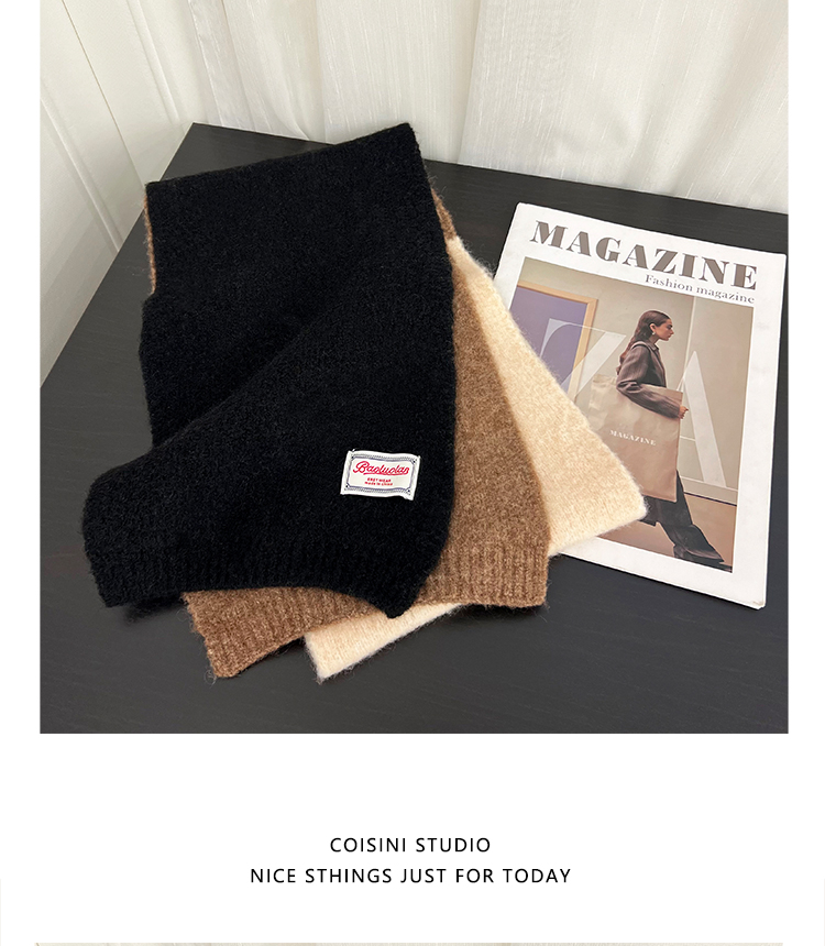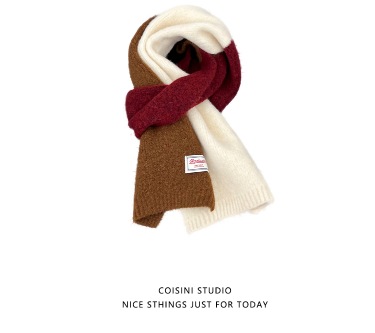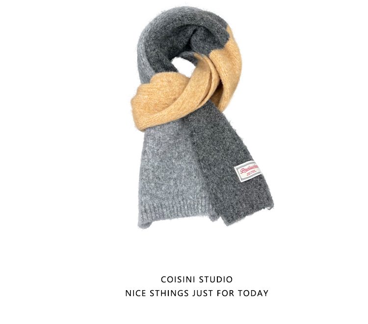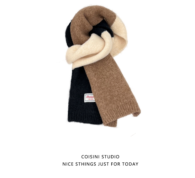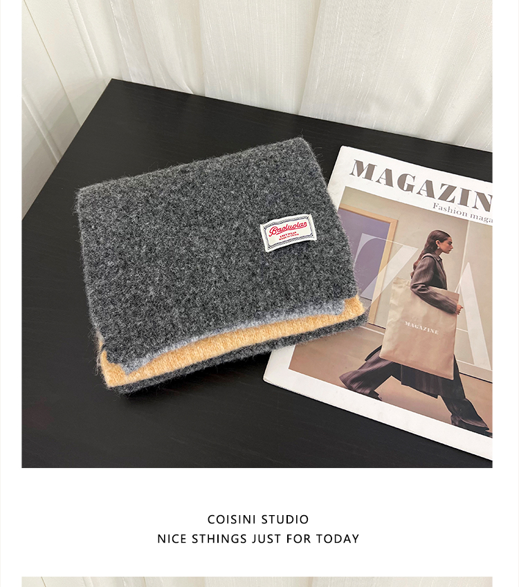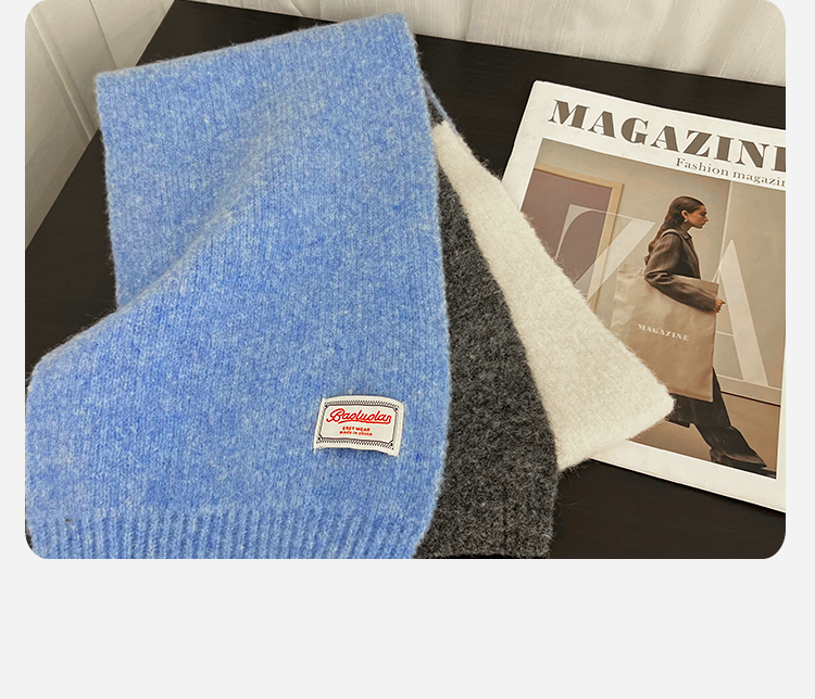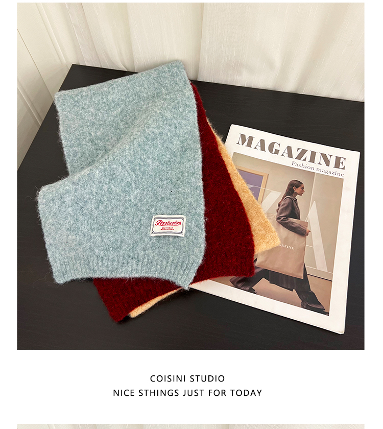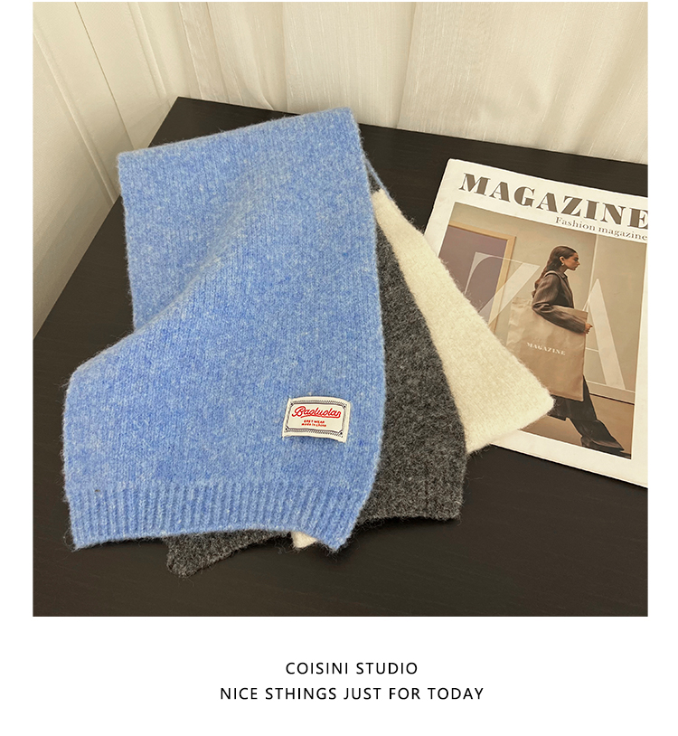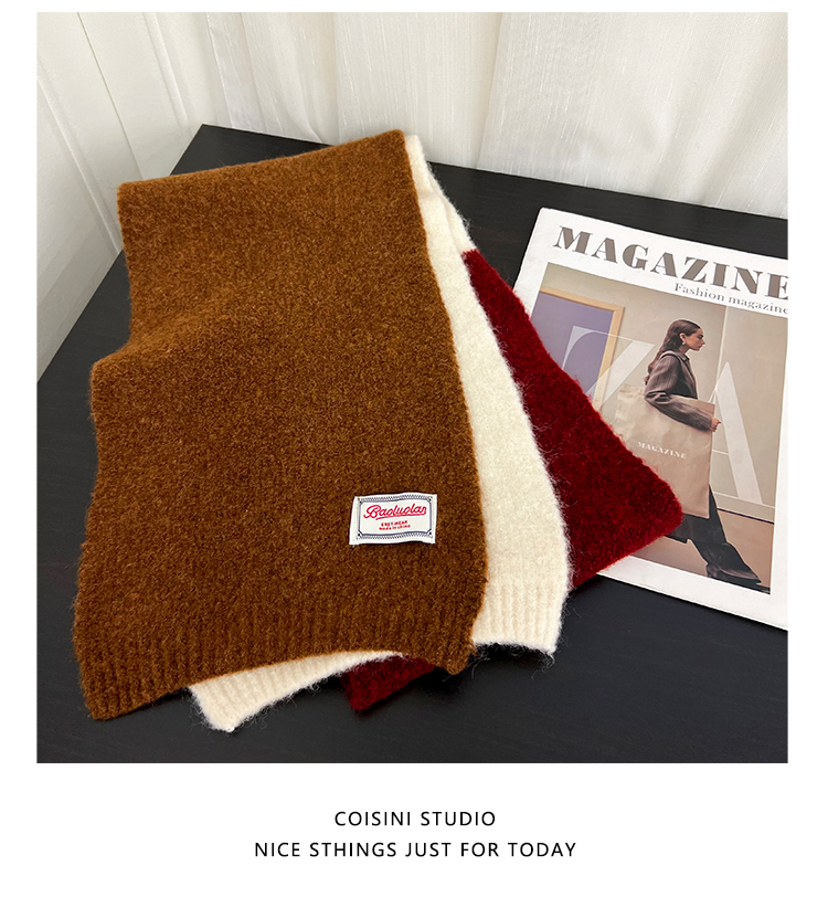 新款日系多巴胺撞色羊毛圍巾女秋冬季保暖百搭軟糯針織圍脖