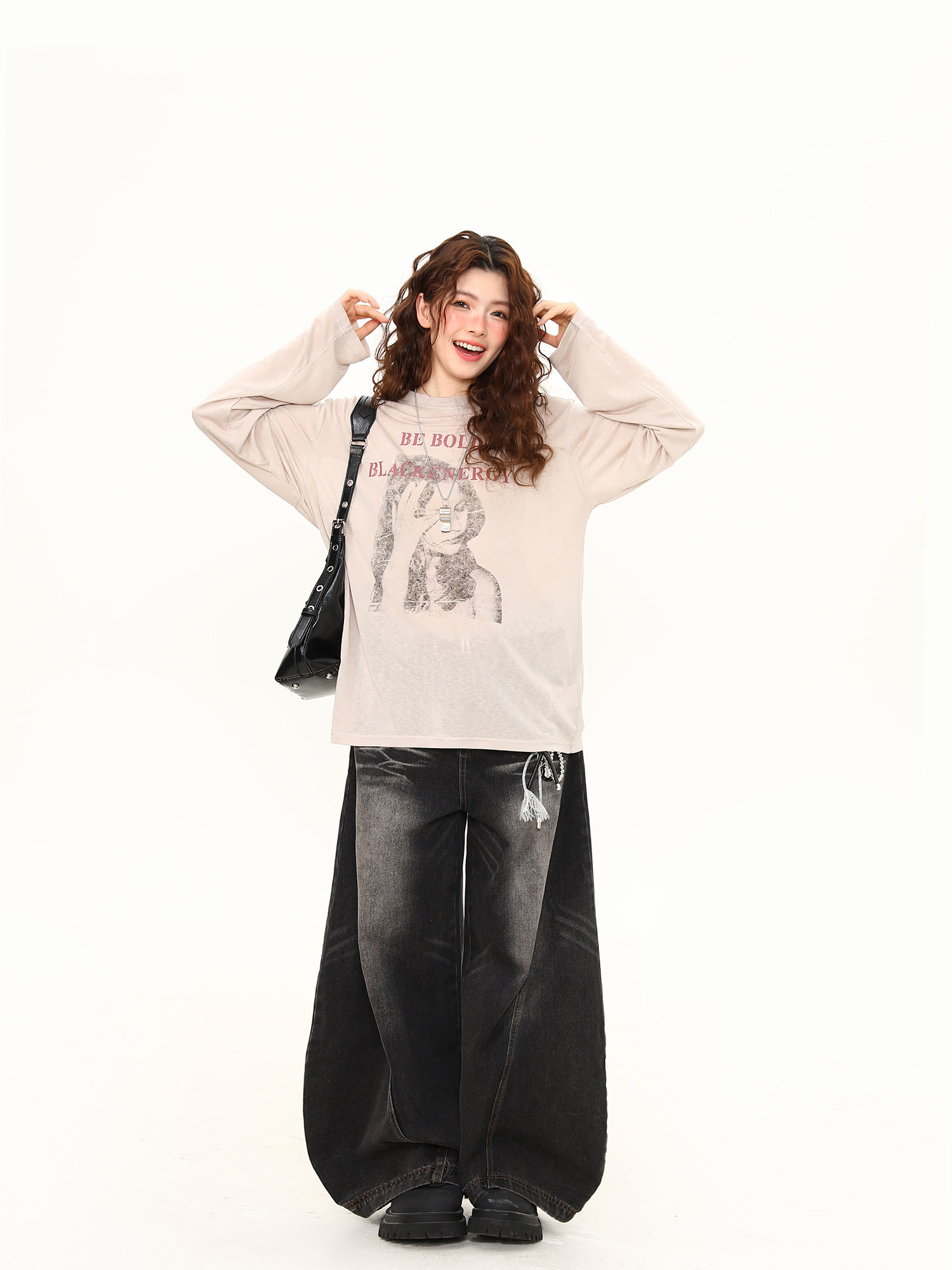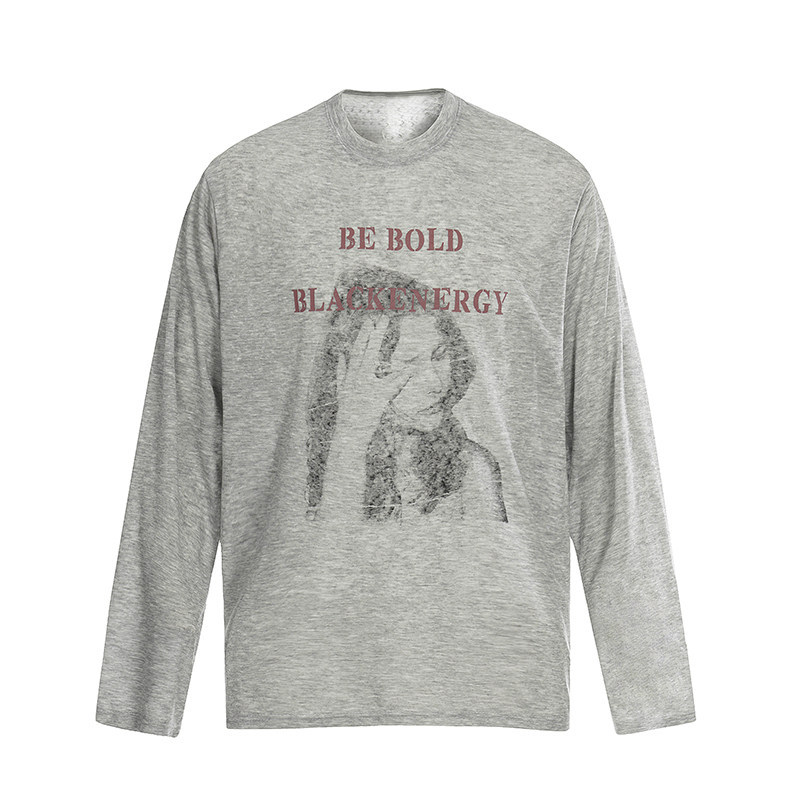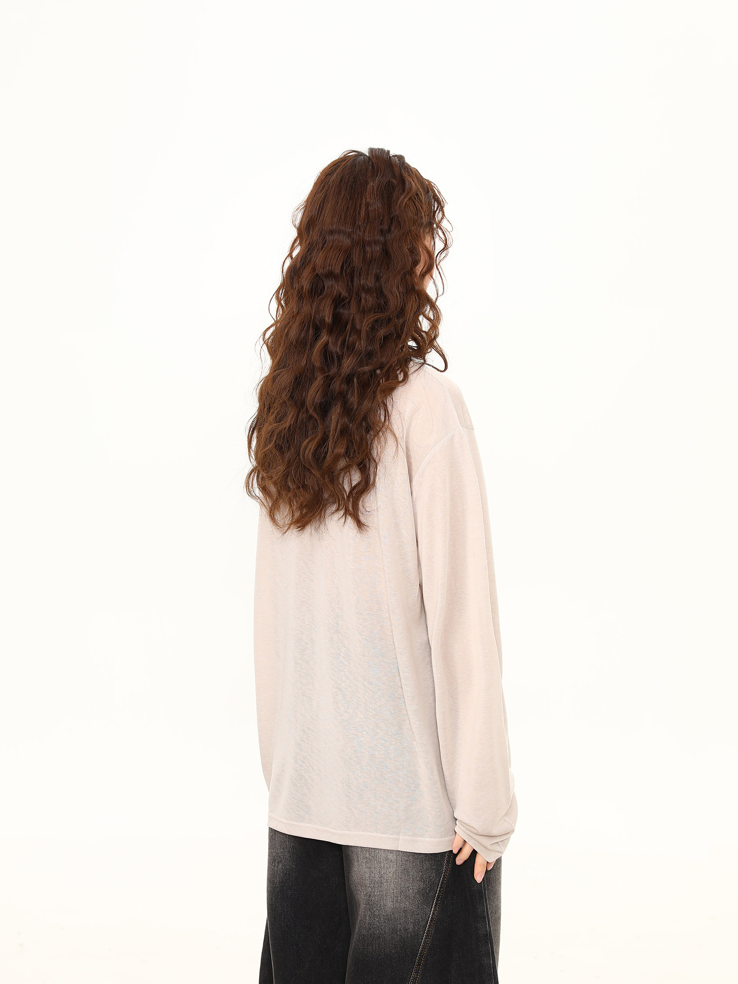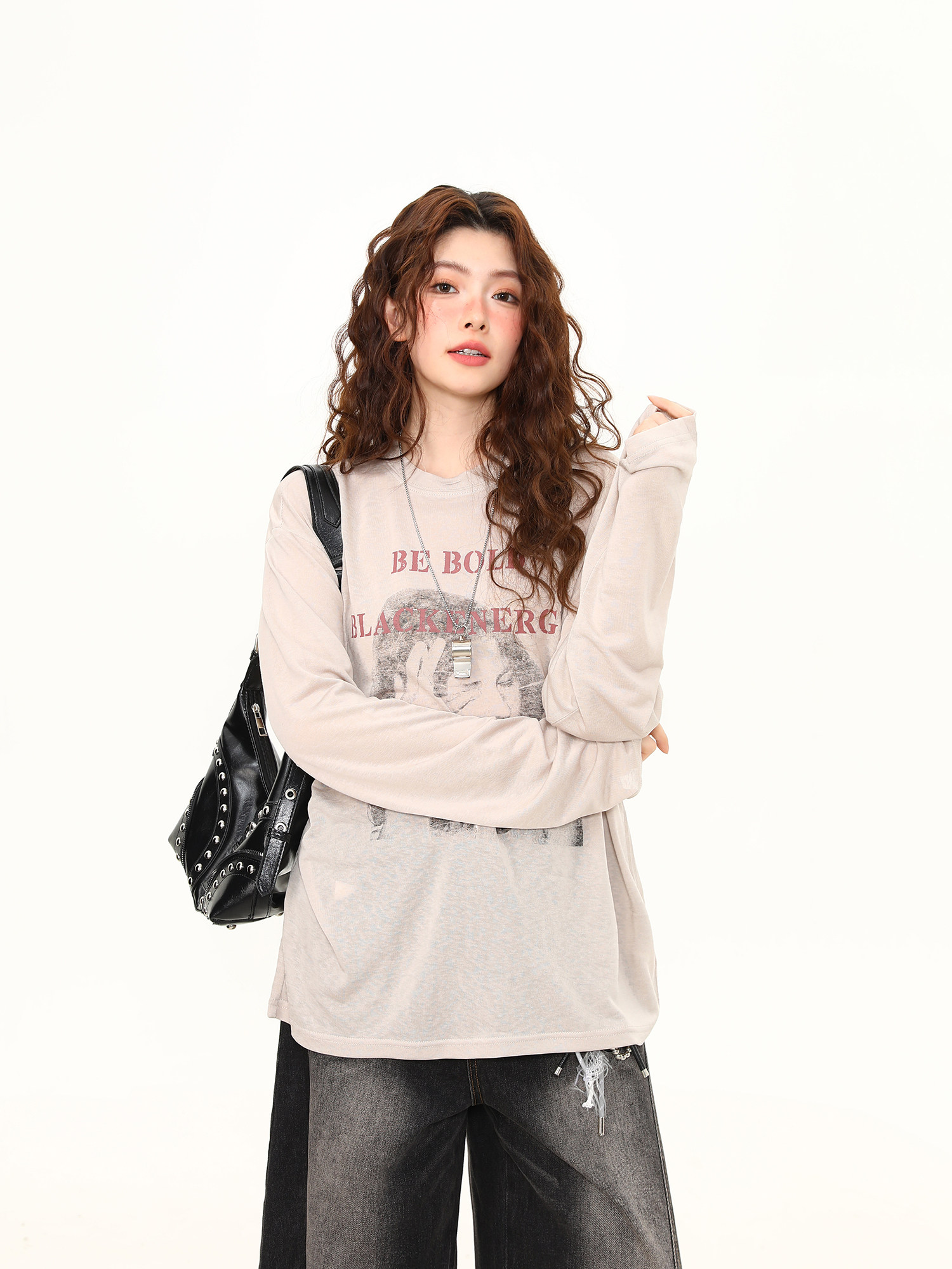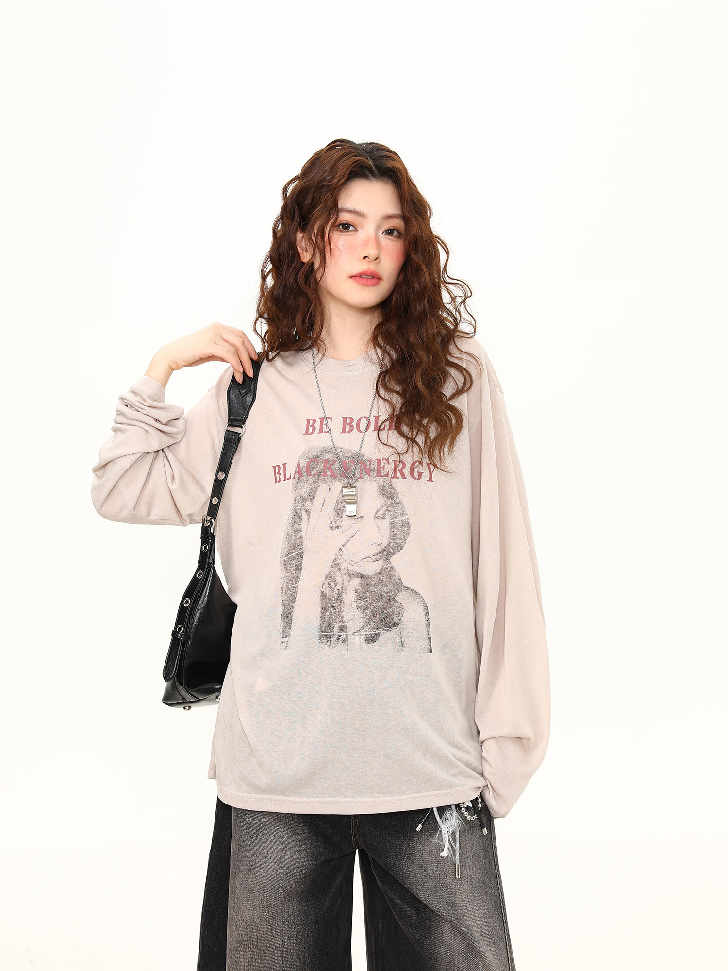 春夏新款模糊人像防曬罩衫女美式復古輕薄慵懶風長袖T恤