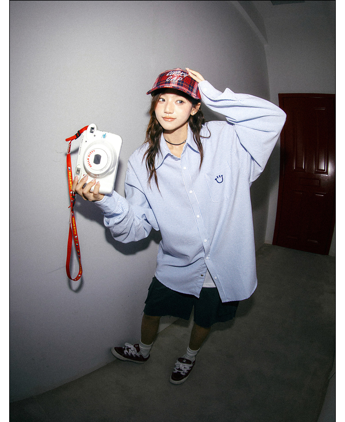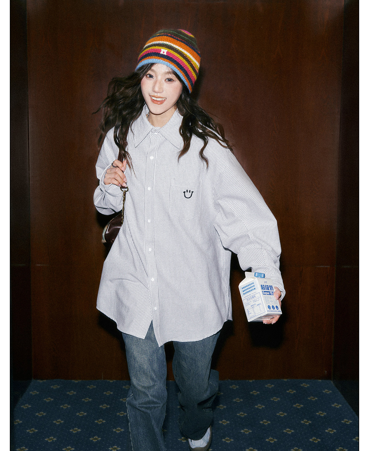 條紋襯衫女2024早秋新款上衣韓系別致小個子薄襯衣