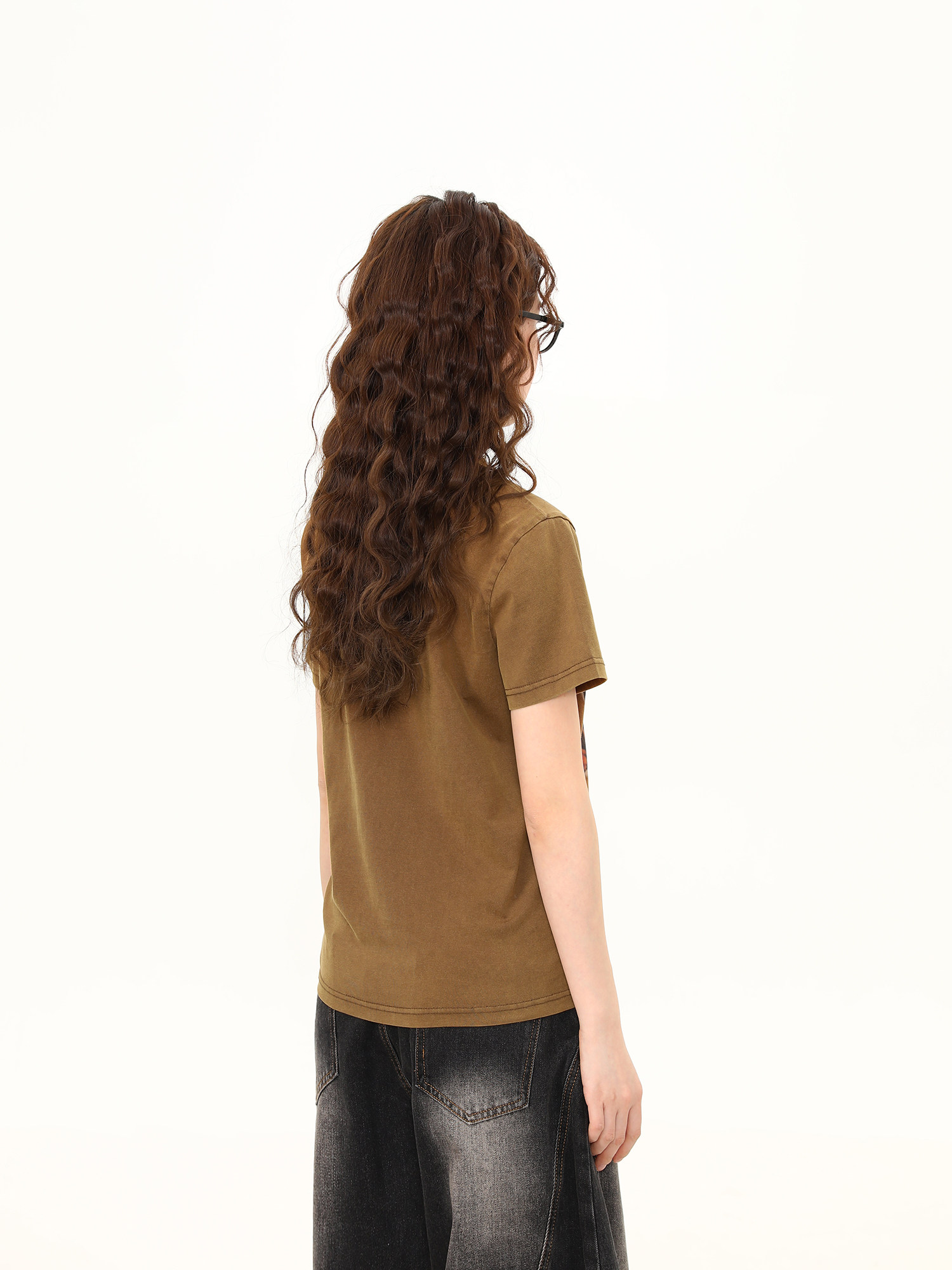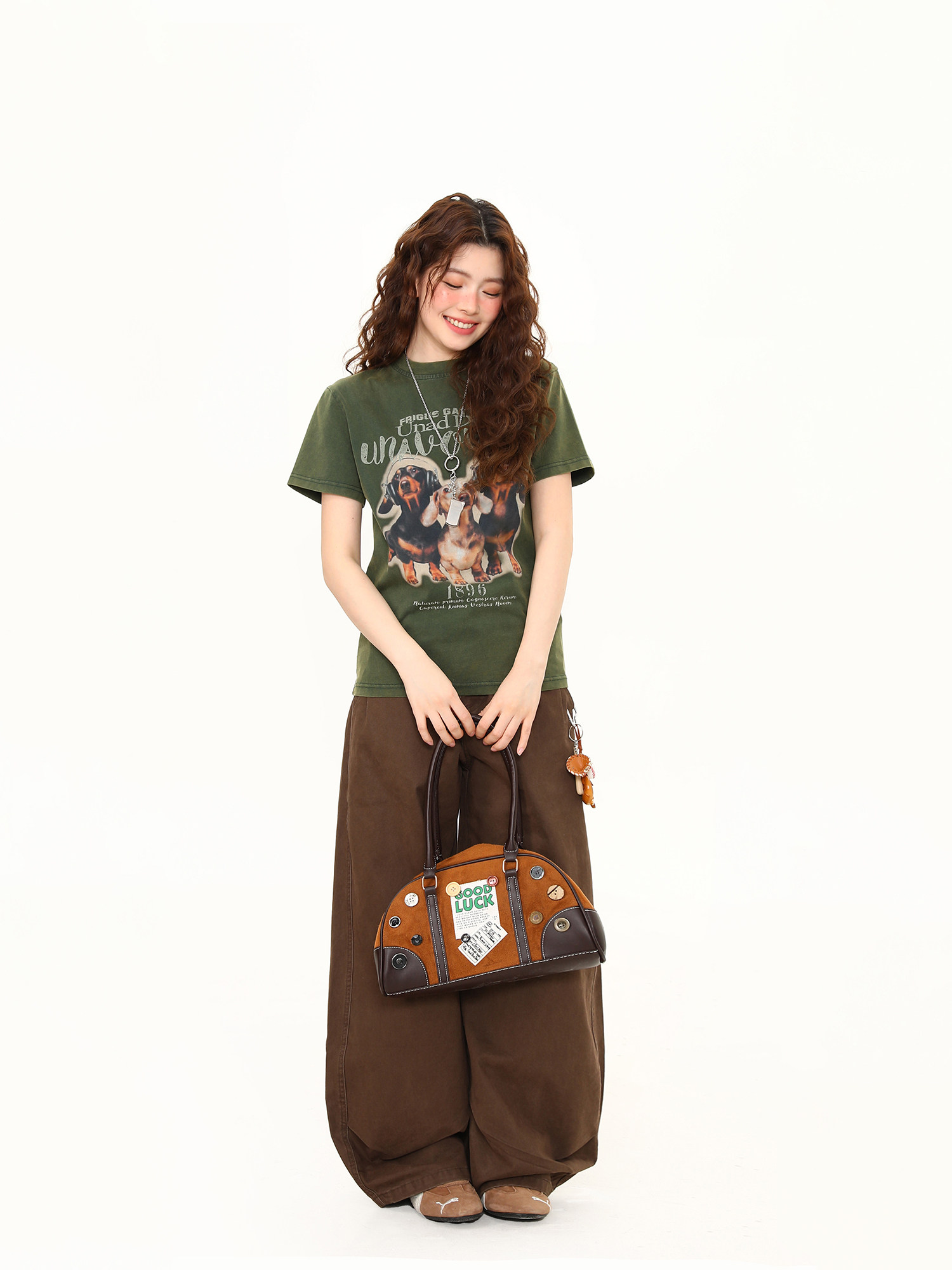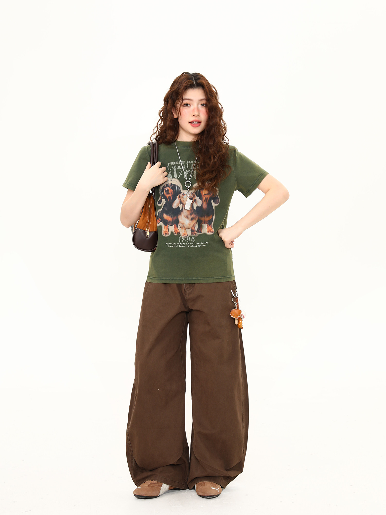 正肩T恤女美式復古水洗做舊臘腸狗印花短寬鬆百搭短袖