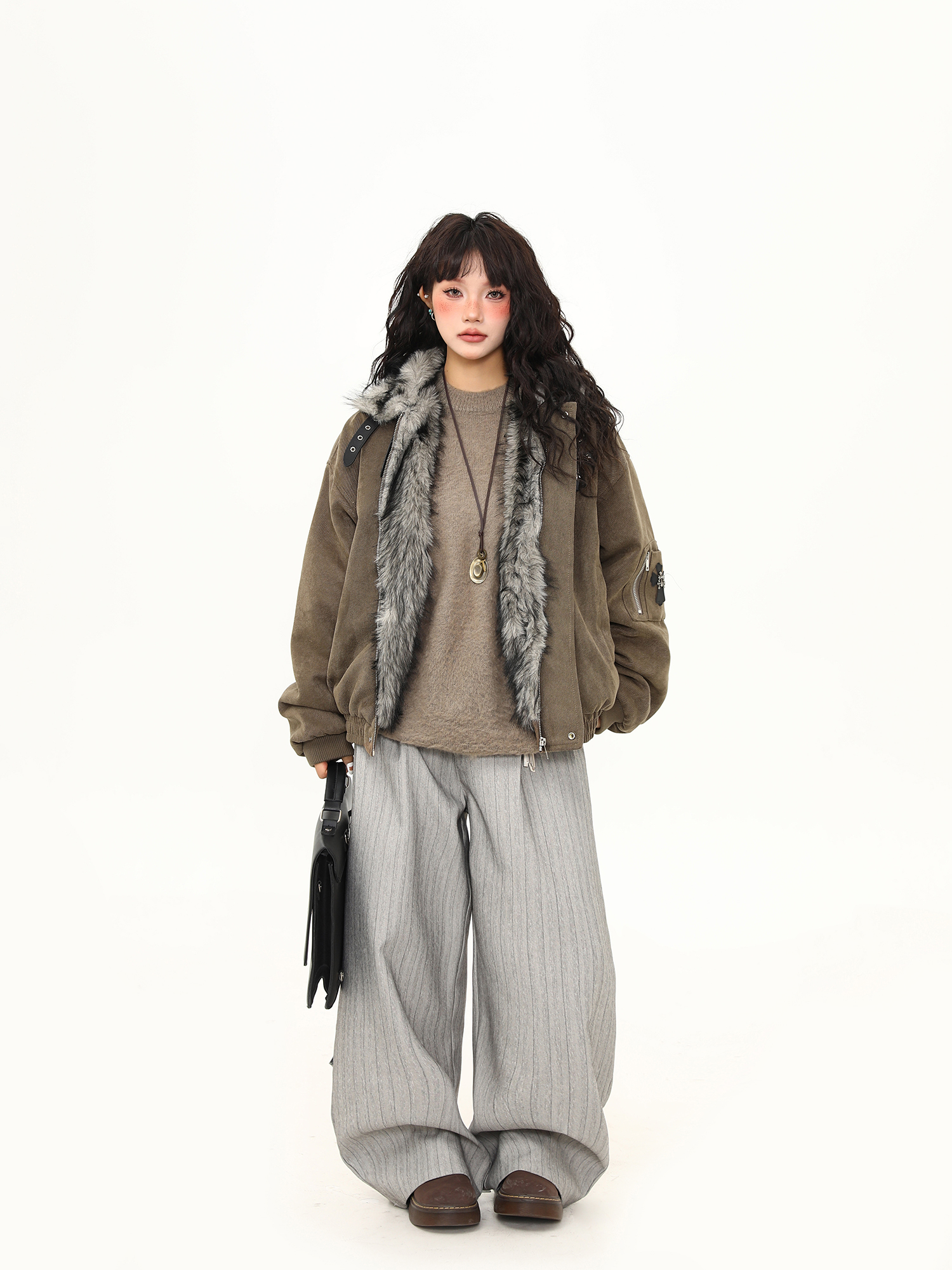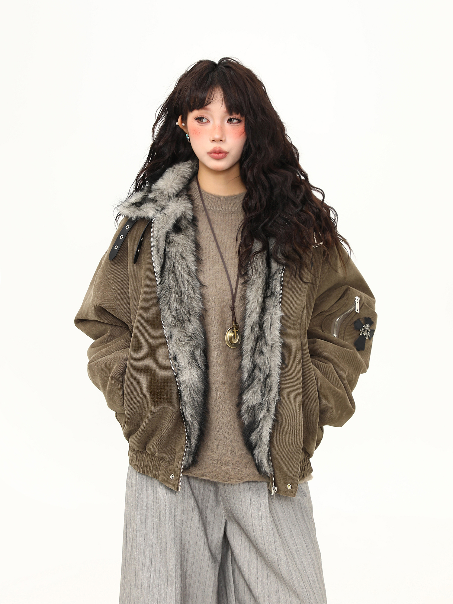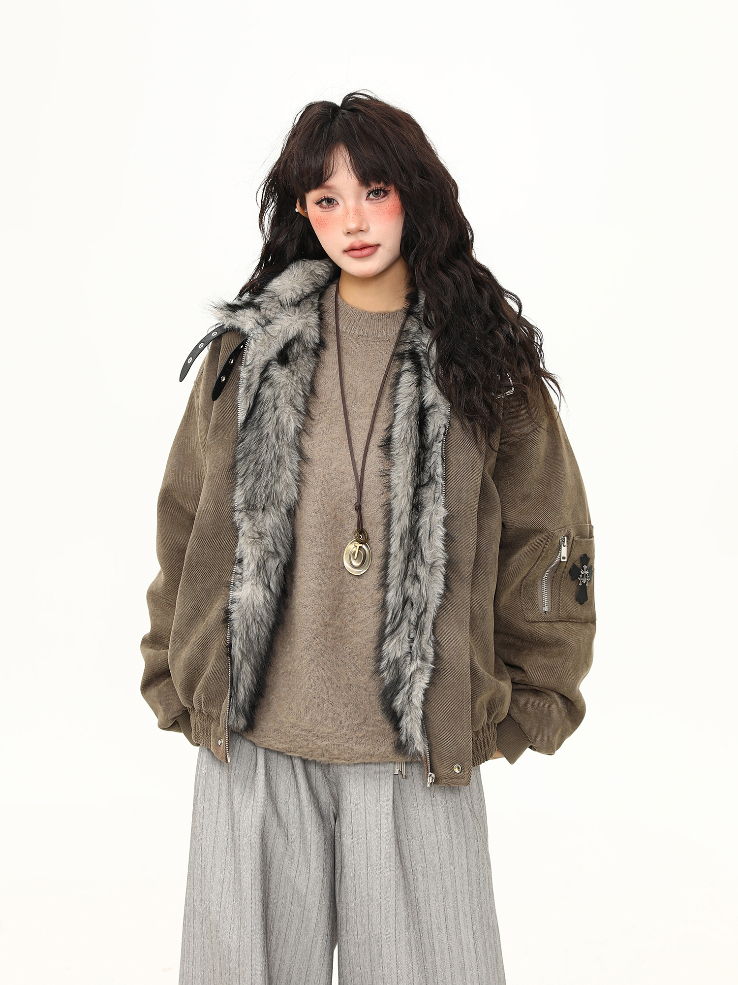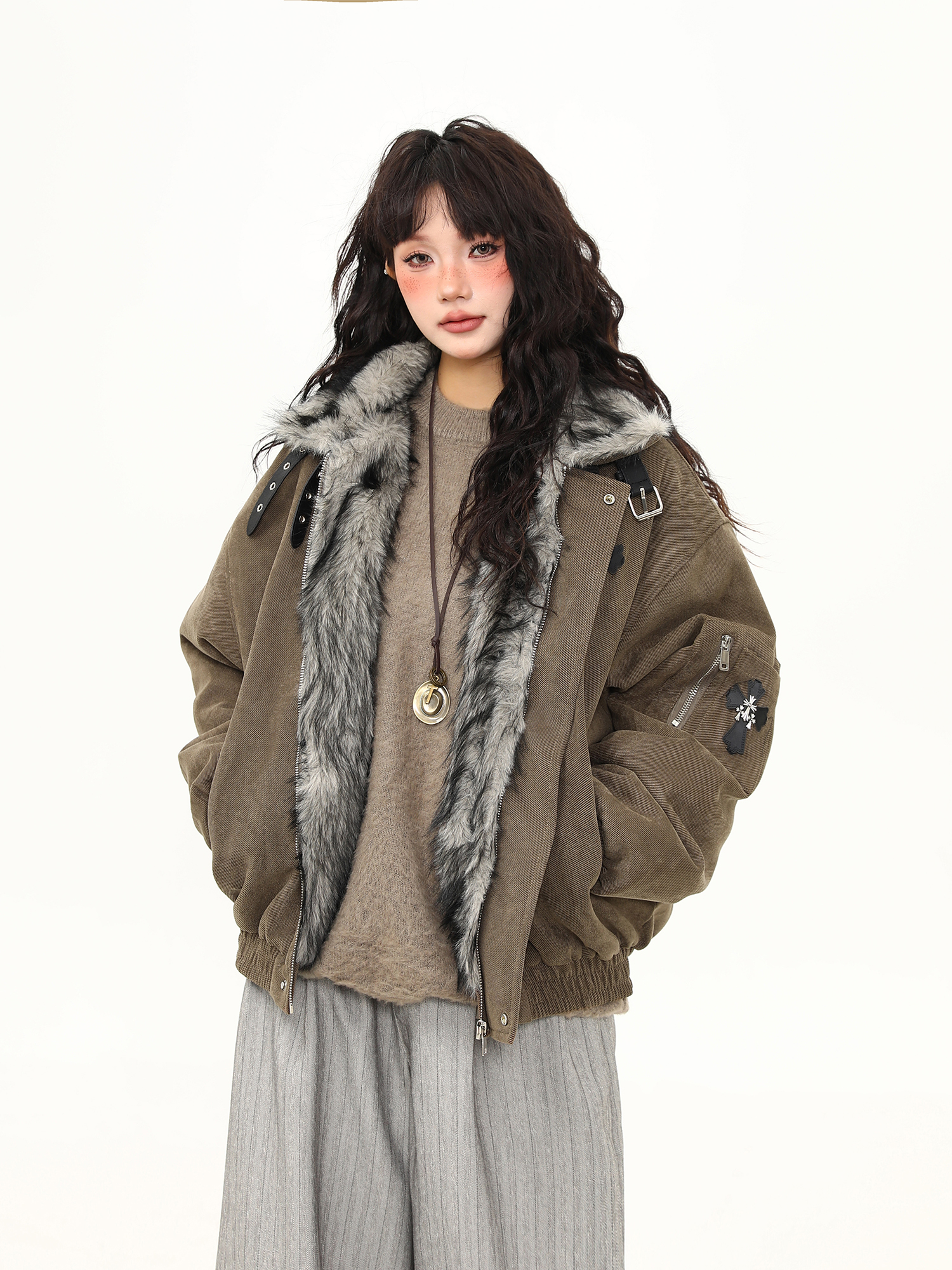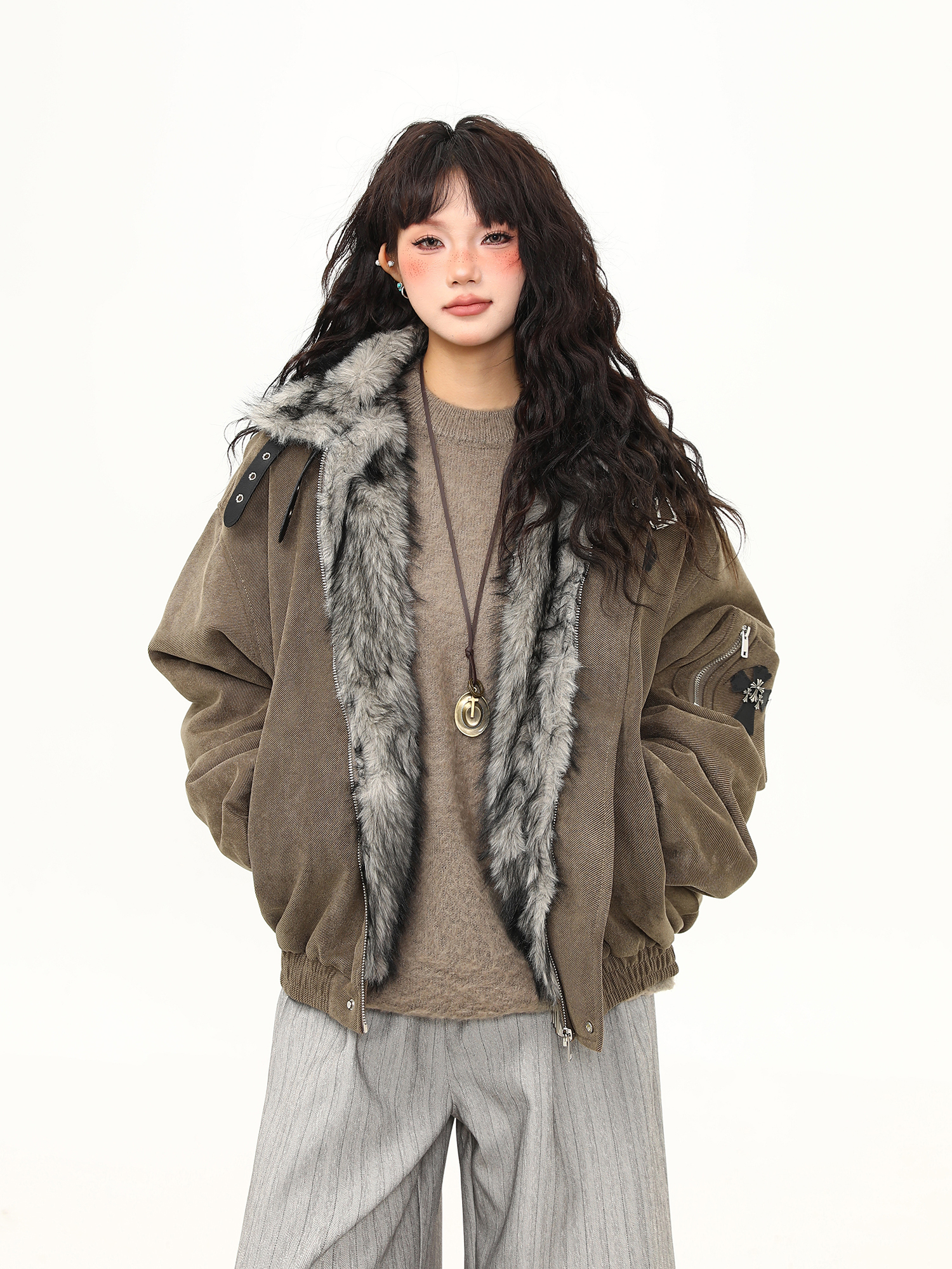 毛領座山雕棉服外套女美式潮牌高級感加厚冬季棉衣新款