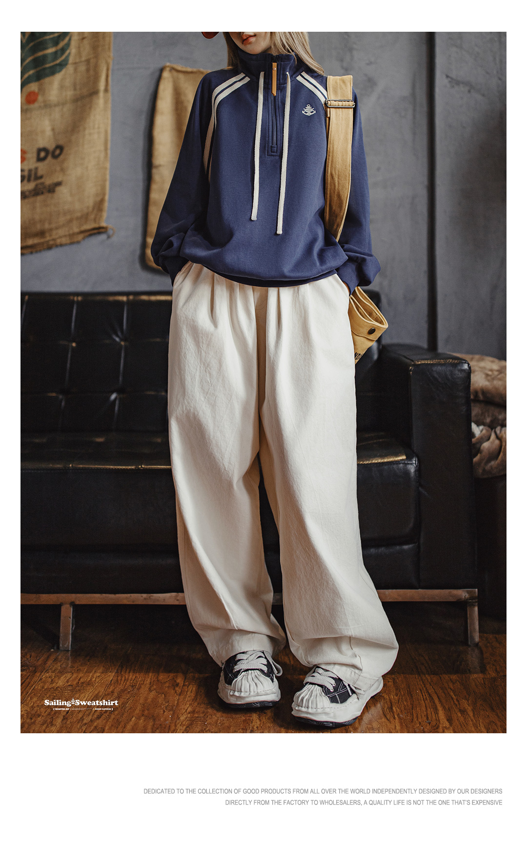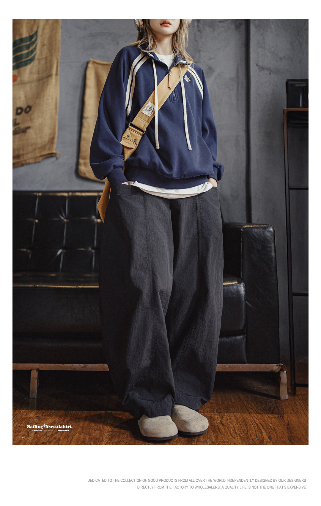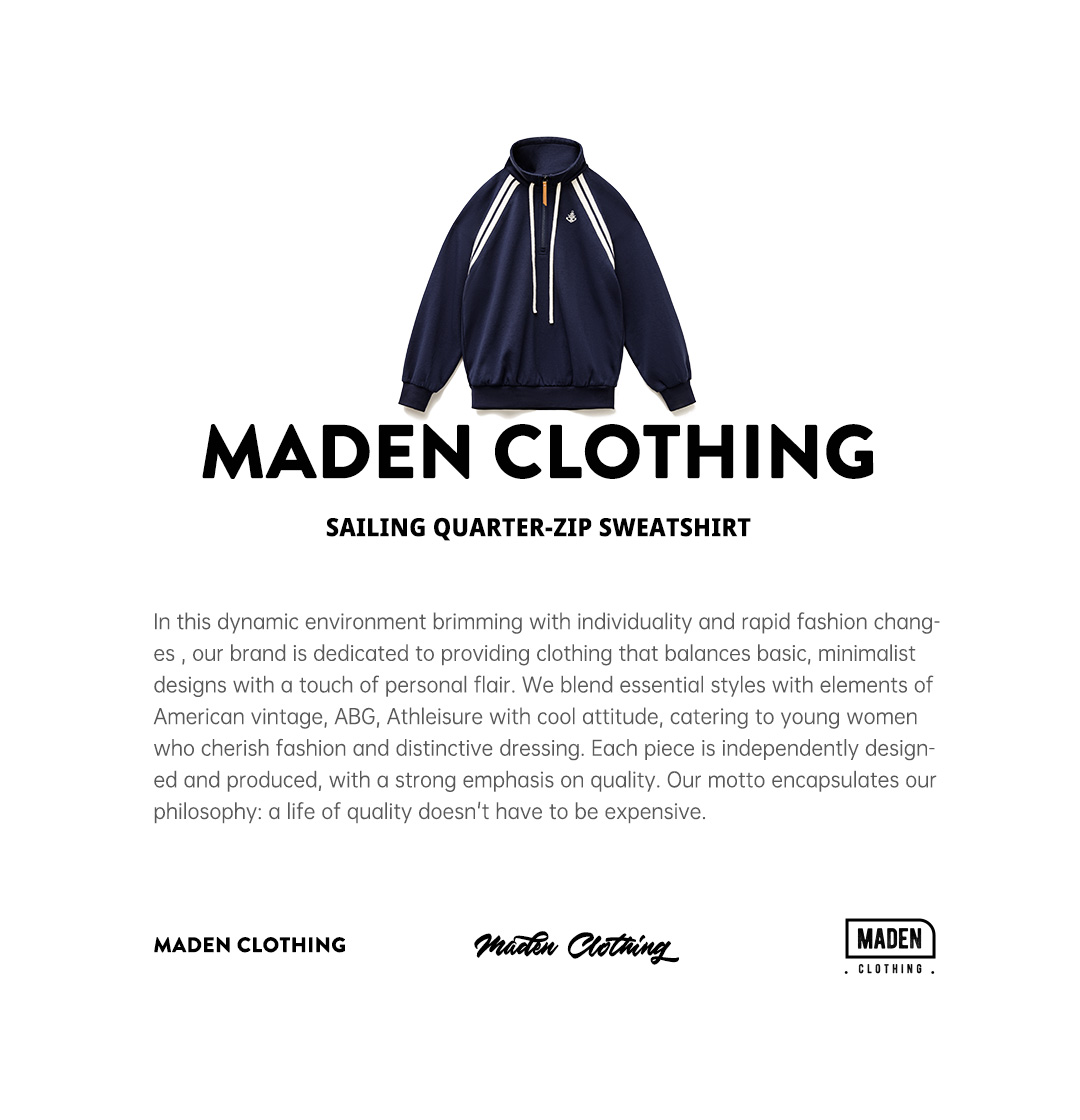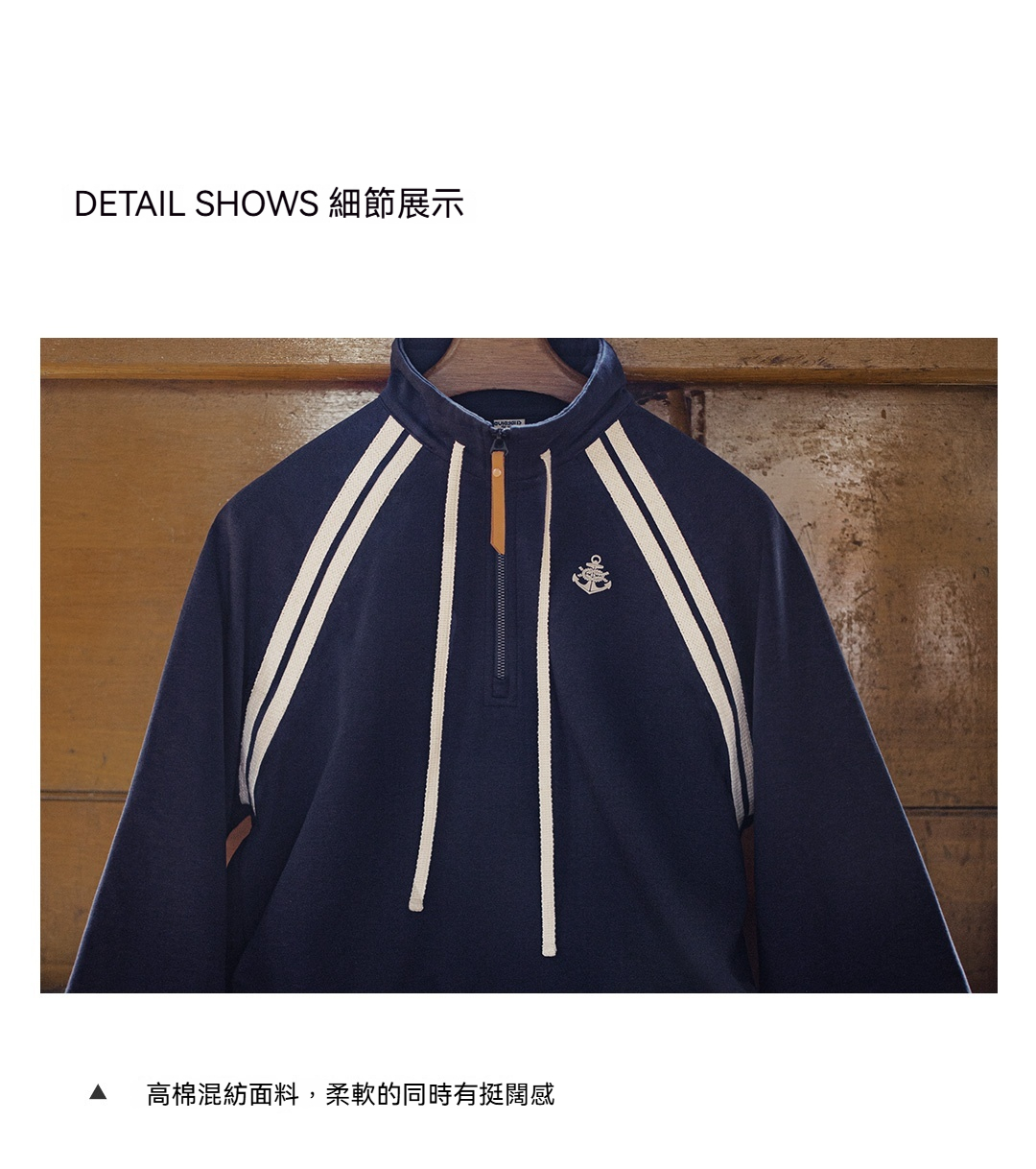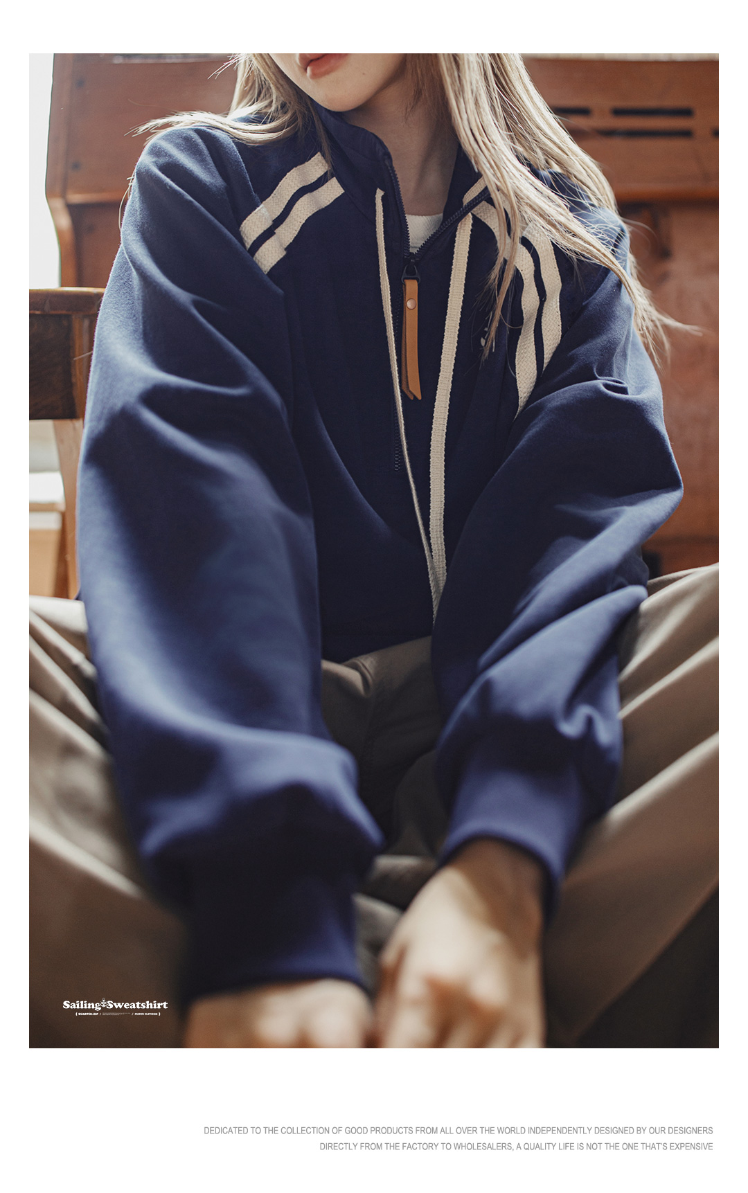 美式復古學院風藏青色半拉鍊立翻高領套頭長袖無帽衛衣女士秋