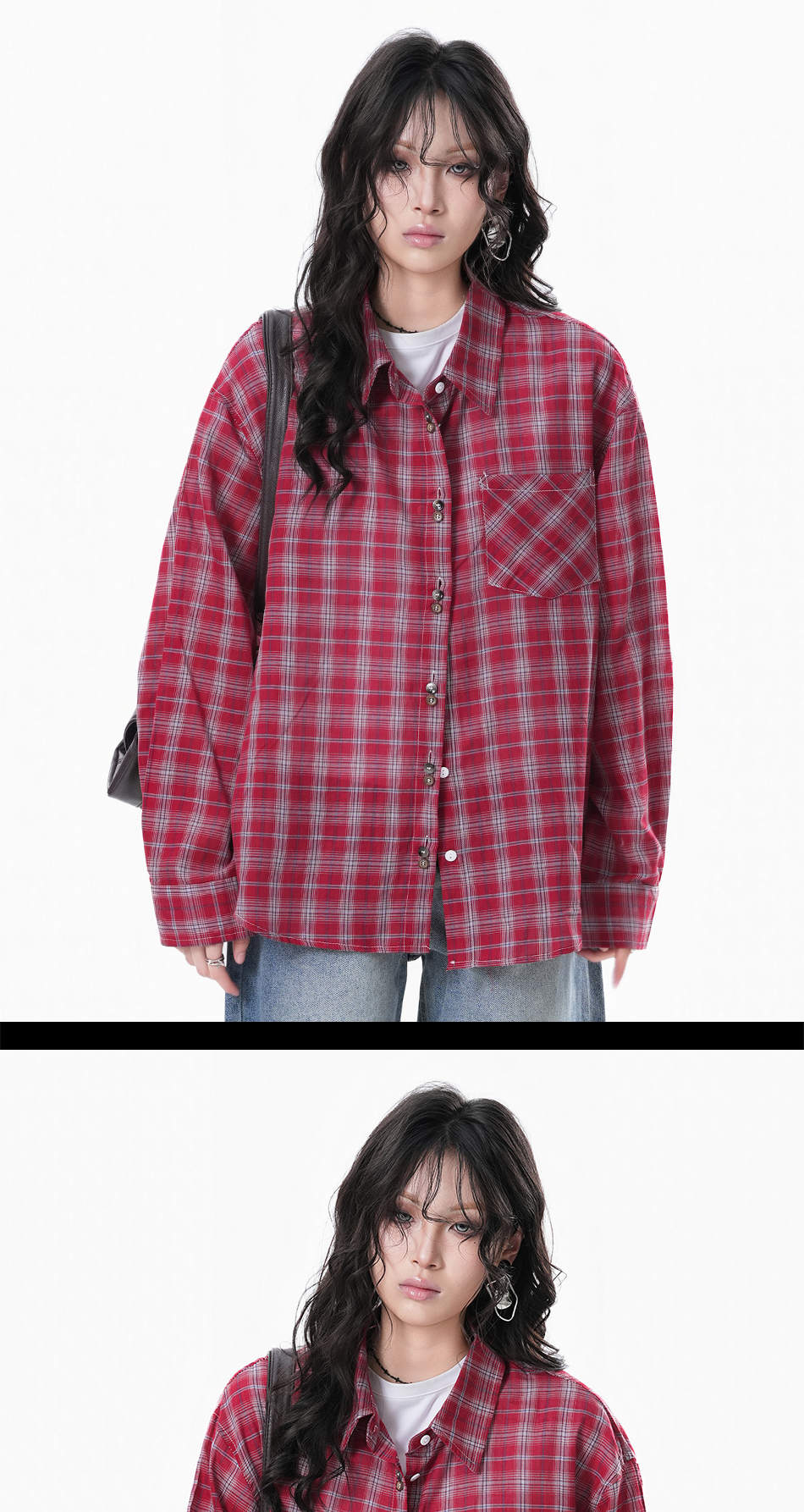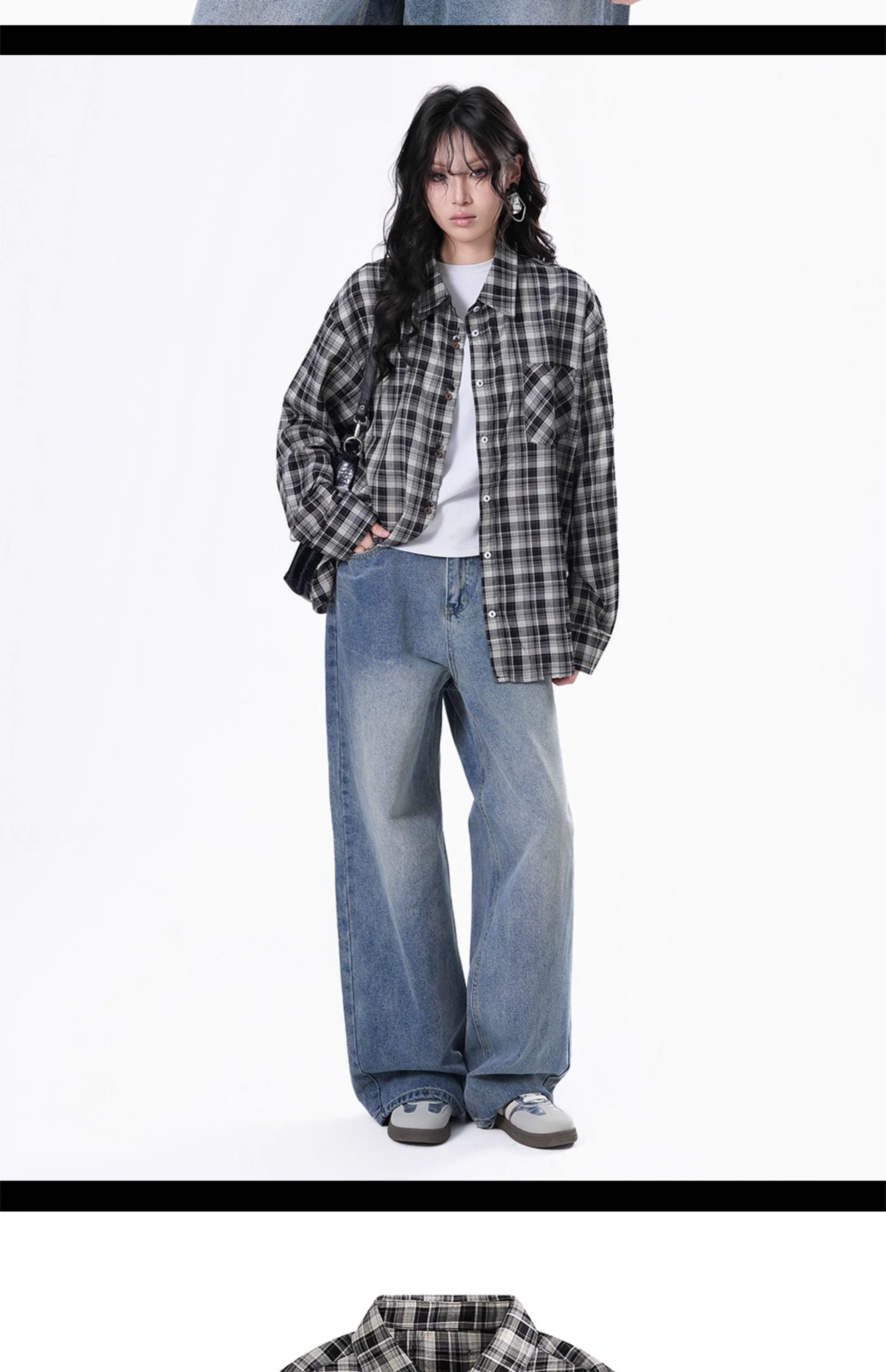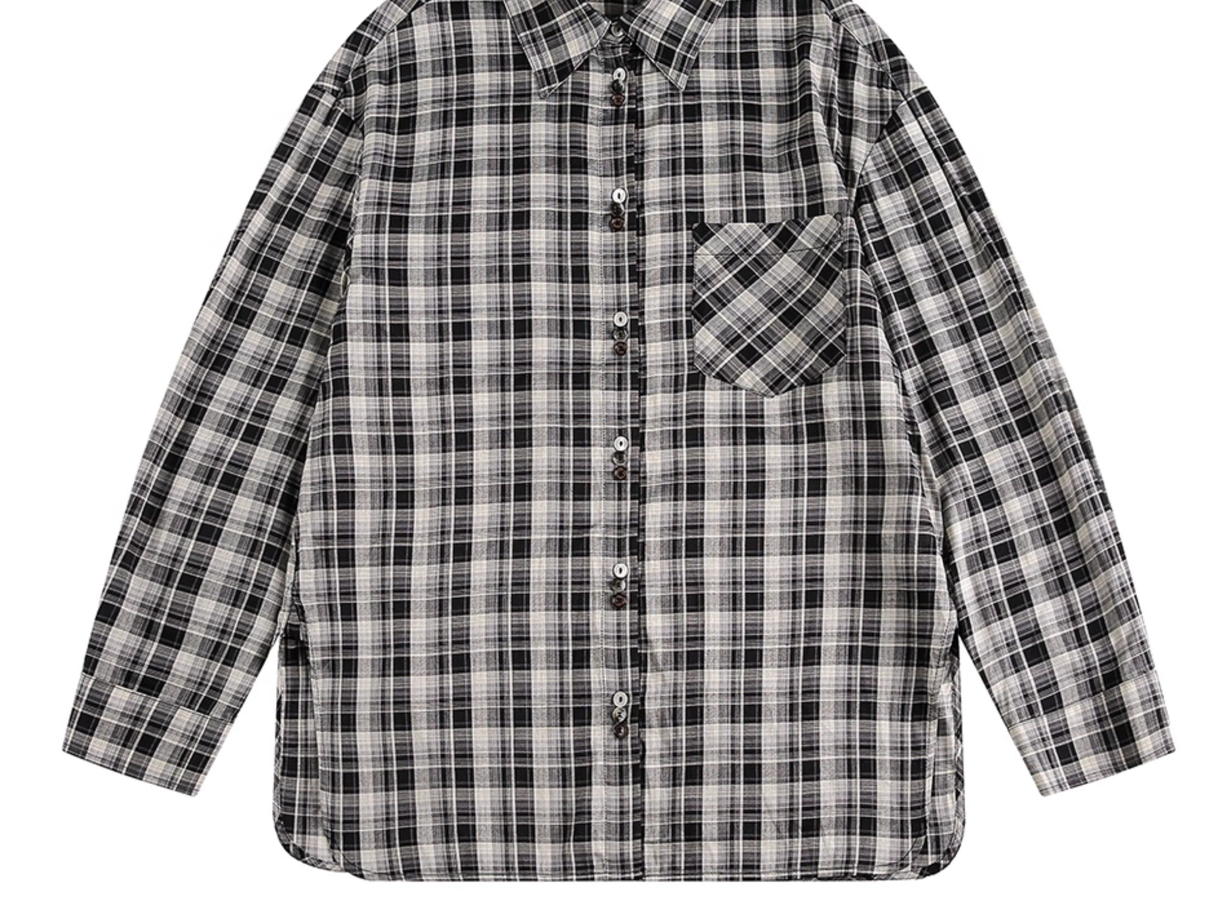 美式復古潮牌格子襯衫女小眾設計感寬鬆長袖襯衣秋季